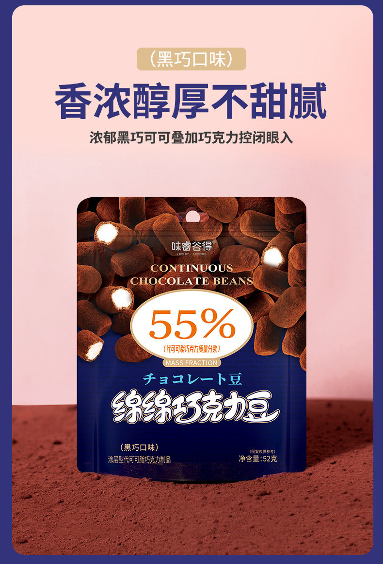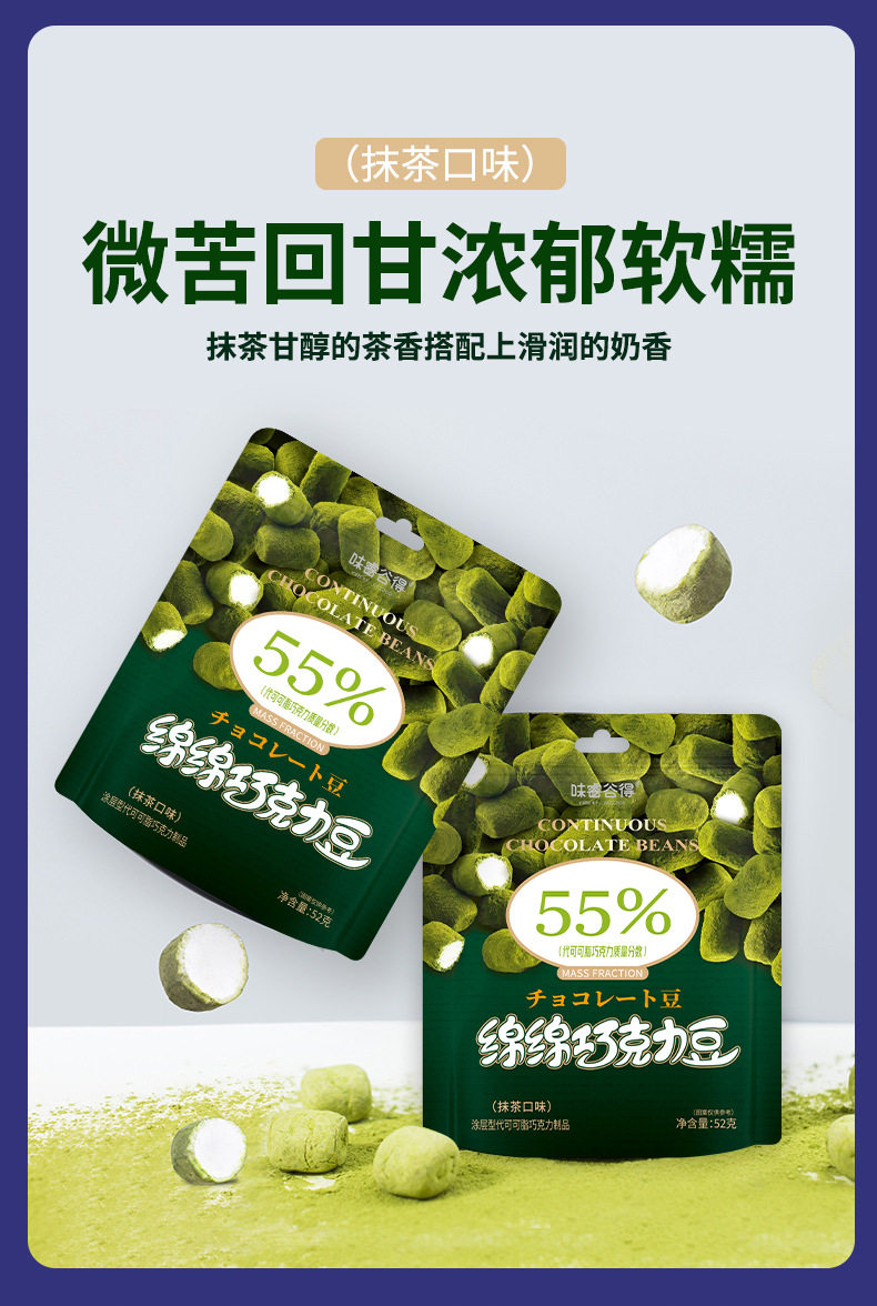 | Packaging specifications | §52g mianmian beans (black flavor) 3 packs ⚑ ⚑,§52g mianmian beans (matcha flavor) 3 packs ⚑ ⚑,§52g mianmian beans (2 packs of black chocolate + 1 pack of matcha) ⚑ ⚑,§52g mianmian beans (3 packs of black chocolate + 3 packs of matcha) ⚑ ⚑,§52g mianmian beans (black flavor) 6 packs ⚑ ⚑,§52g mianmian beans (matcha flavor) 6 packs ⚑ ⚑,§52g mianmian beans (5 packs of black chocolate + 5 packs of matcha) ⚑ ⚑,§52g mianmian beans (black flavor) 10 packs ⚑ ⚑,§52g mianmian beans (matcha flavor) 10 packs ⚑ ⚑,§52g mianmian beans (black flavor) 1 pack ⚑ ⚑,§52g mianmian beans (matcha flavor) 1 pack ⚑ ⚑,§52g mianmian beans (2 packs of heiqiao + 1 box of naifu) ⚑ ⚑ |
