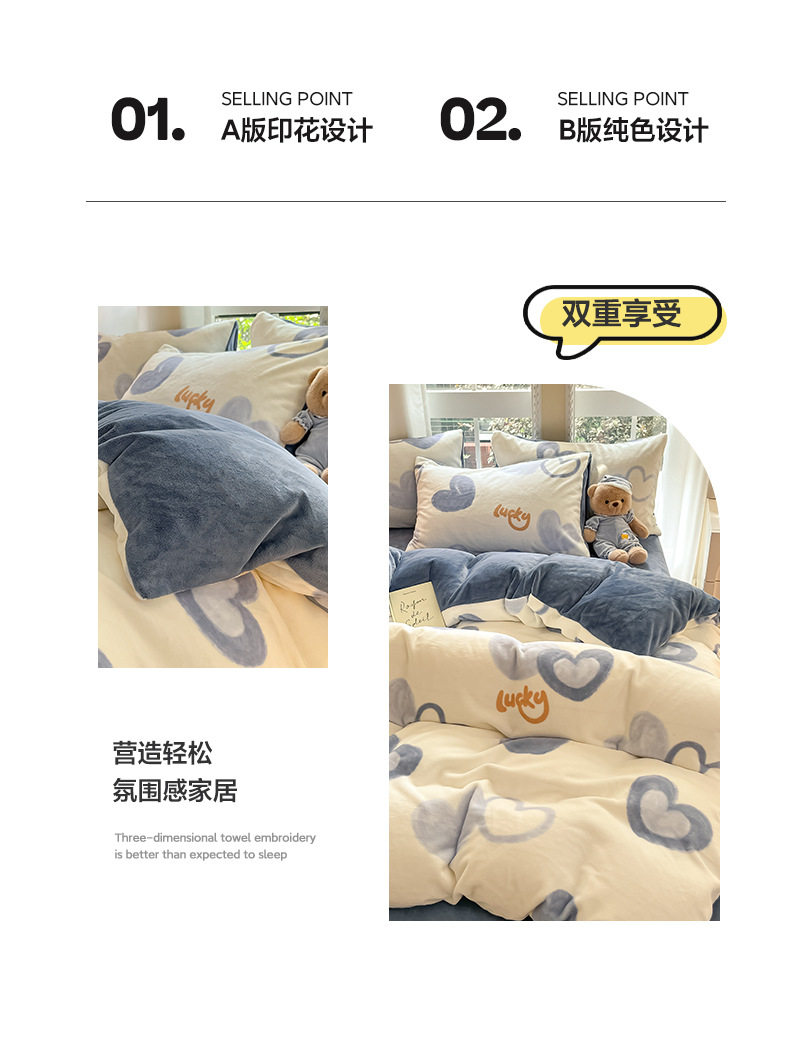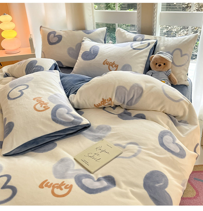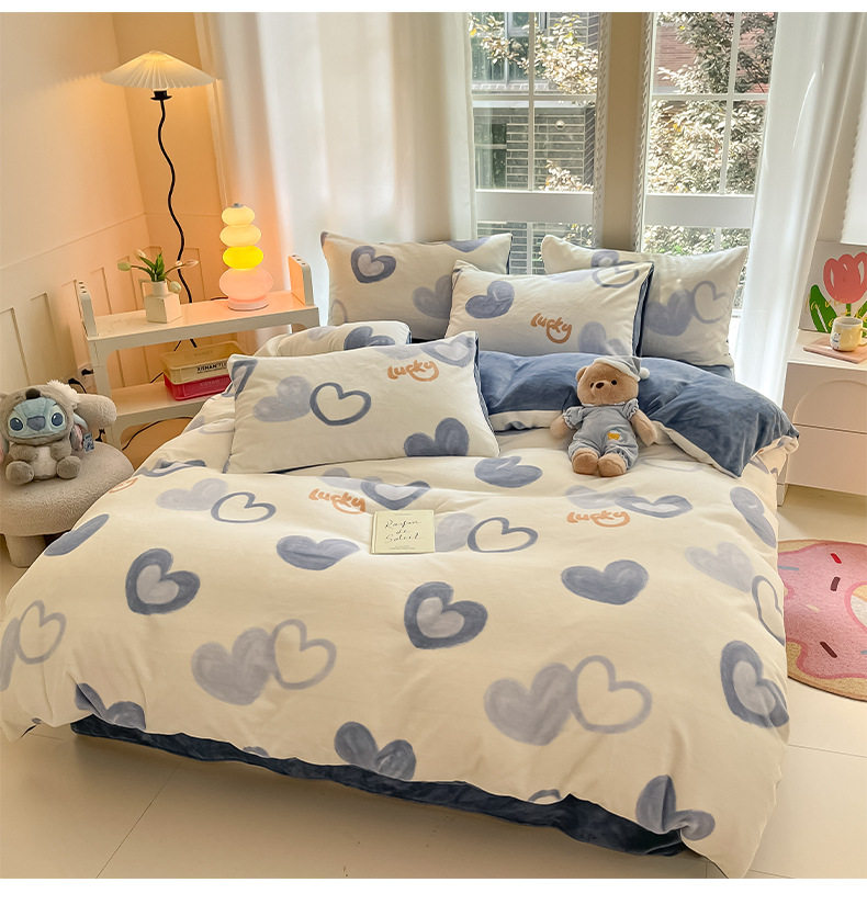 Winter Thickeneded Milk Velvet Bed Four-Piece Set 2025 New Flannel Coral Velvet Bed Bed Sheets Fleece-Lined Quilt Cover Three-Piece Set
