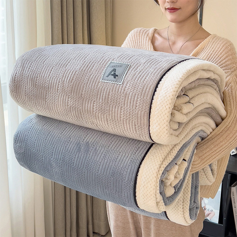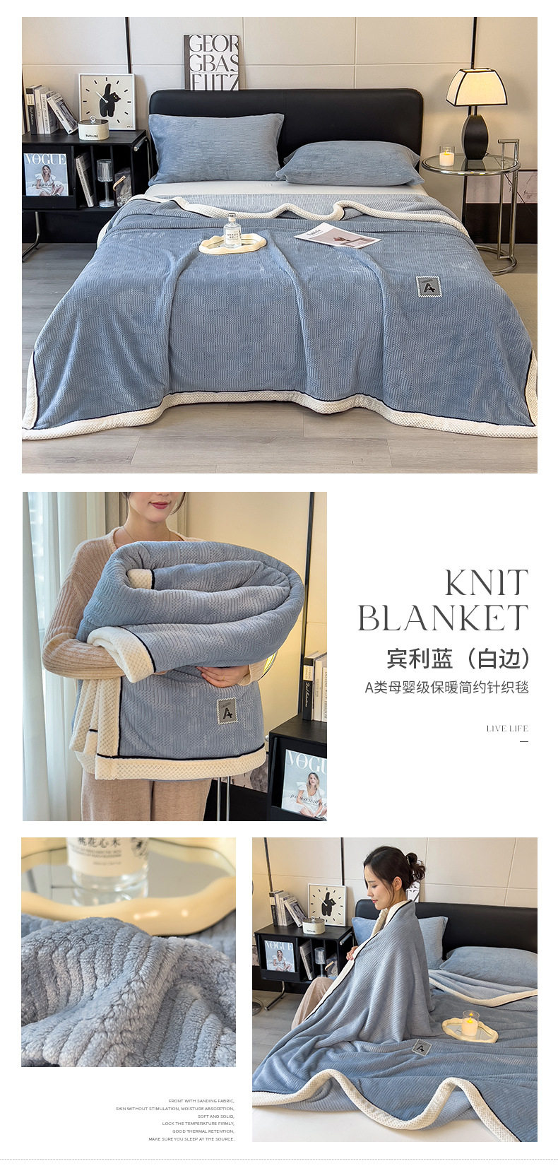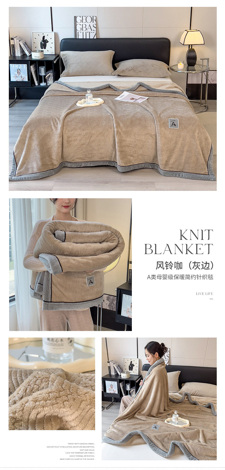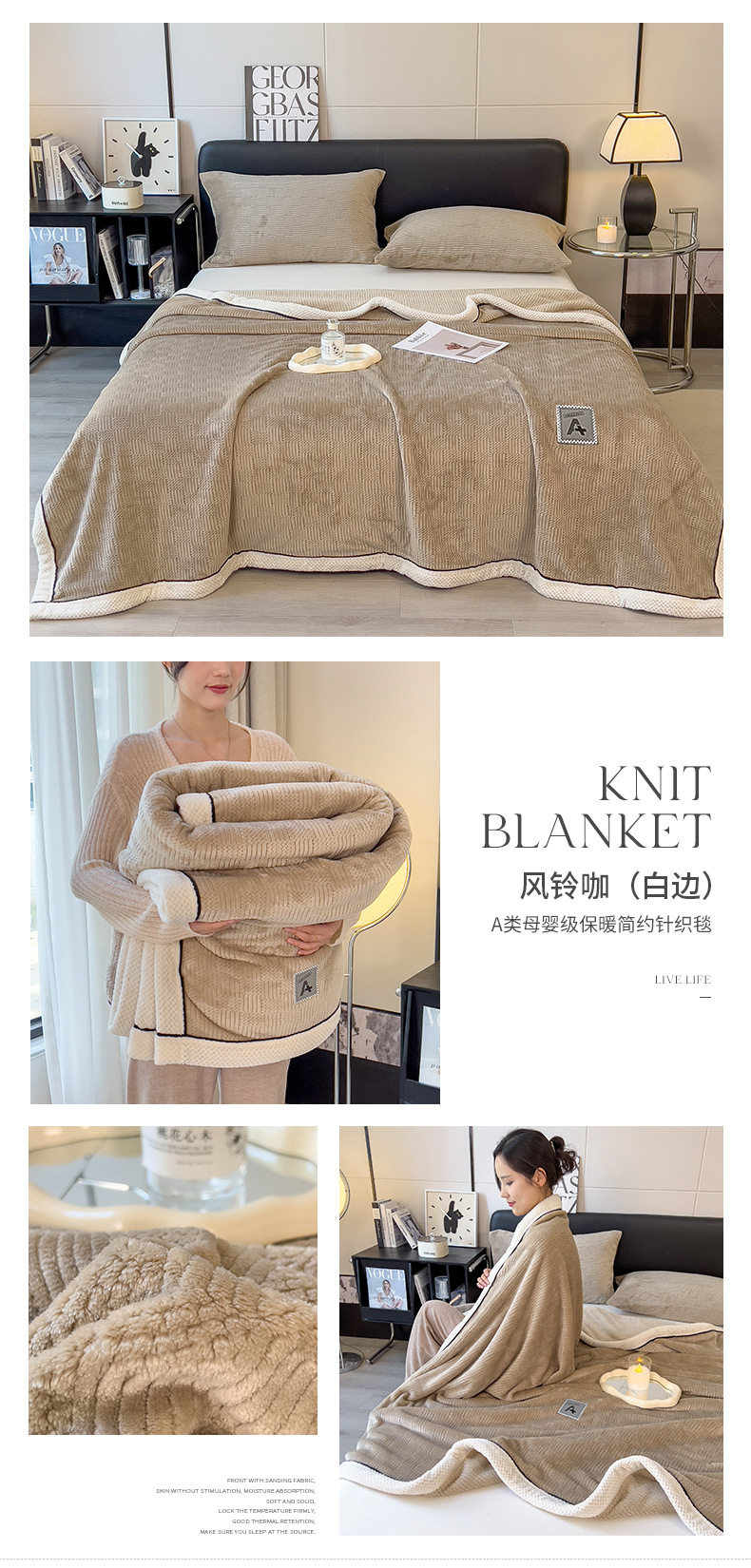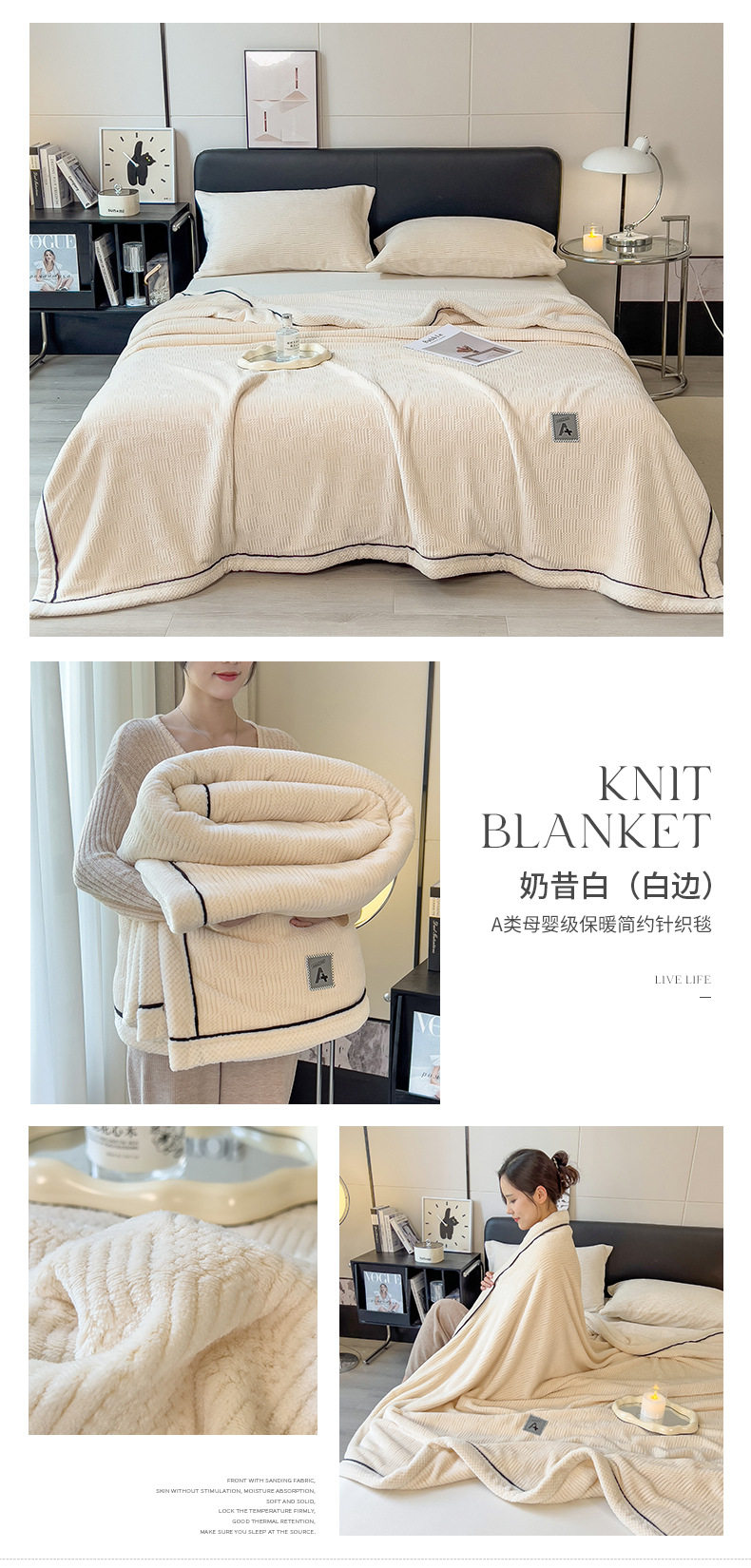 Popular Nordic Style A-Class Milk Velvet Knitted Blanket for Autumn and Winter, Thickened Velvet Bed Sheet, Flannel Sofa Cover Blanket