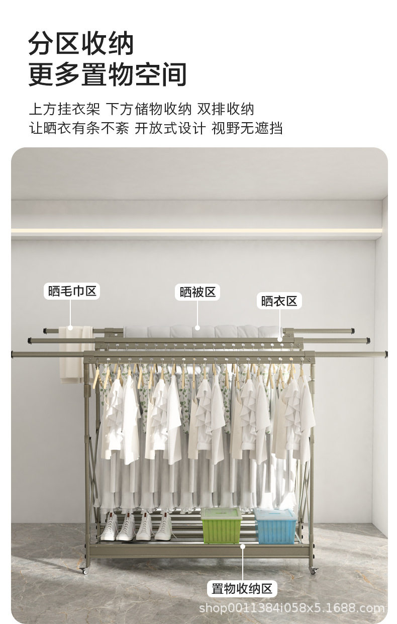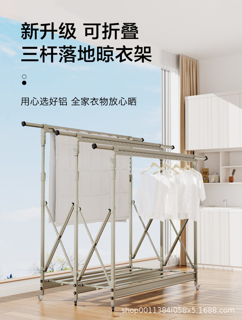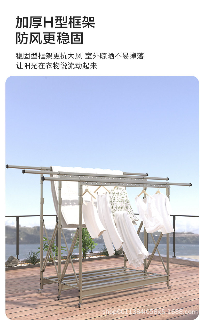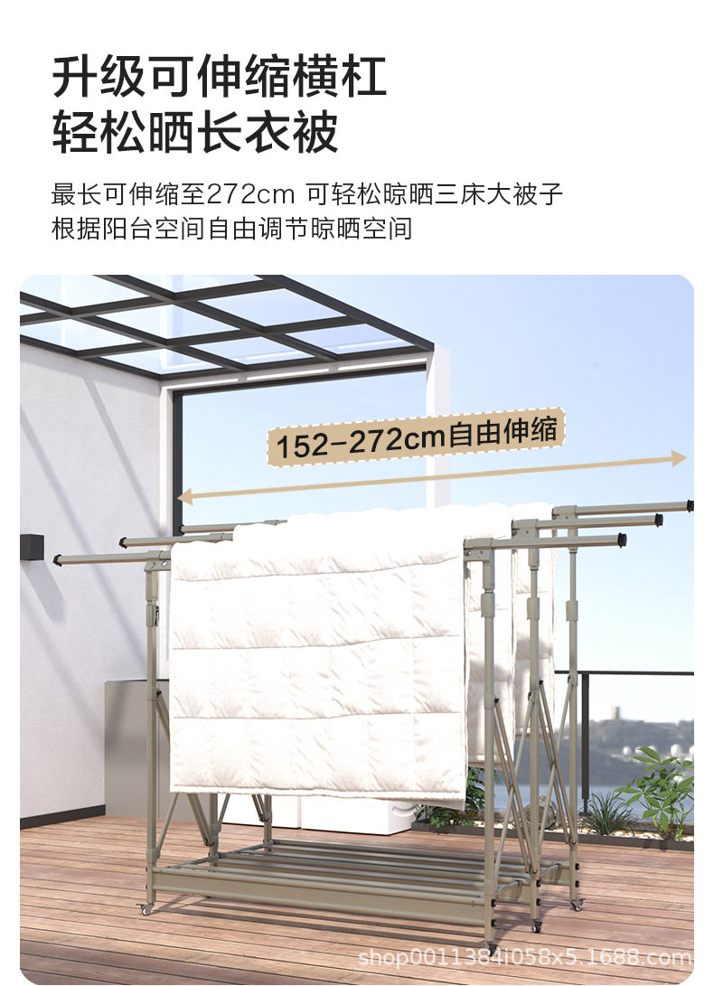 Floor-Standing Clothes Drying Rack, Foldable for Home Use, Balcony Indoor Retractable Clothes Rod, Outdoor Quilt Drying Magic Tool, Adjustable Clothes Drying Rack