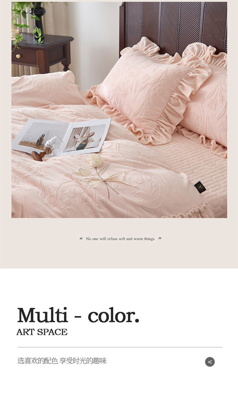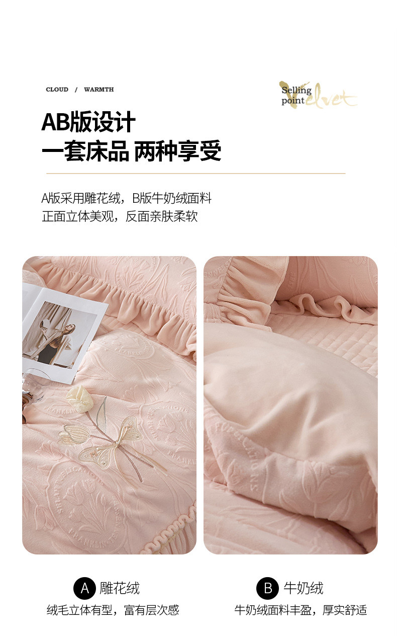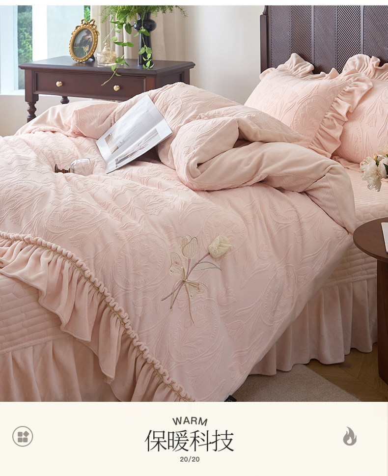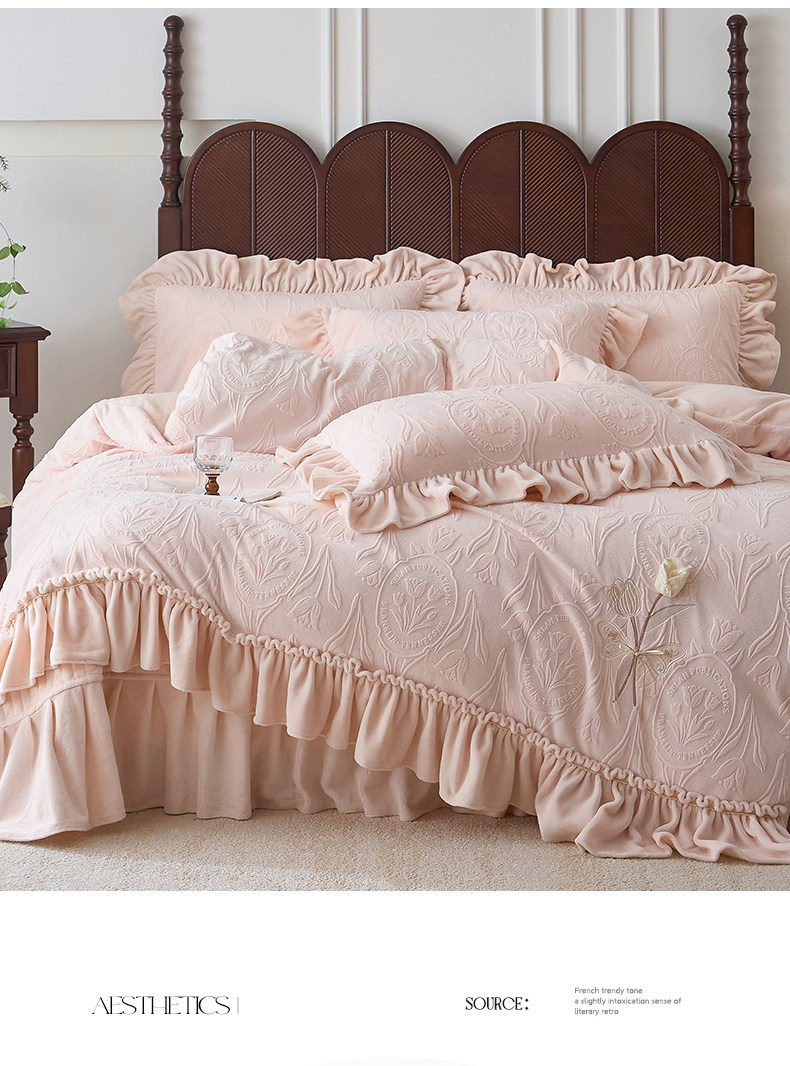 French Princess Style Carved Milk Velvet Four-Piece Bed Cover Winter Thickeneded Baby Velvet Coral Velvet Quilt Cover Bed Skirt a