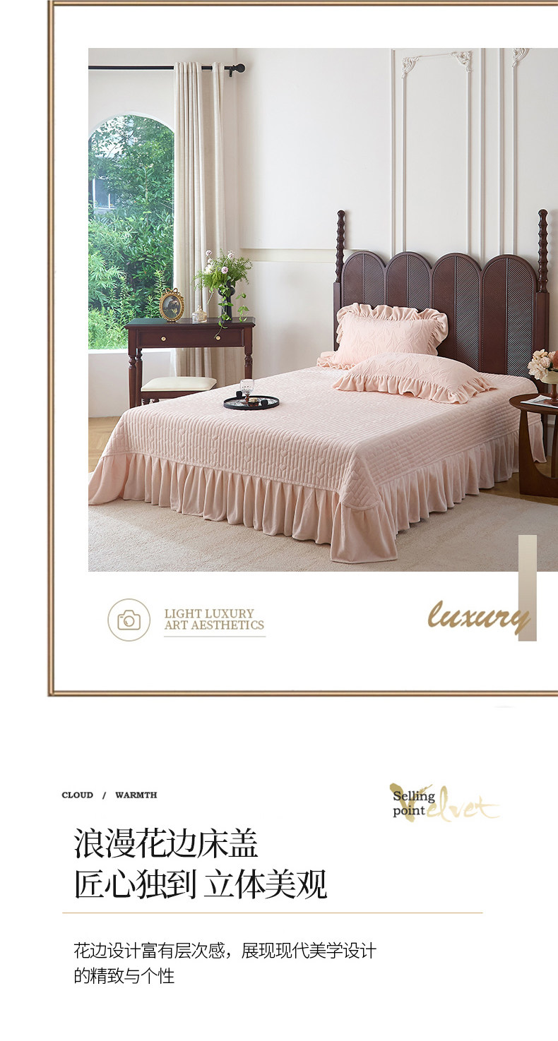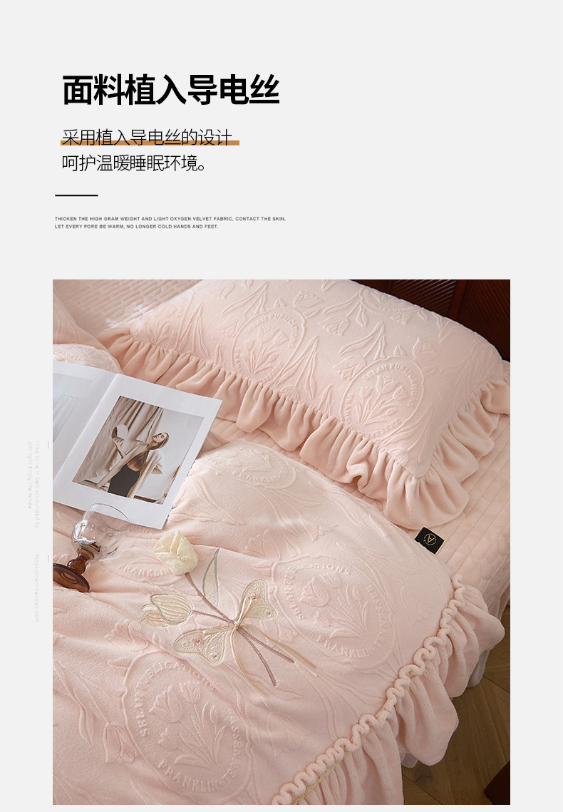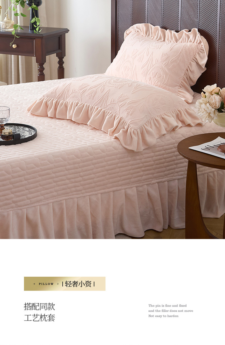 French Princess Style Carved Milk Velvet Four-Piece Bed Cover Winter Thickeneded Baby Velvet Coral Velvet Quilt Cover Bed Skirt a