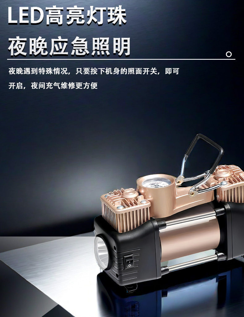Car Air Pump Portable Lighting Air Pump Car Electric Tire Pressure Gauge High-Power Luxury Gold Double-Cylinder Air Pump