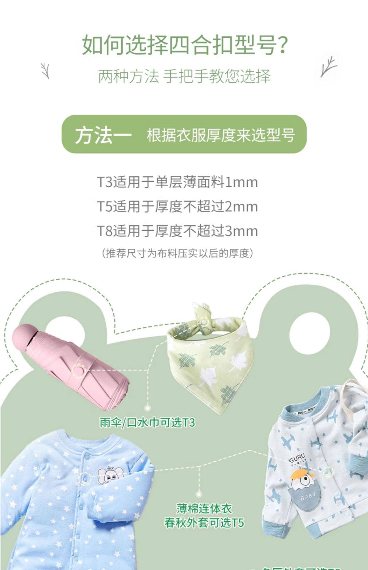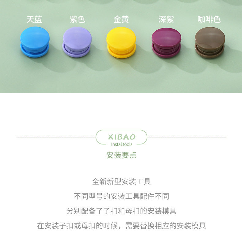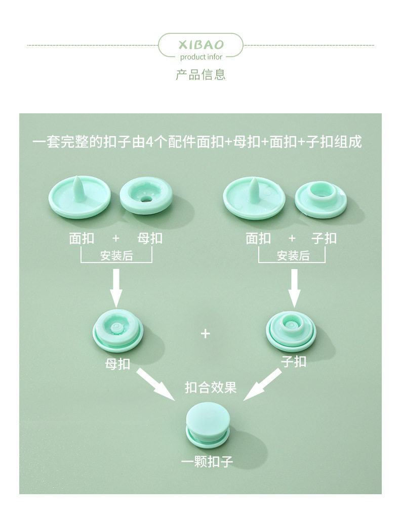 | Scope of application | Underwear,Hoodie,Backpack,Down jacket,Packaging bag,Jacket,Doll clothes,Children's clothing,Baby clothes,Button installation tool |