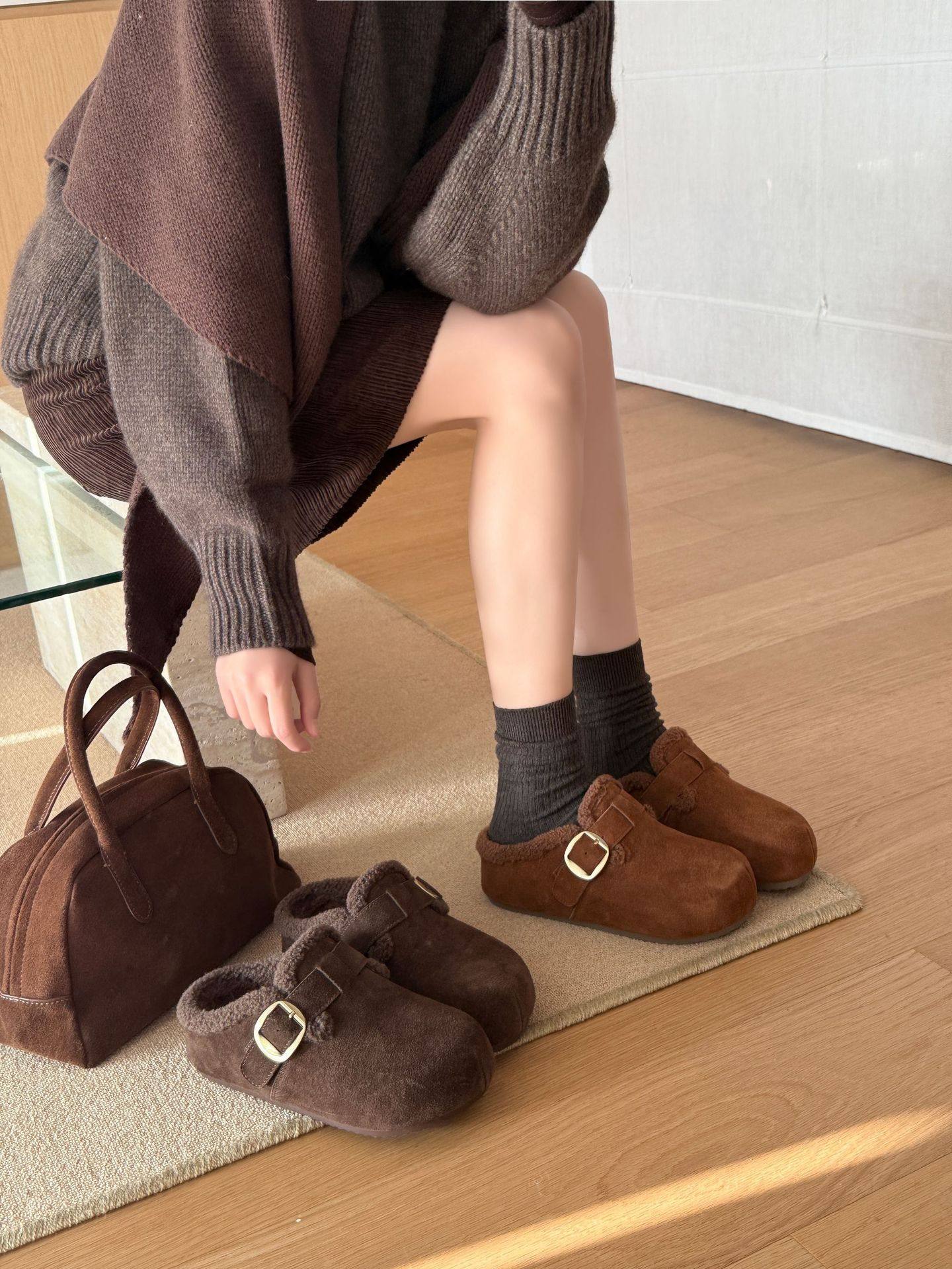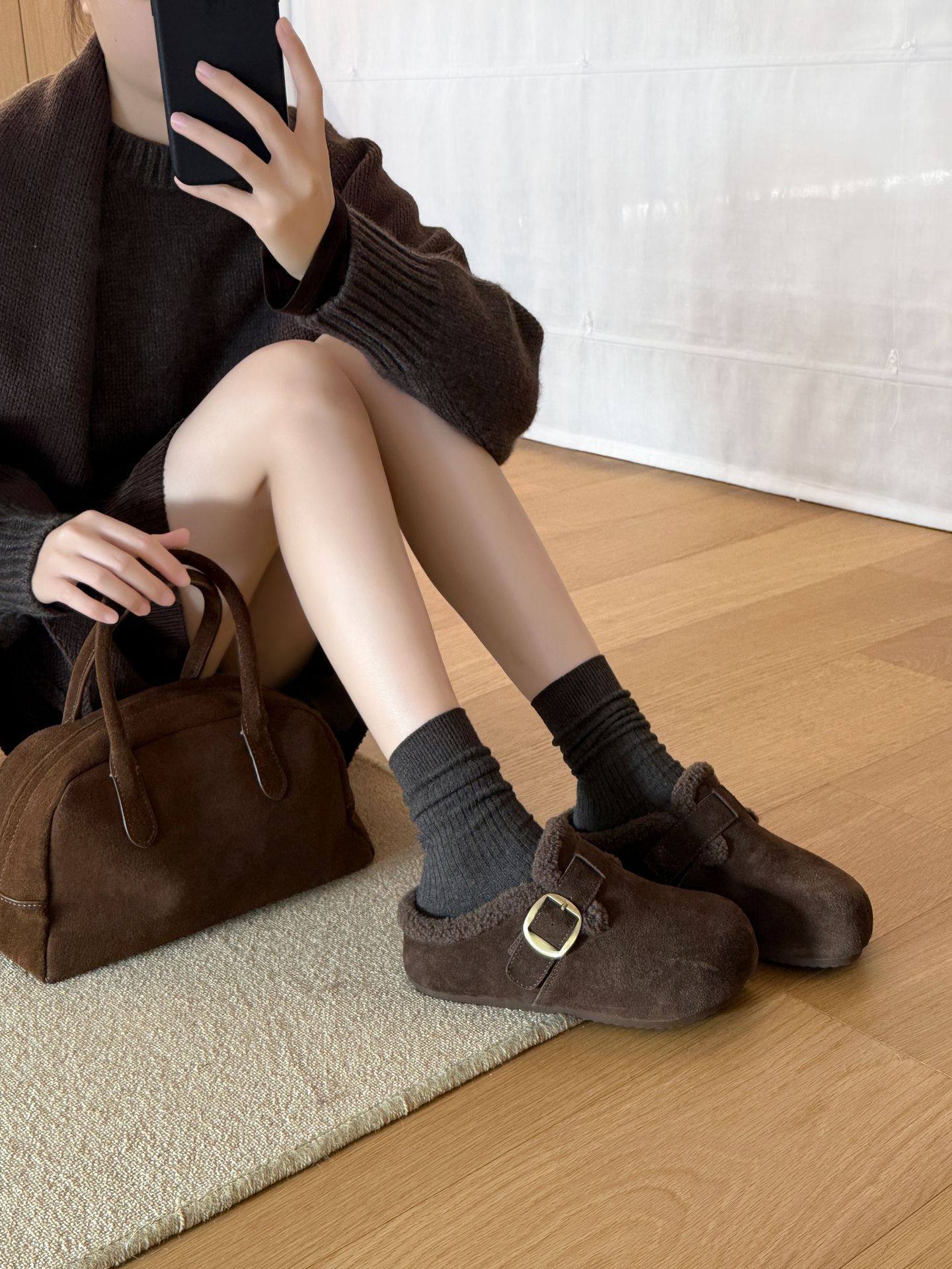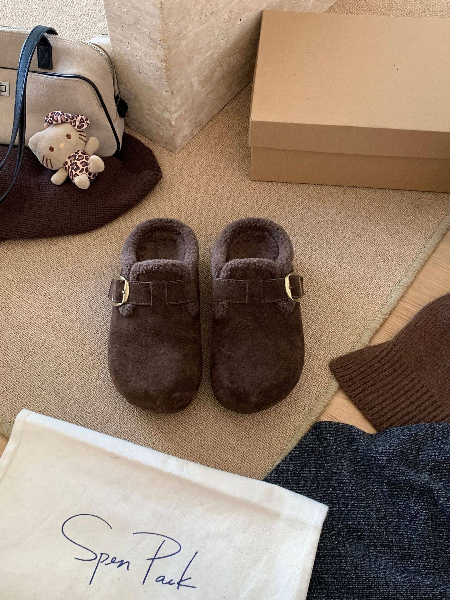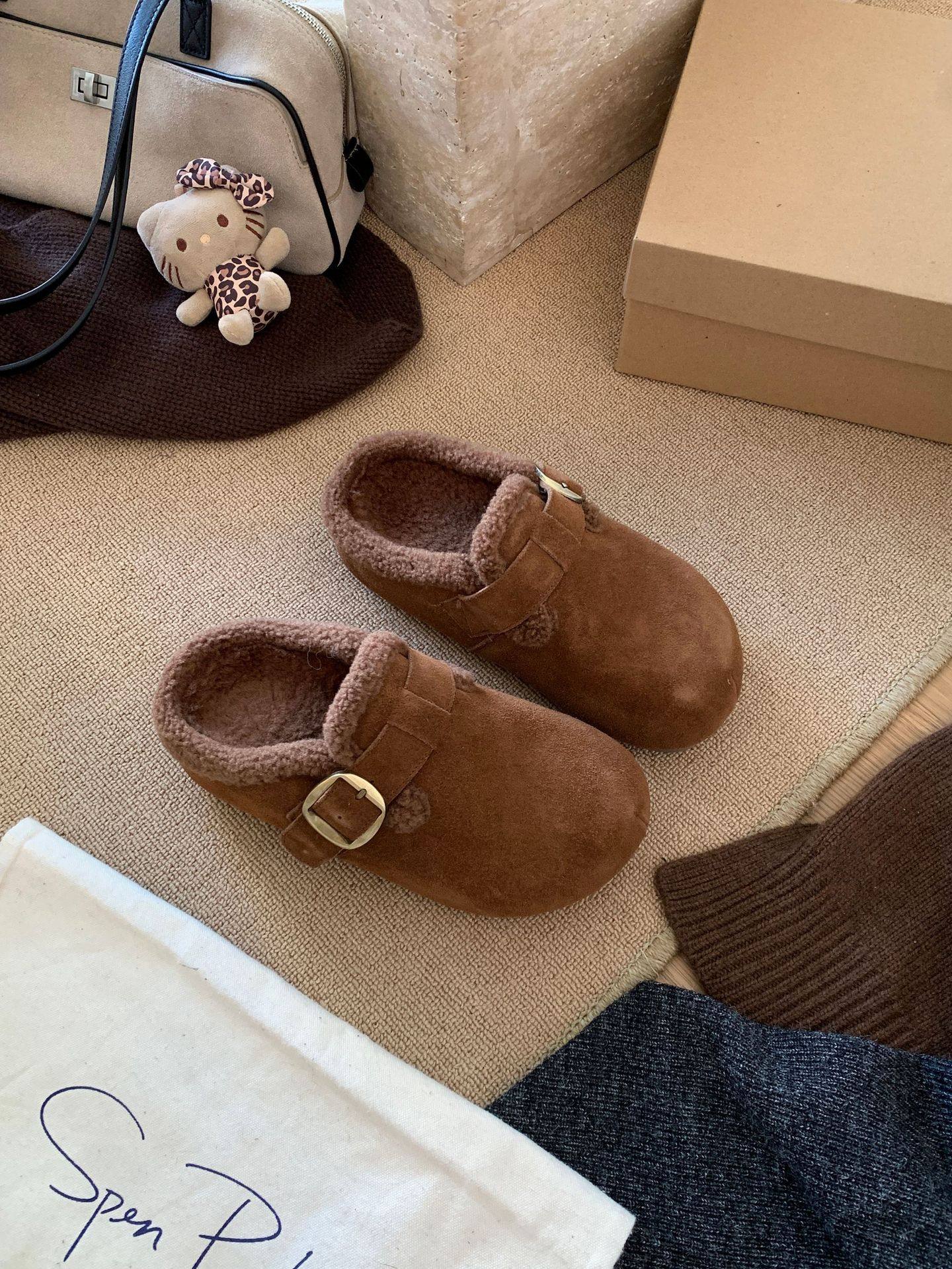 Marco&Joyce Fleece-Lined Birkenstock Shoes for Women Autumn and Winter 2025 New Women's Shoes Warm Northeastern Cotton Shoes One-Legged Beans