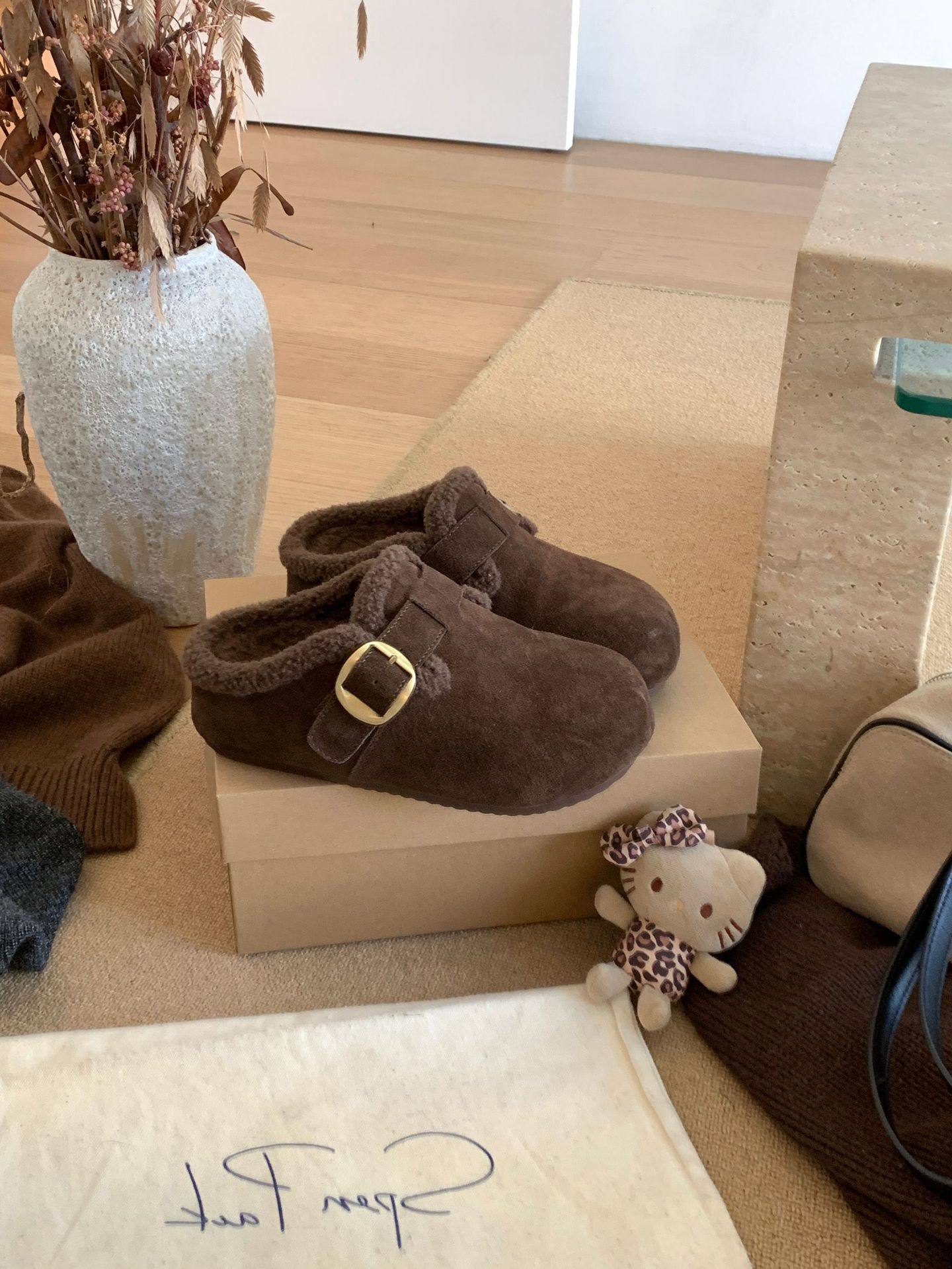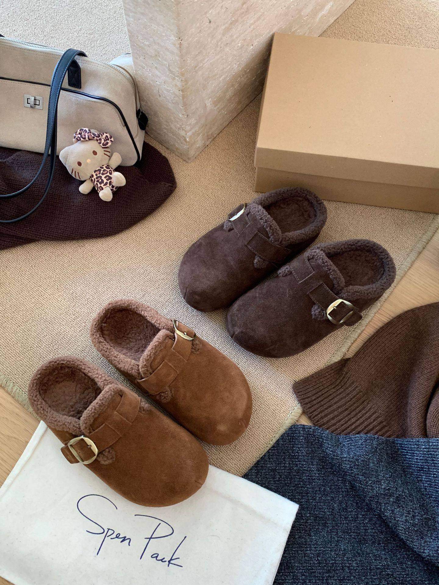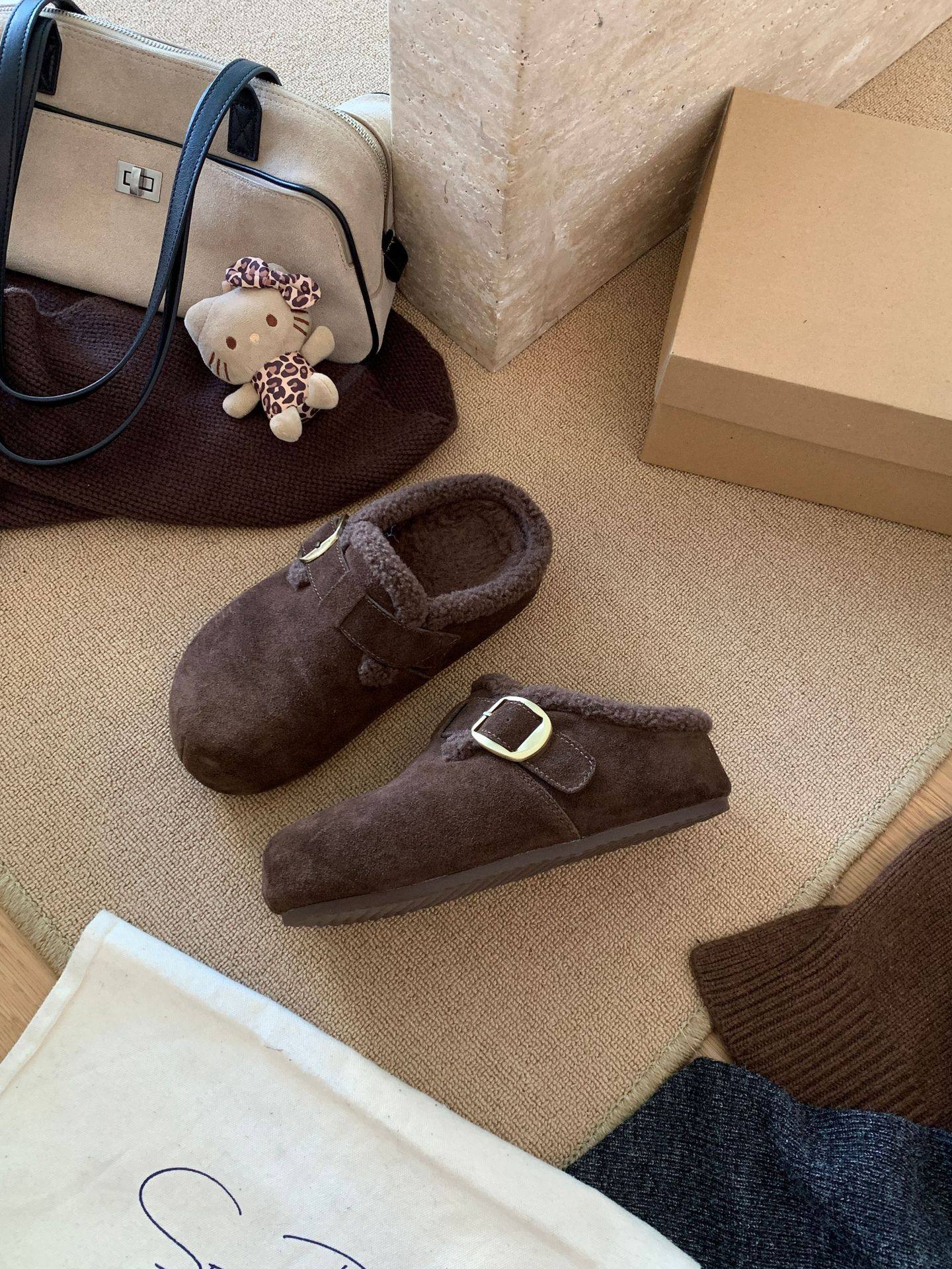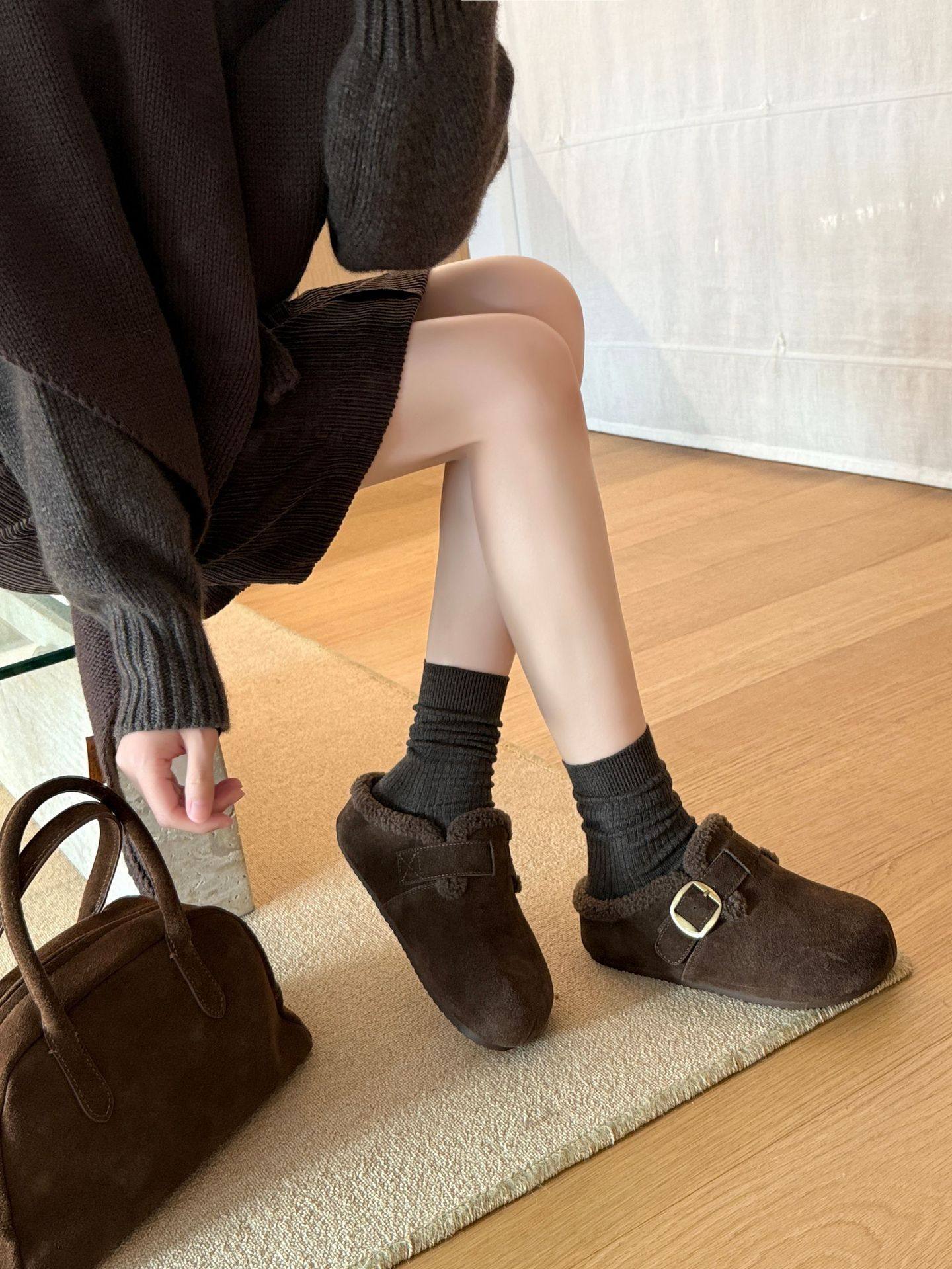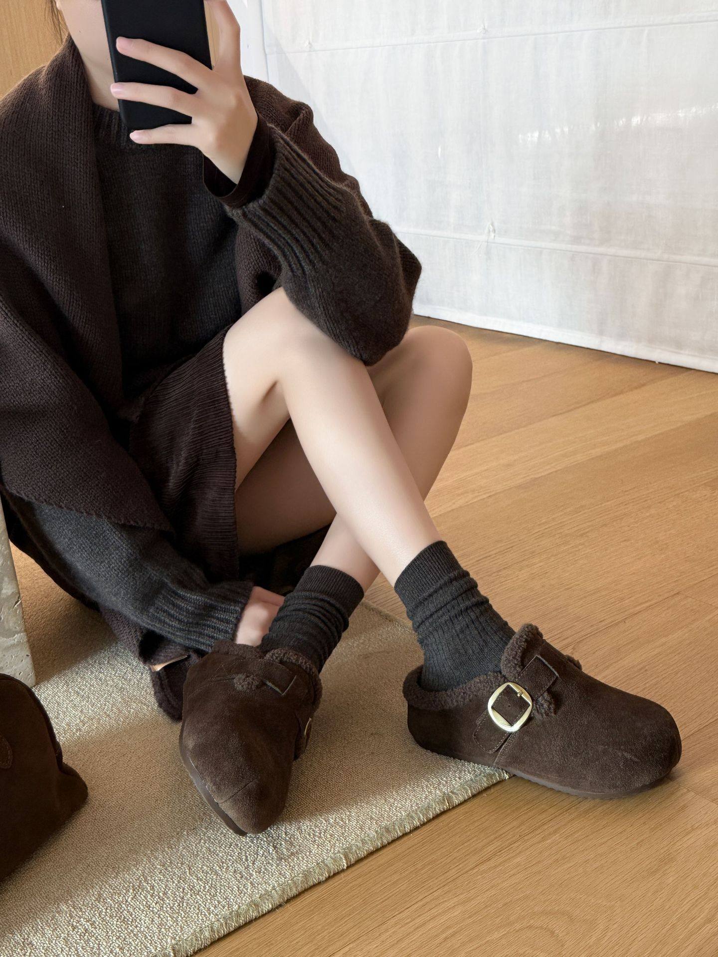 Marco&Joyce Fleece-Lined Birkenstock Shoes for Women Autumn and Winter 2025 New Women's Shoes Warm Northeastern Cotton Shoes One-Legged Beans