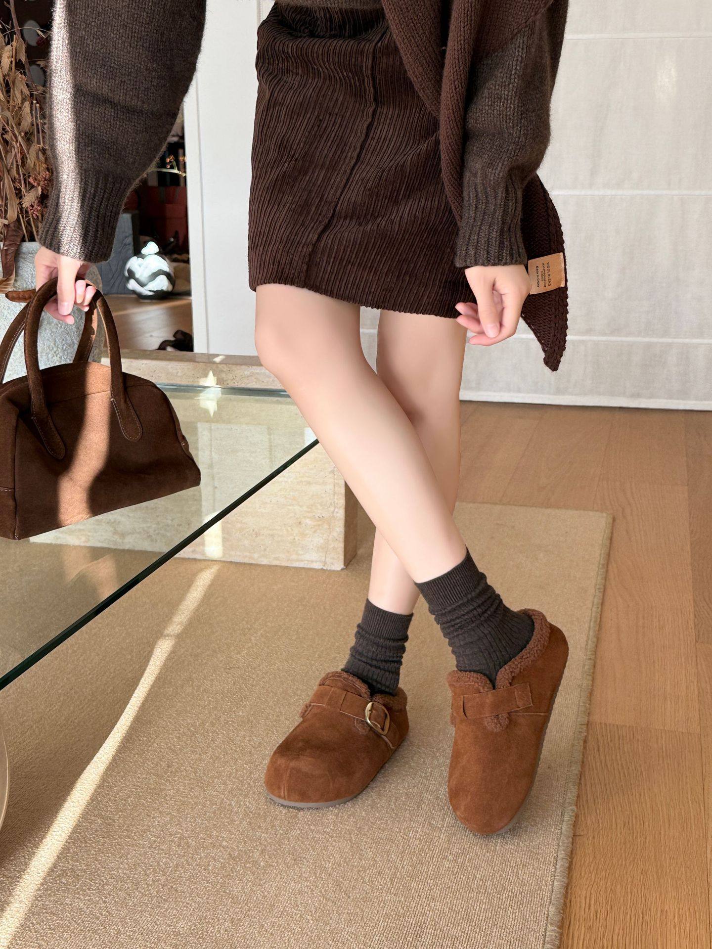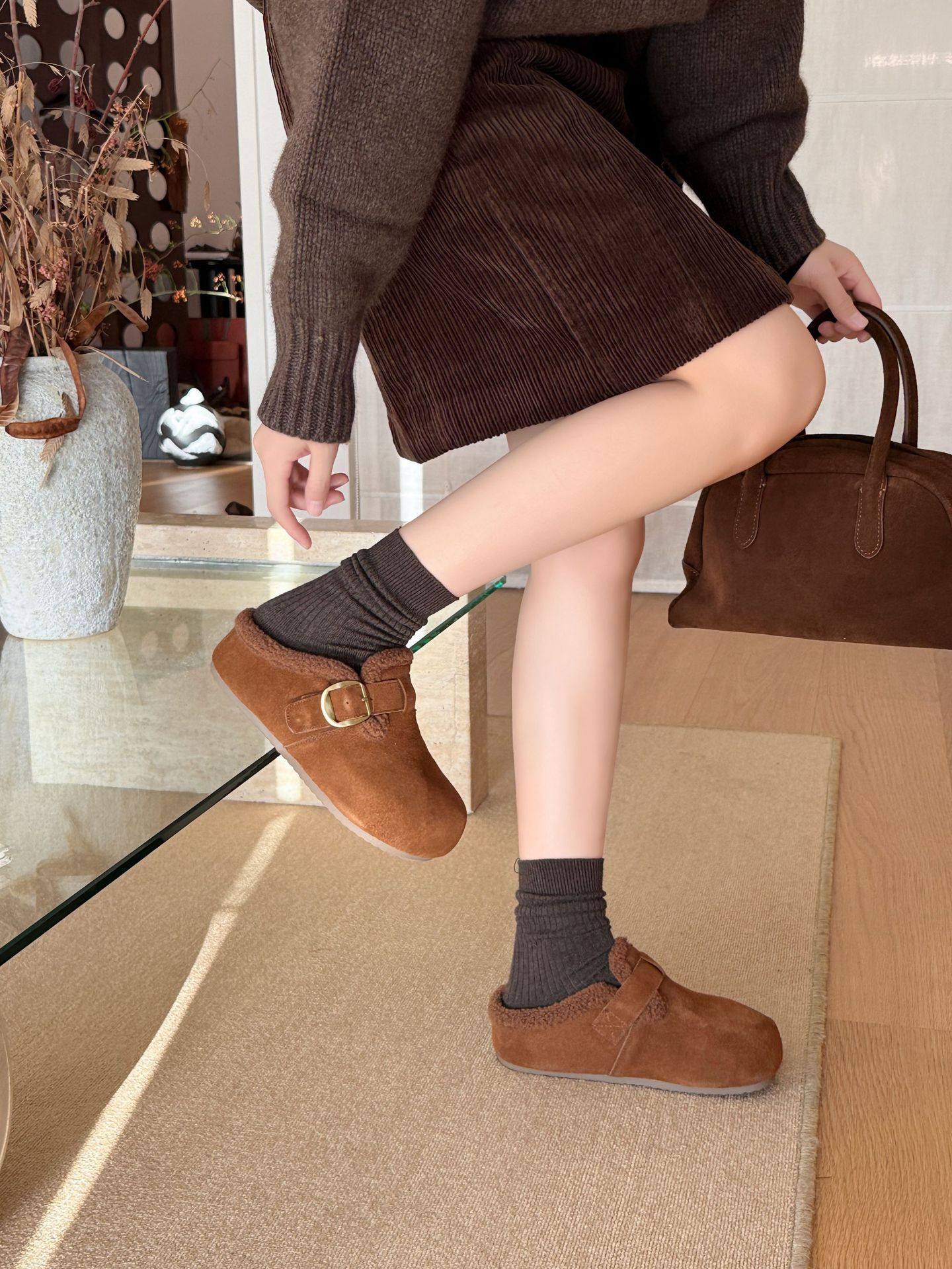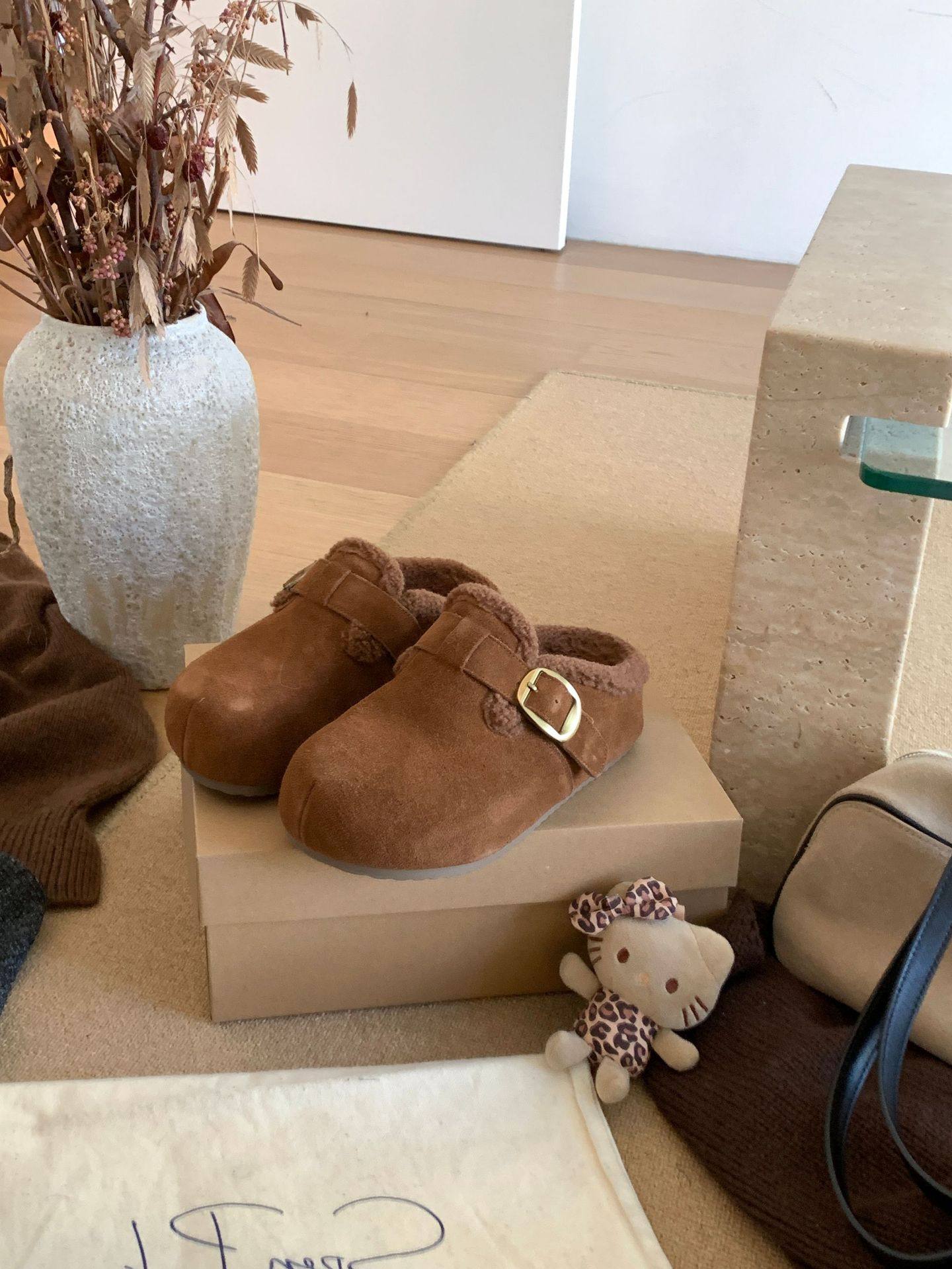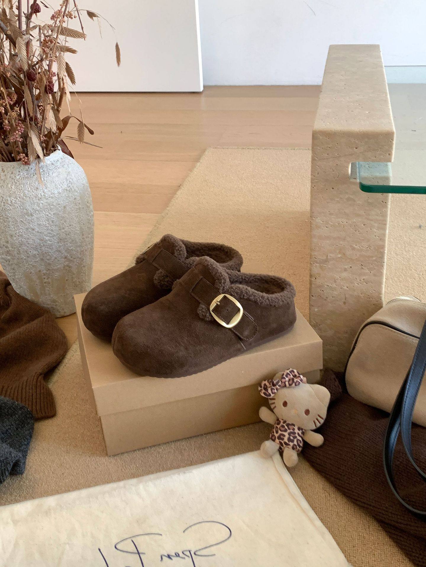 Marco&Joyce Fleece-Lined Birkenstock Shoes for Women Autumn and Winter 2025 New Women's Shoes Warm Northeastern Cotton Shoes One-Legged Beans