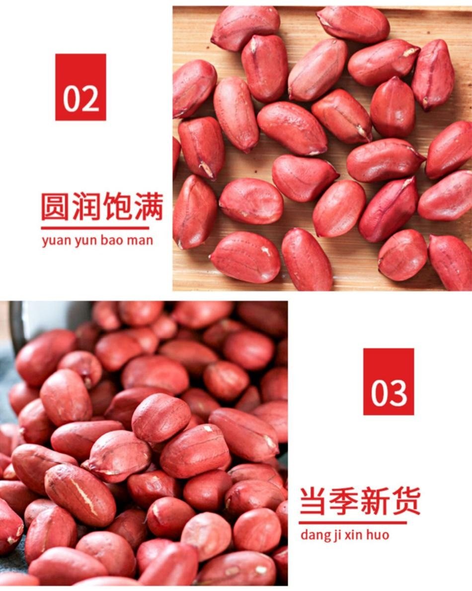 | Packaging specifications | [1 can] red-skinned peanuts (raw) 500g in total,[1 can] red-skinned peanuts (cooked) 500g in total,[2 cans] red-skinned peanuts (raw) 1000g in total,[2 cans] red-skinned peanuts (cooked) 1000g in total,[3 cans] red-skinned peanuts (raw) 1500g in total,[3 cans] red-skinned peanuts (cooked) 1500g in total,[4 cans] red-skinned peanuts (raw) 2000g in total,[4 cans] red-skinned peanuts (cooked) 2000g in total |