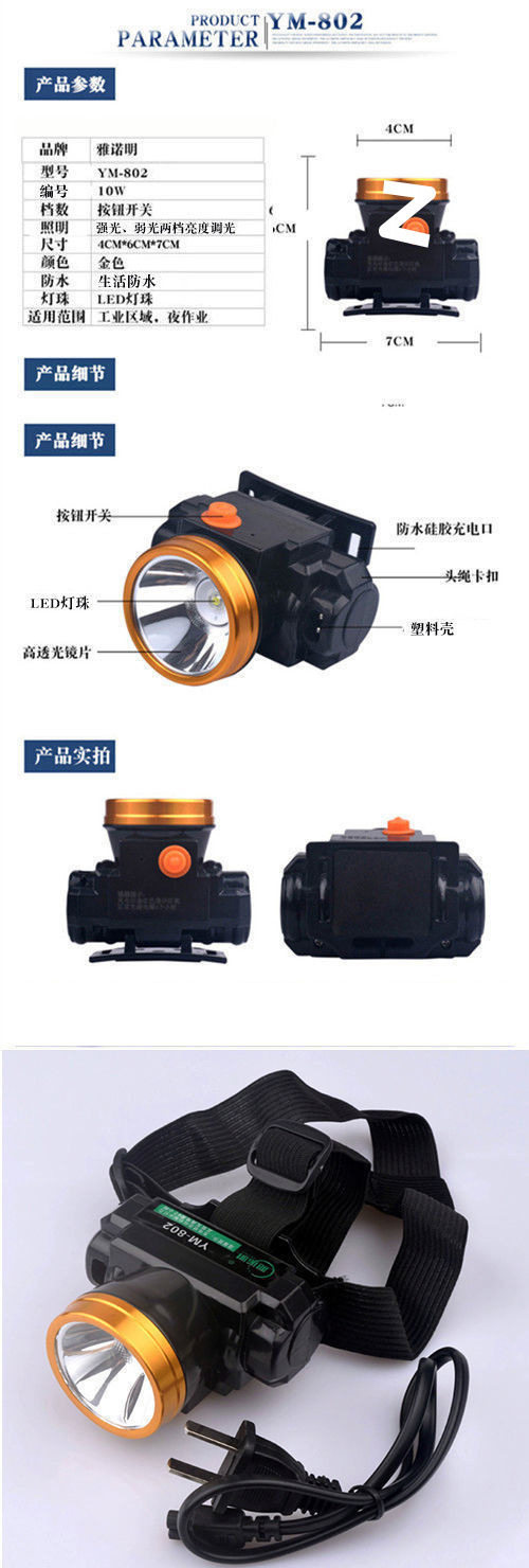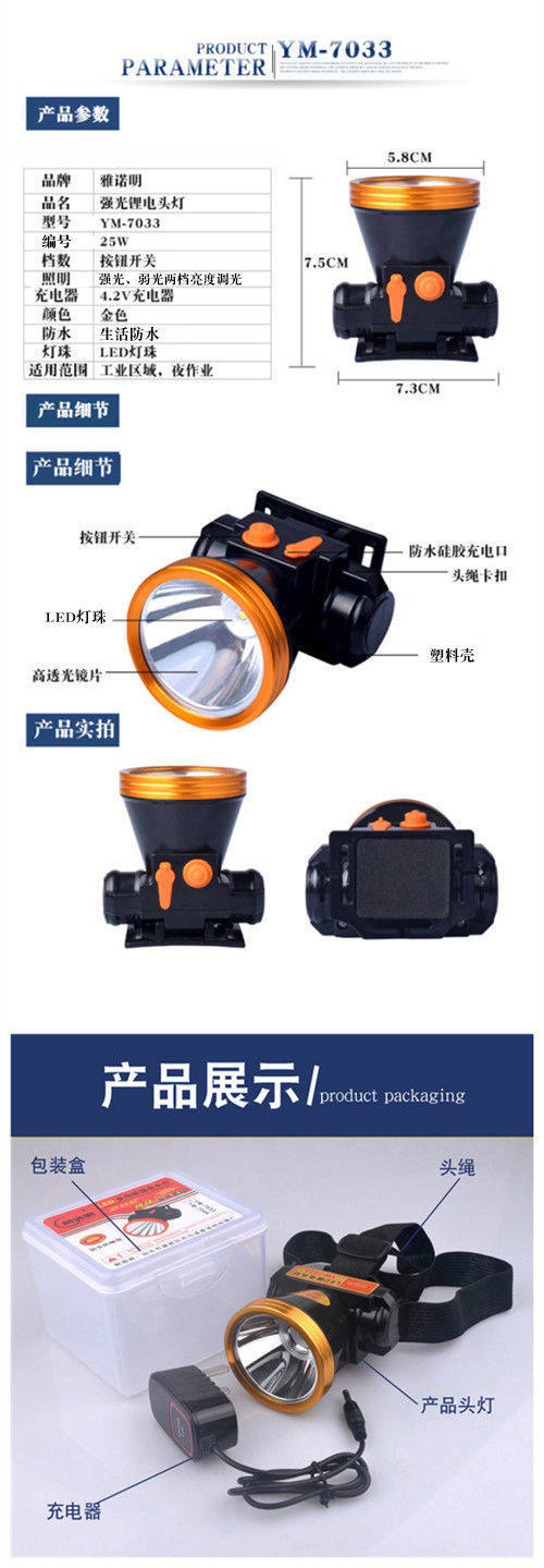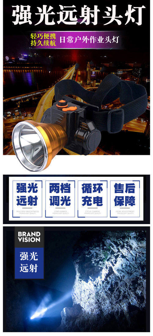 Outdoor Head-Mounted Night Riding Fishing Night Fishing Miner's Lamp Flashlight Led High-Brightness Strong Light Long-Range Lithium Battery Rechargeable Headlight