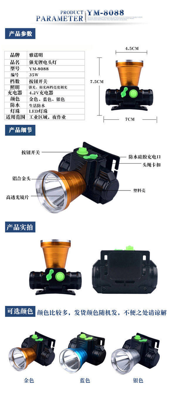 | Color | Ordinary configuration [white light two-level brightness dimming],Household lighting [white light two-level brightness dimming],7011 # 10w [white light two-level brightness dimming],7022 gold circle # 15w [white light two levels of dimming],7033 gold circle # 25w [white light two levels of dimming],8088 gold head # 35w [white light two levels of dimming],8088 blue head # 35w [white light two levels of dimming],9088 gold head # 50w [white light two levels of dimming],9088 blue head # 50w [white light two levels of dimming] |