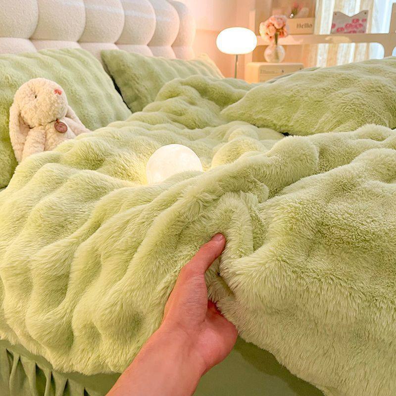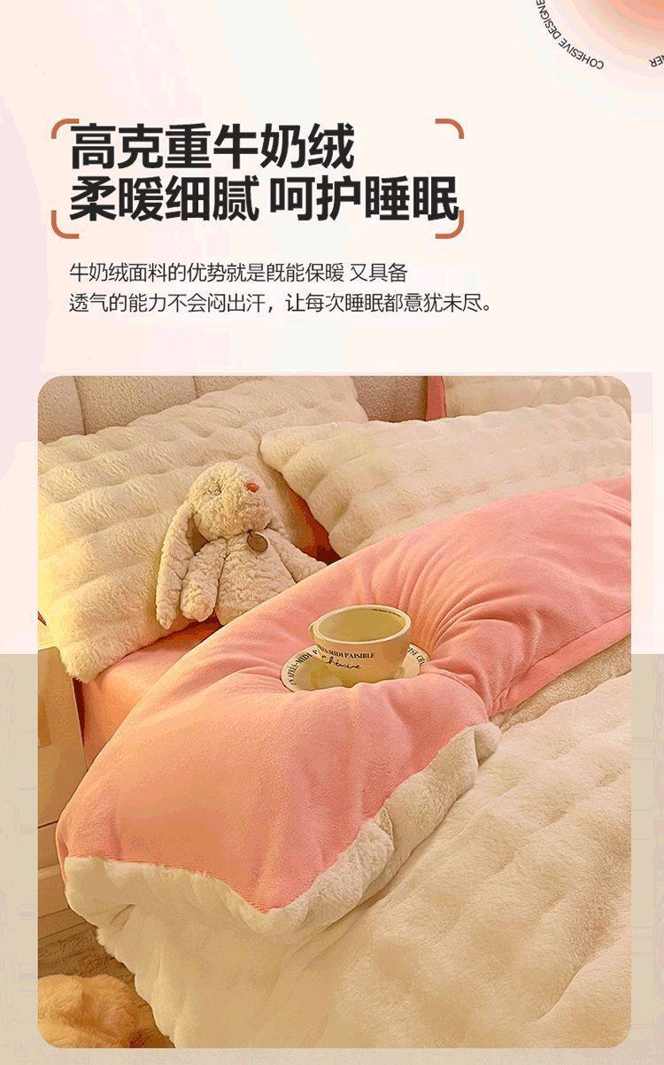 Thickened Rabbit Plush Bed Four-Piece Set, Warm Milk Velvet Bed Bed Sheets, Quilt Cover, Coral Velvet Three-Piece Set, Double-Sided Flannel