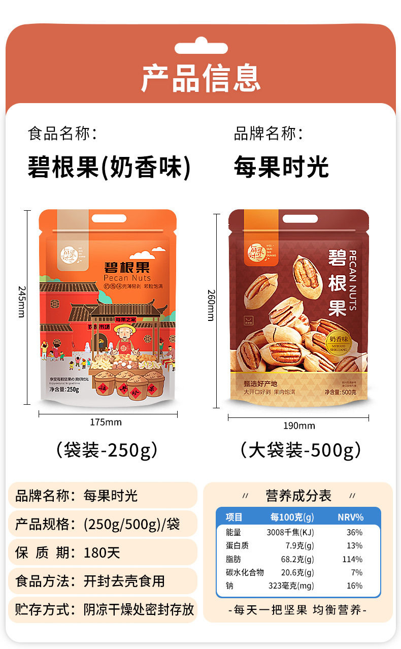 Every Fruit Time Pecan 500g Longevity Fruit Dried Fruit Nut Walnut Kernel Pregnant Women Nut Roasted Seeds Casual Snacks
