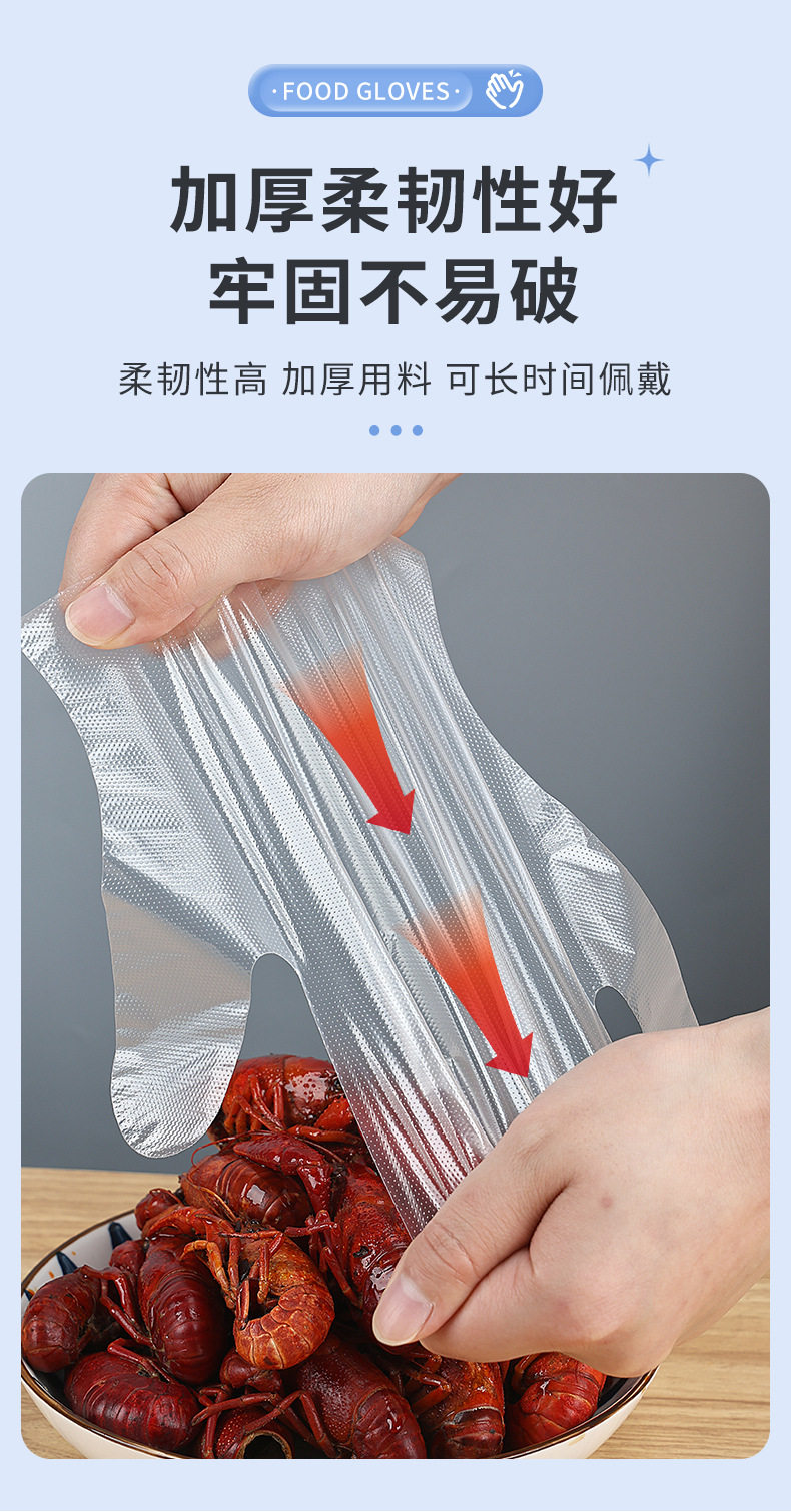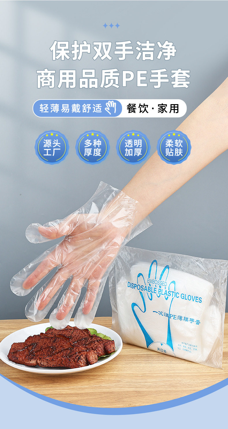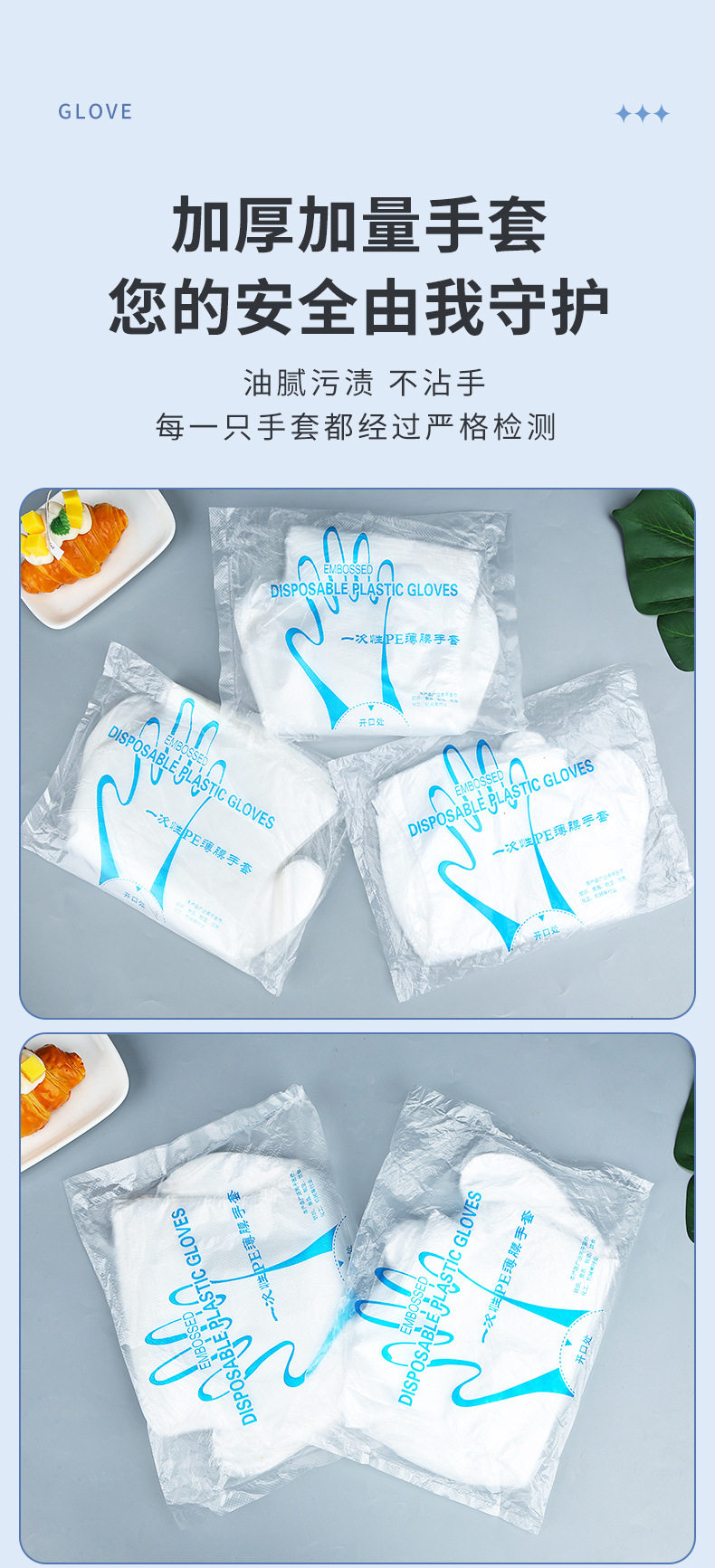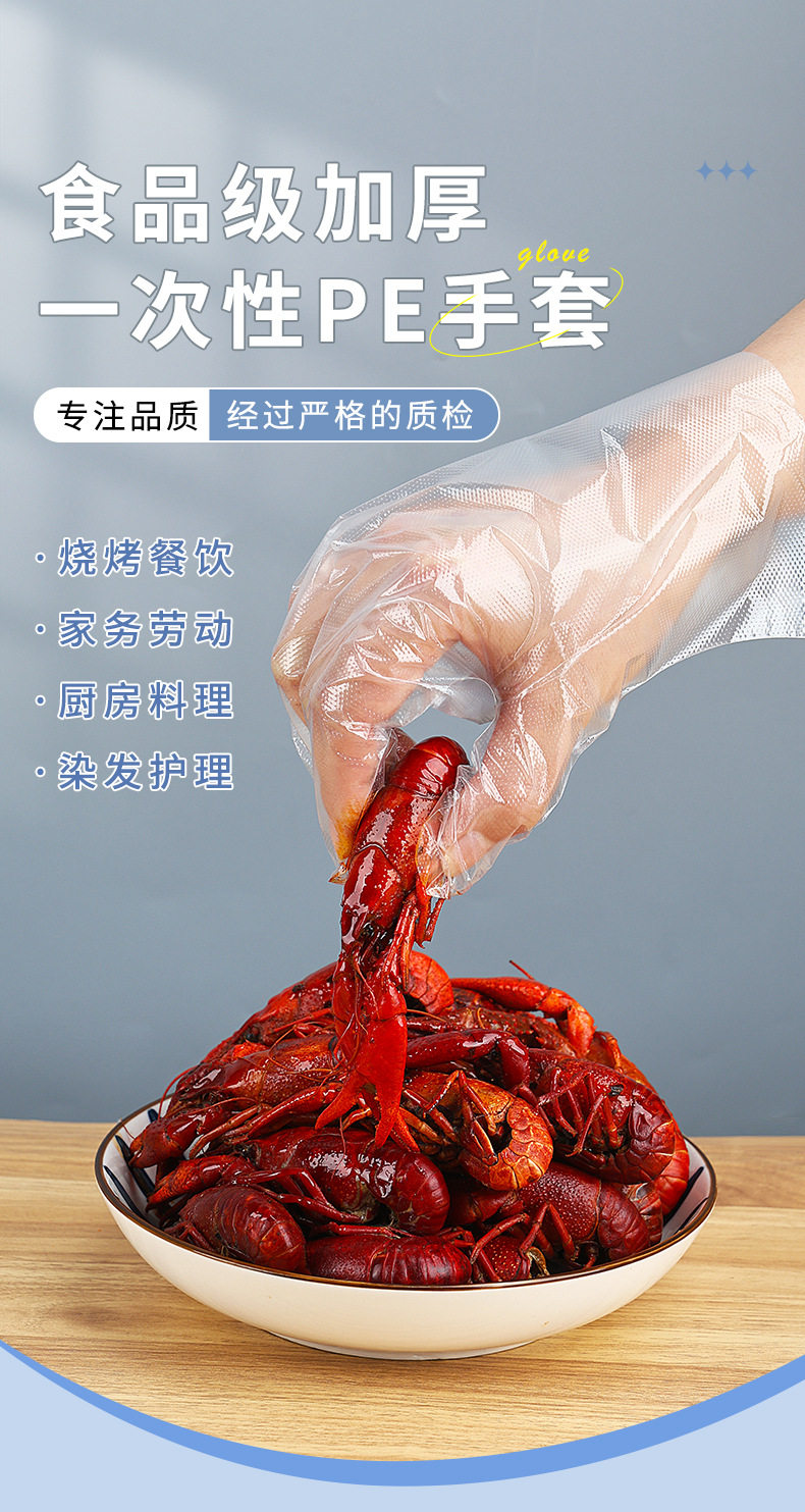 Disposable Gloves, Thickened for Hand Protection, Suitable for Food, Catering, Takeout, Crayfish, Baking, Pe Plastic Film Packaging
