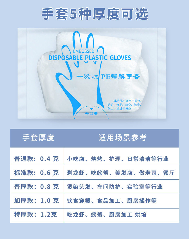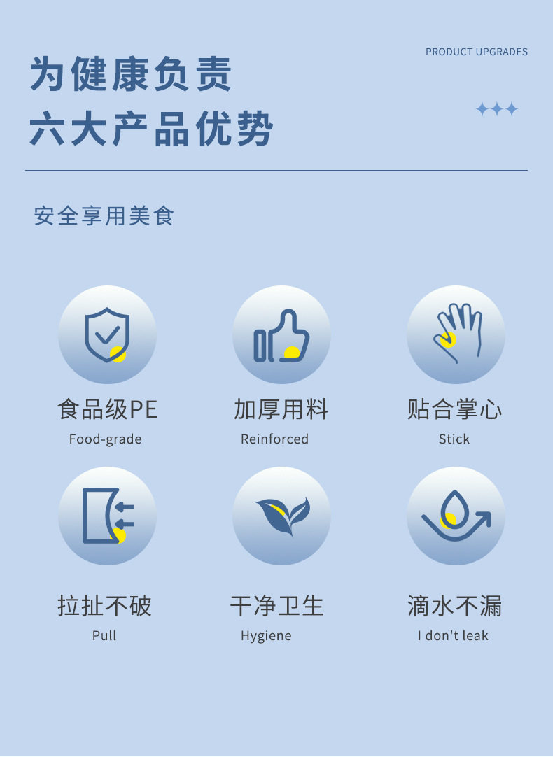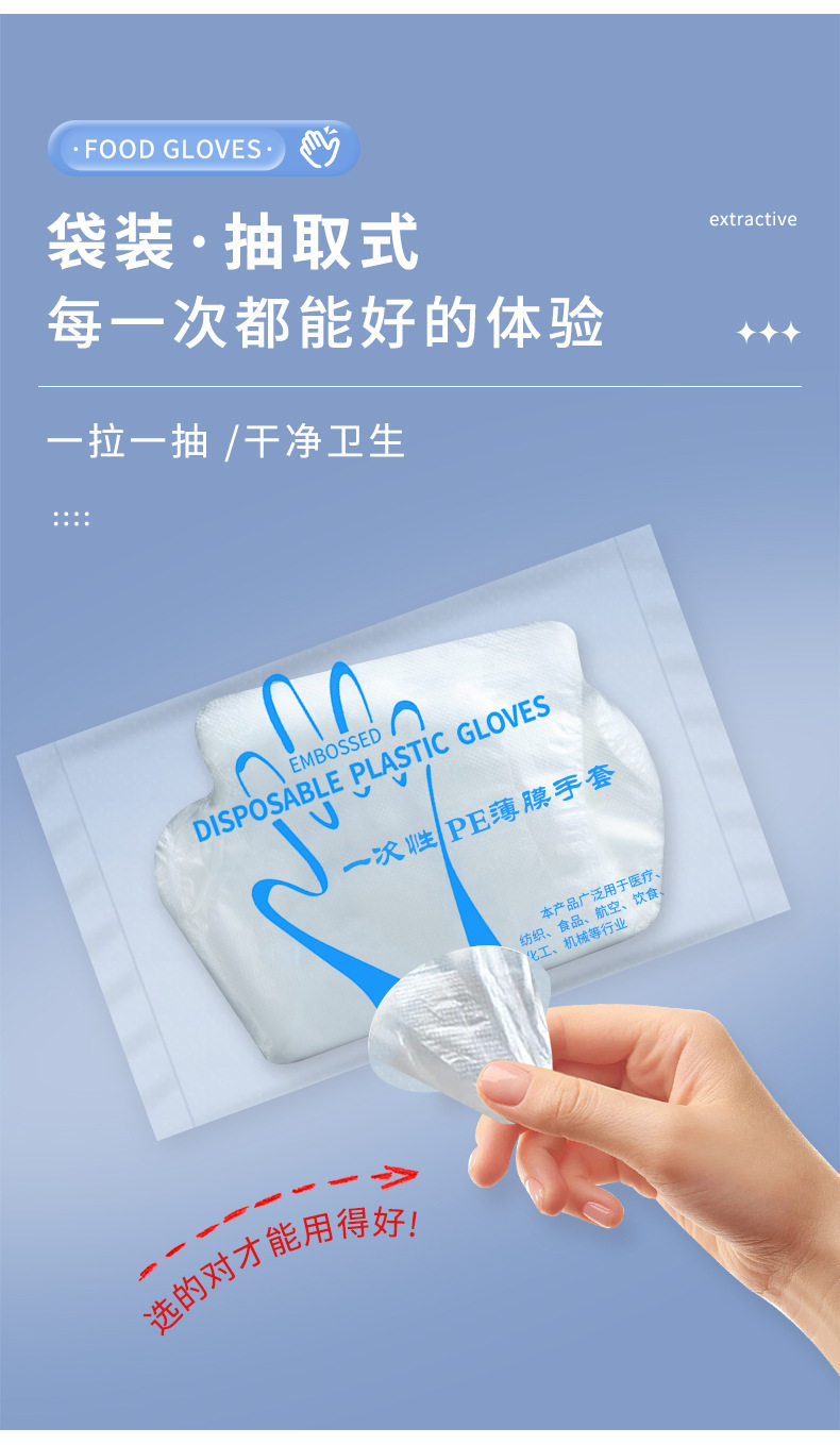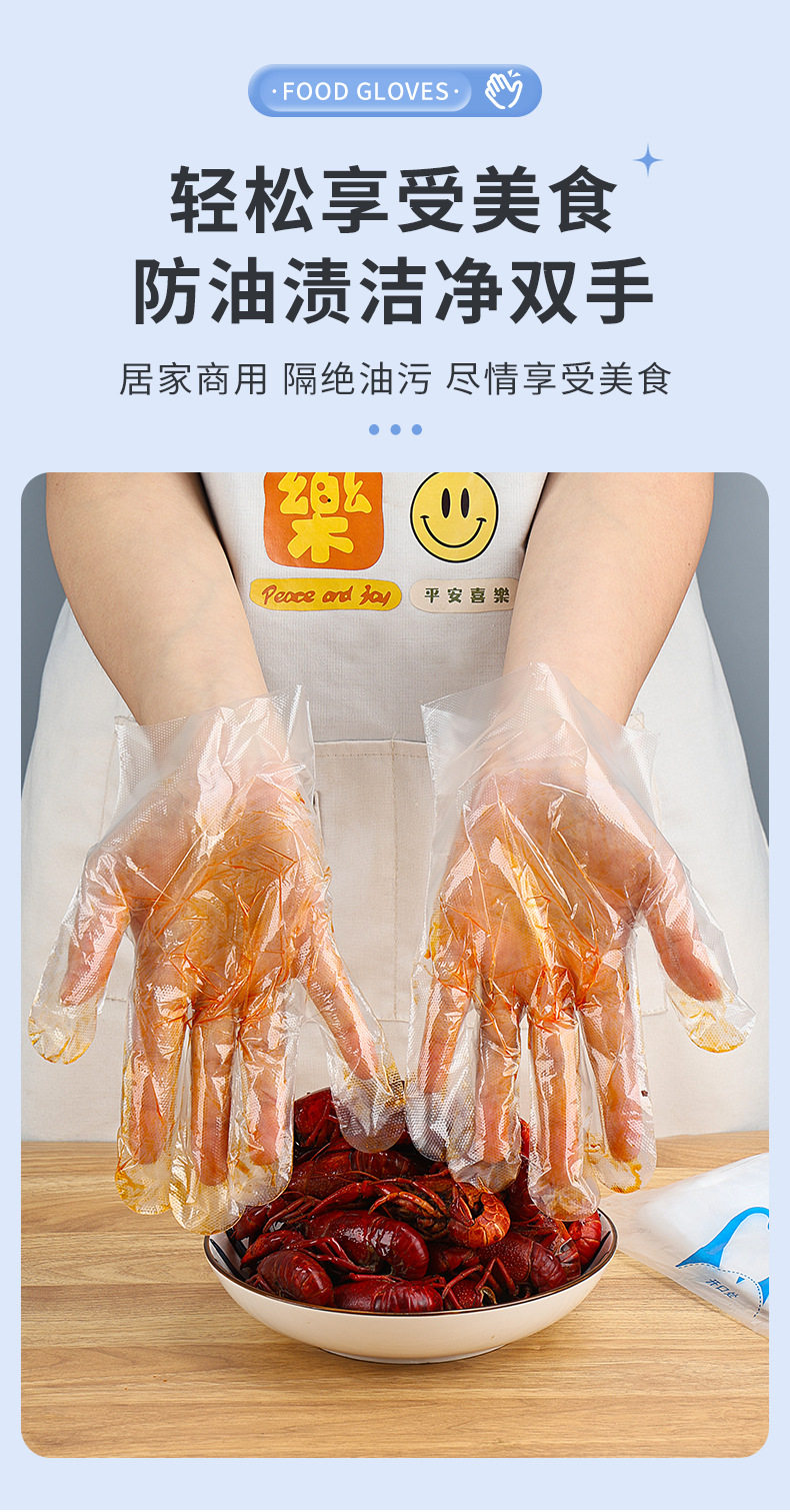 Disposable Gloves, Thickened for Hand Protection, Suitable for Food, Catering, Takeout, Crayfish, Baking, Pe Plastic Film Packaging