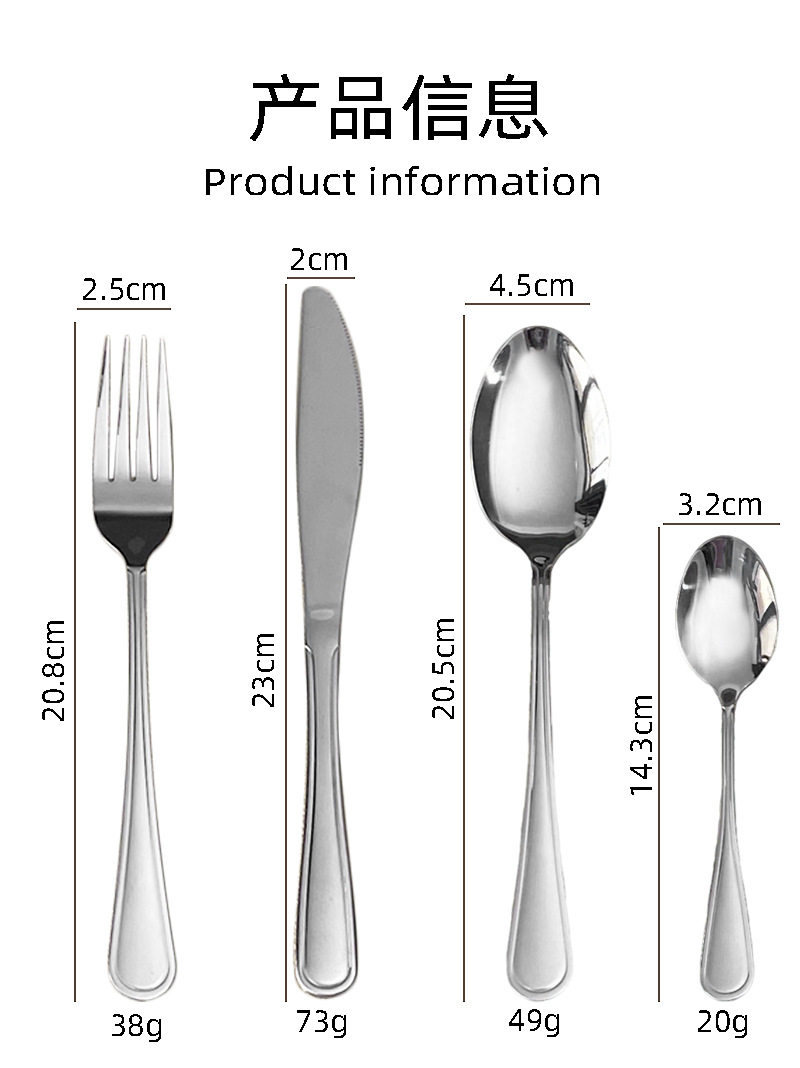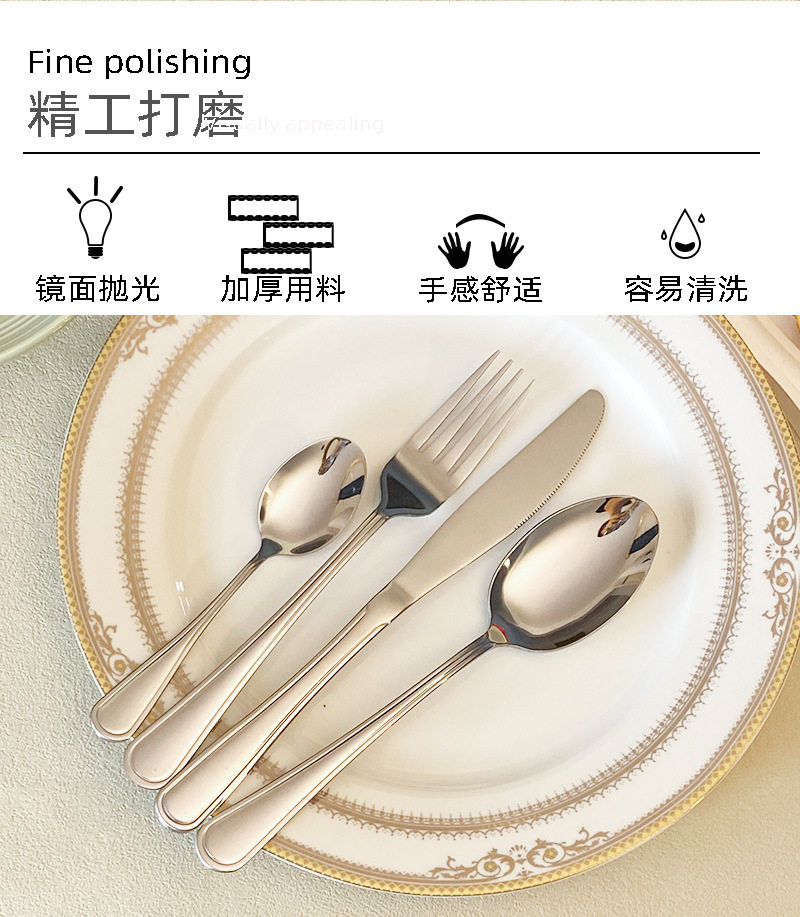 Cross-Border Supply of Stainless Steel Cutlery, Thickened Steak Cutlery, Four-Piece Dessert Spoon, Tea Spoon, Hotel Western Tableware