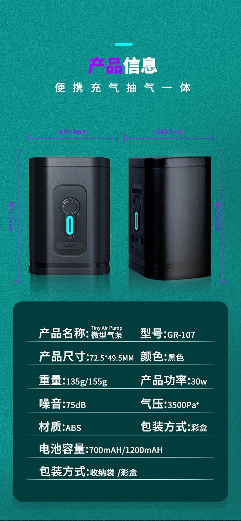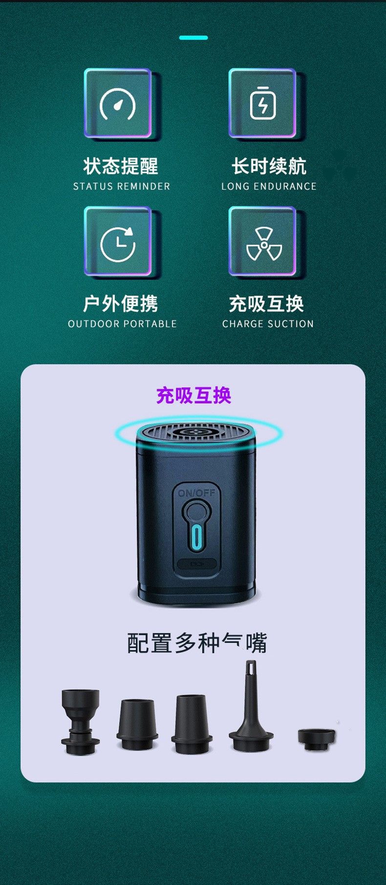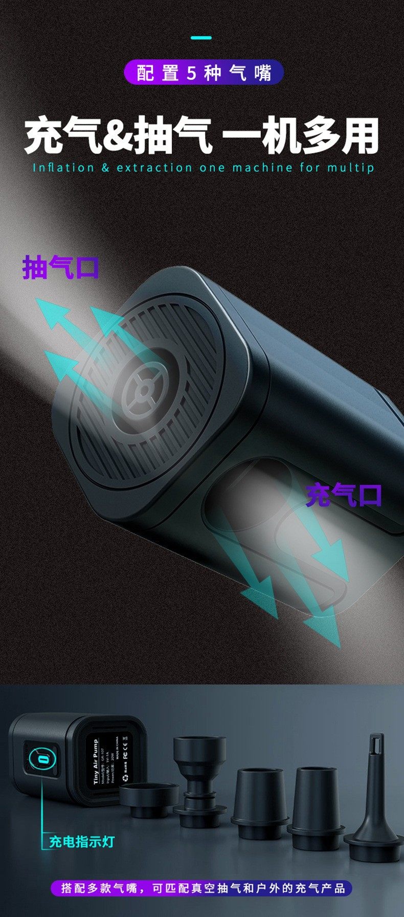 Outdoor Camping Portable Electric Air Pump Air Mattress Swimming Ring Inflatable Dedicated Storage Pump Dual-Use Wireless Pump