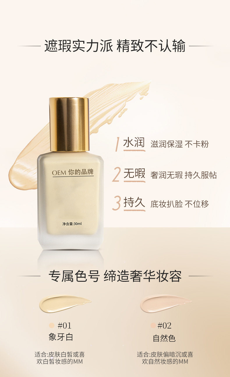 Long-Lasting Liquid Foundation, Non-Removable Concealer, Big-Name Replacement, Cross-Border Oem Cosmetics Processing, Dw Liquid Foundation Customization