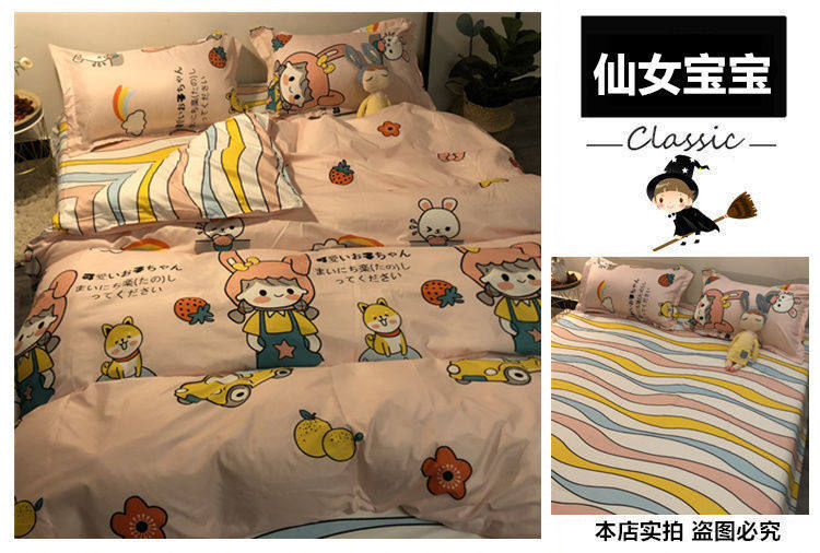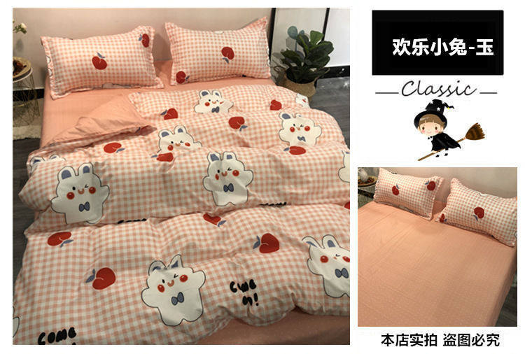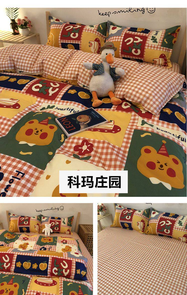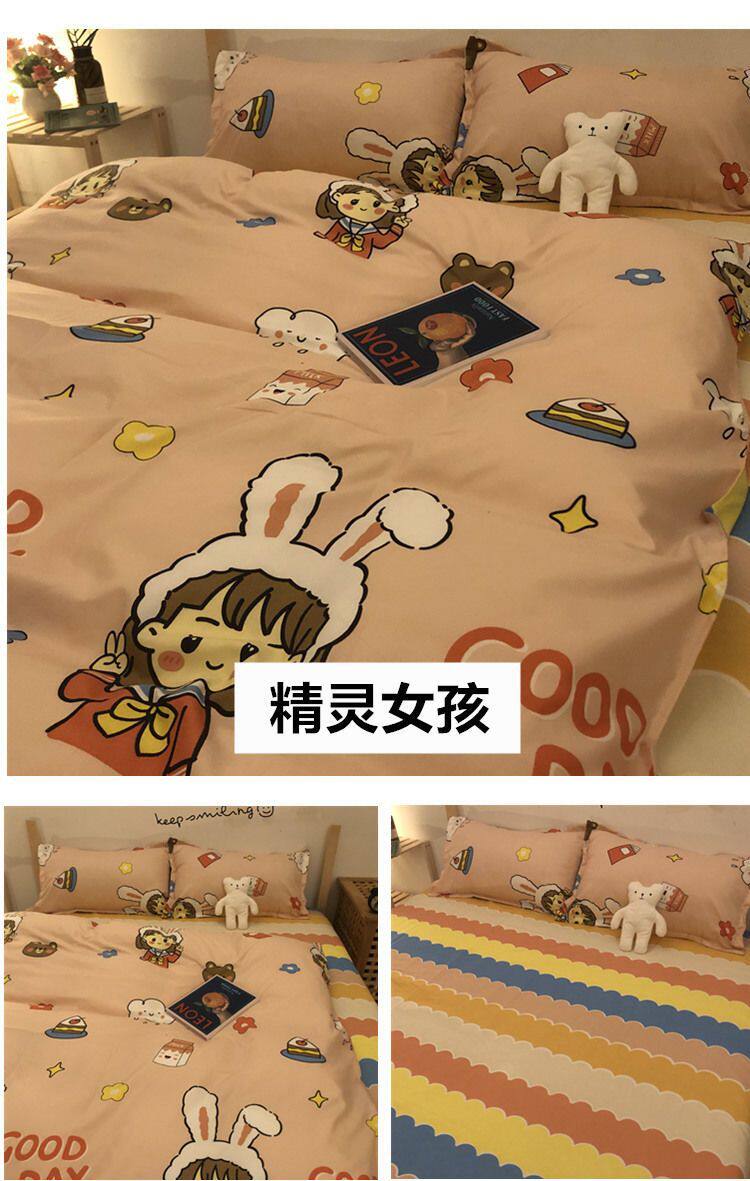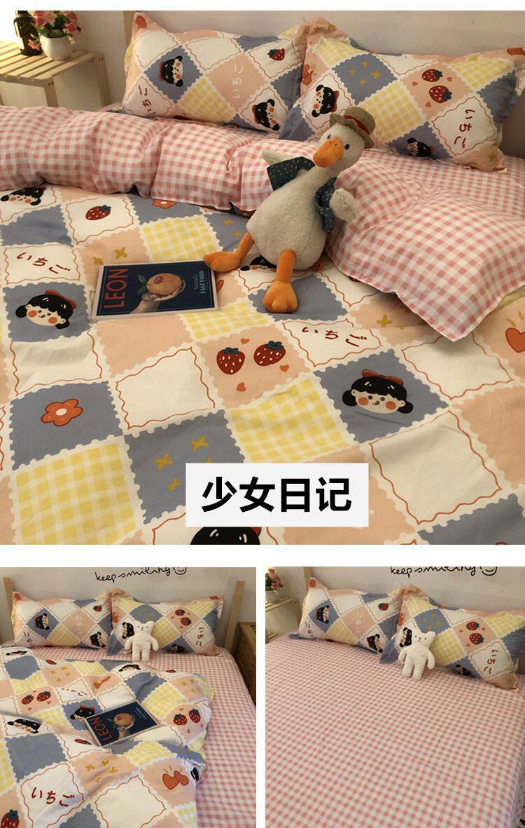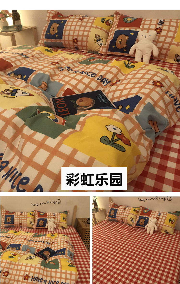 Cartoon Color Matching Four-Piece Quilt Cover Bedding Ins Girly Heart Quilt Cover Kidsren's Dormitory Bed Single Three-Piece Set