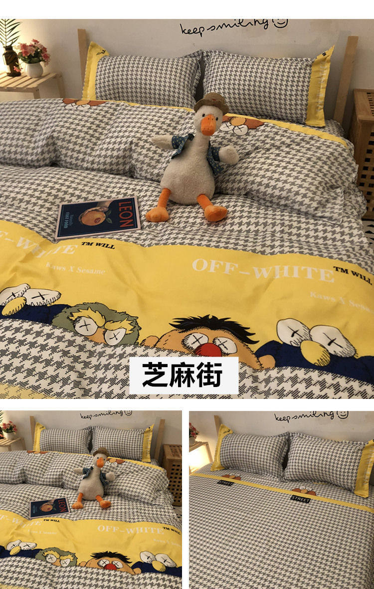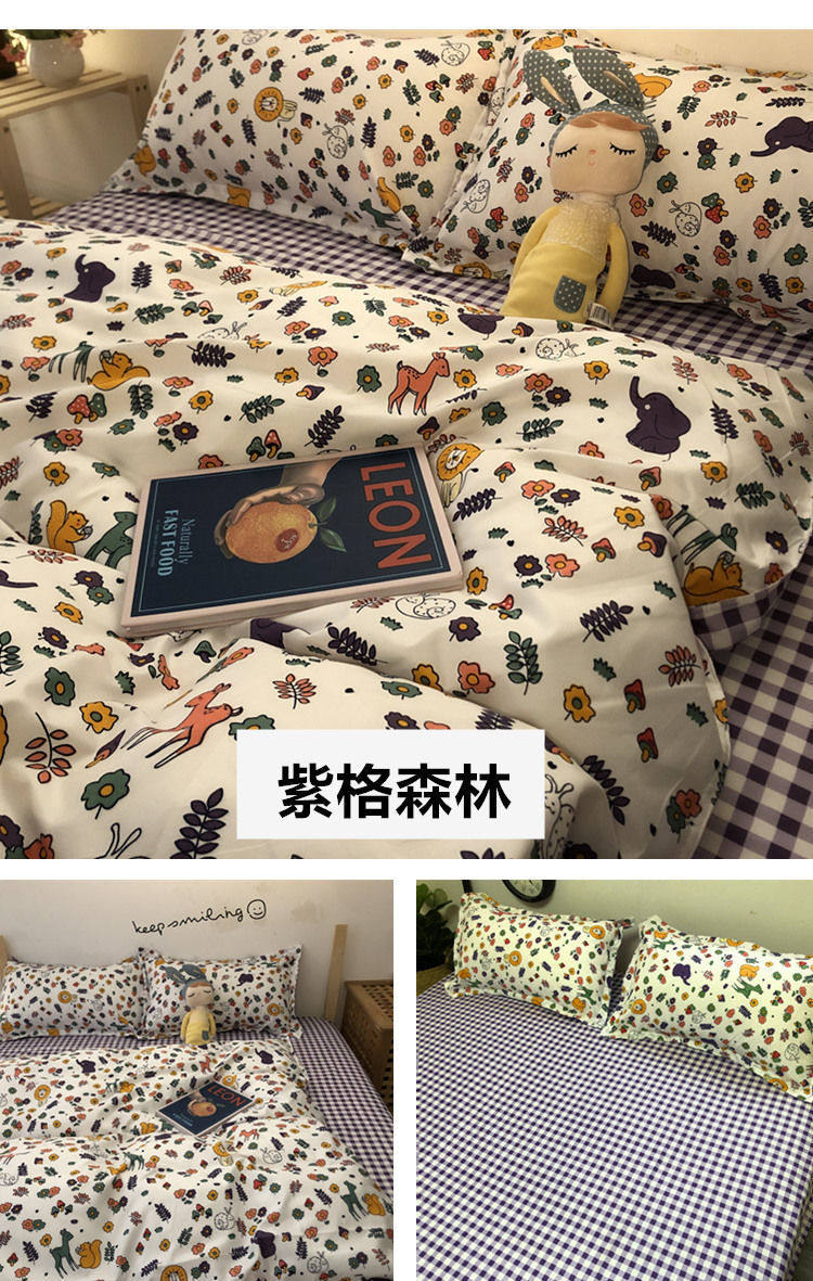 | Size specifications | 1.5m piece set [dormitory bed,1.9m piece set [quilt cover 150*200,2.2m piece set [quilt cover 180*220,2.4m piece set [quilt cover 200*230,One pillow (random color) |