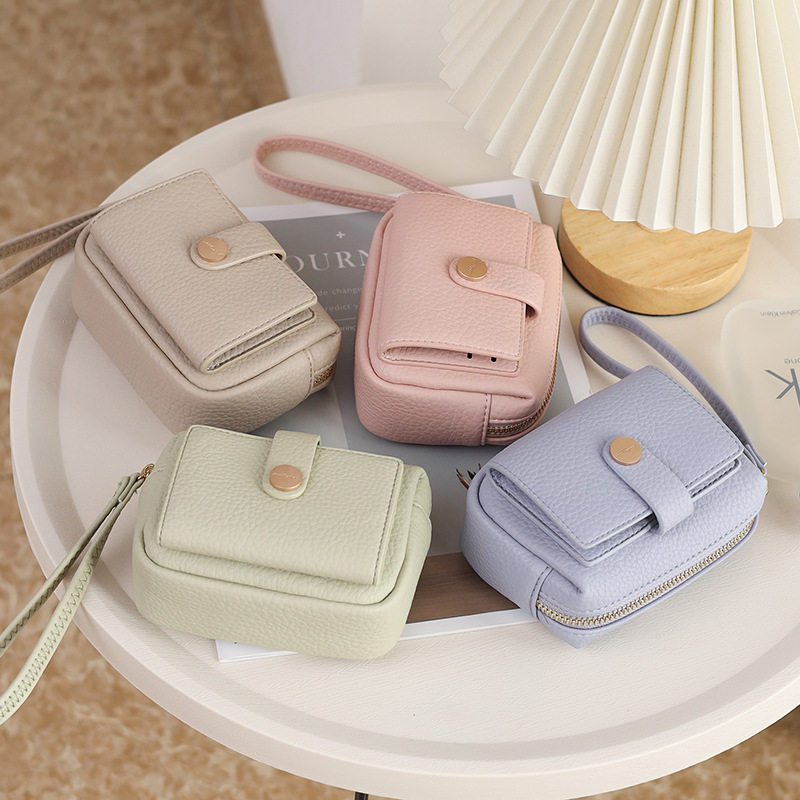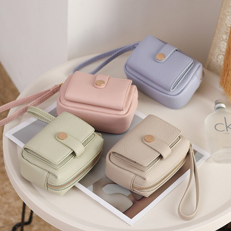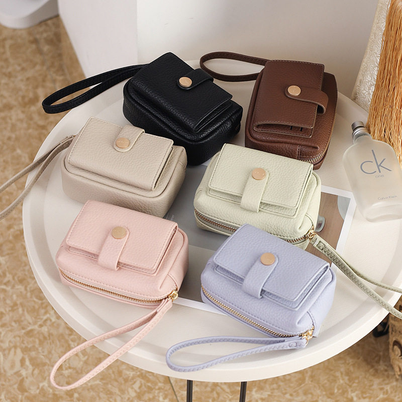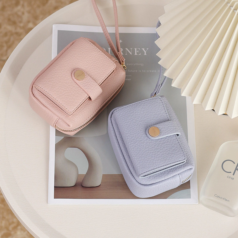 New Women's Coin Purse from the Source Manufacturer, Korean and Japanese Style Pu Leather Zipper Buckle Wrist Strap Student Ins Trendy Storage Bag