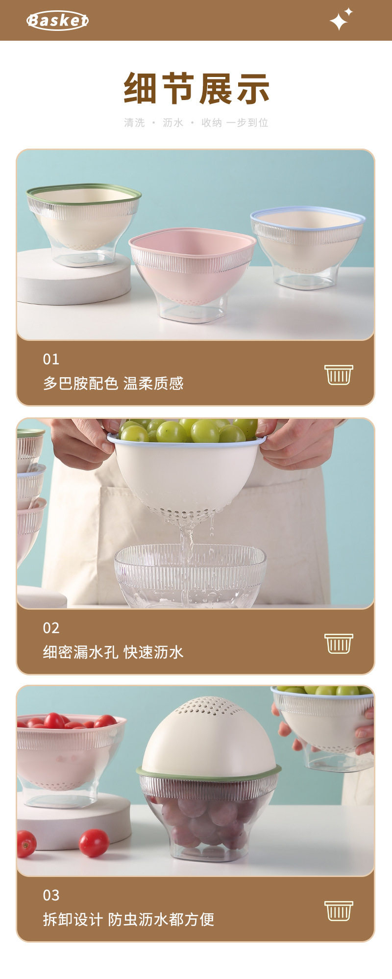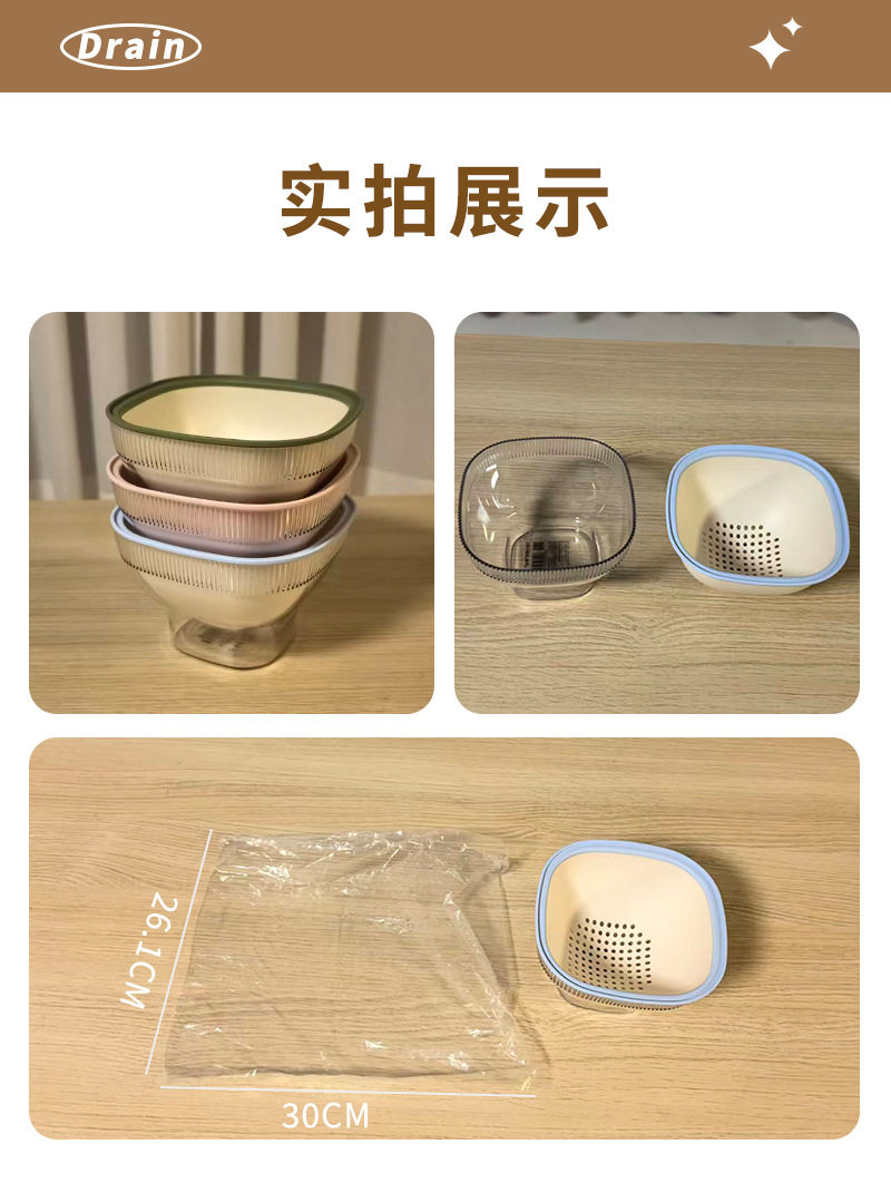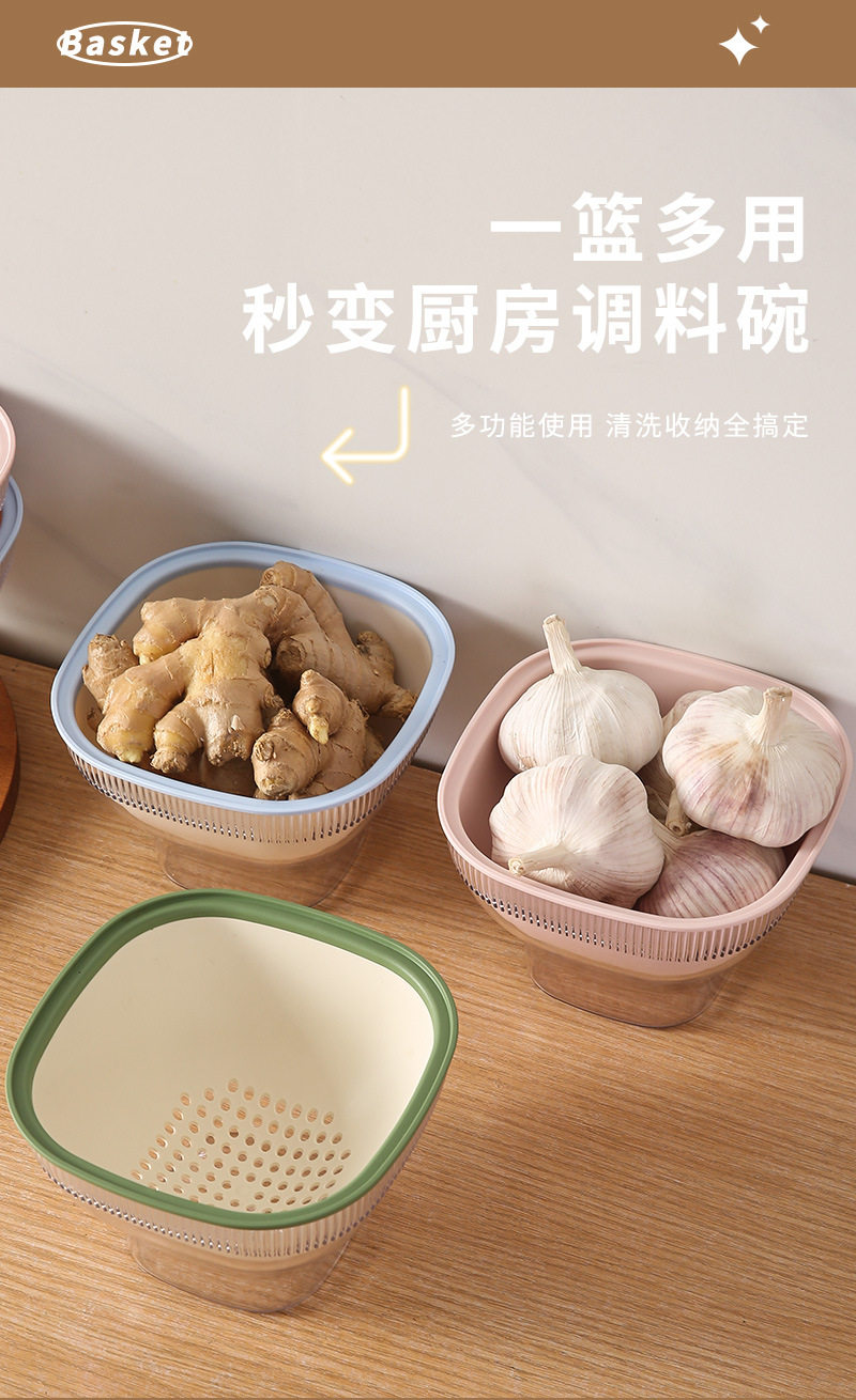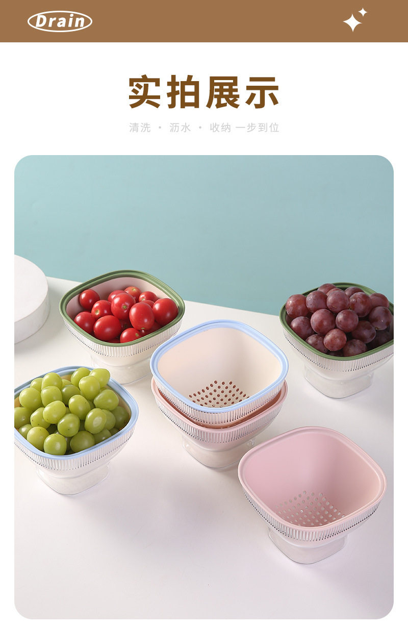 High-Quality Fruit Tray, Kitchen Vegetable Washing Basket, Double-Layer Vegetable Washing and Draining Basket