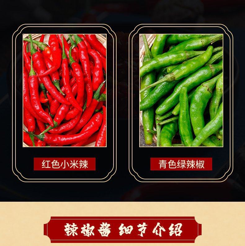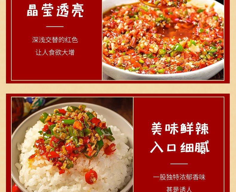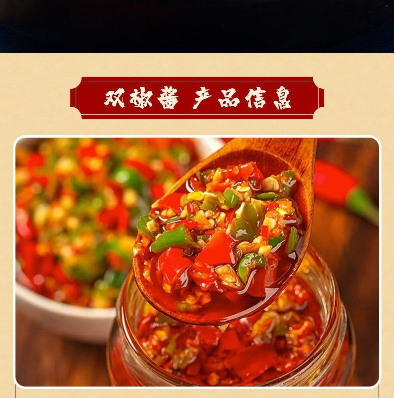 | Packaging specifications | Double pepper garlic sauce: 2500g large bucket [extra spicy/oily type],Double pepper garlic sauce: 2500g large bucket [medium spicy/oily type],Double pepper garlic sauce: 260g*2 bottles [extra spicy/oily type],Double pepper garlic sauce: 260g*2 bottles [medium spicy/oily type],Double pepper garlic sauce: 260g*2 bottles [medium spicy + extra spicy/oily type],Double pepper garlic sauce: 260g*1 bottle [extra spicy/oily type],Double pepper garlic sauce: 260g*1 bottle [medium spicy/oily type],Minced garlic and chili pepper: 2500g large bucket [extra spicy/oil-free type],Minced garlic and chili pepper: 2500g large bucket [medium spicy/oil-free type],Garlic chopped chili pepper: 260g*2 bottles [extra spicy/oil-free type],Garlic chopped chili pepper: 260g*2 bottles [medium spicy/oil-free type],Garlic chopped chili pepper: 260g*2 bottles [medium spicy + extra spicy/oil-free type],Minced garlic and chili pepper: 260g*1 bottle [extra spicy/oil-free type],Garlic chopped chili pepper: 260g*1 bottle [medium spicy/oil-free type] |