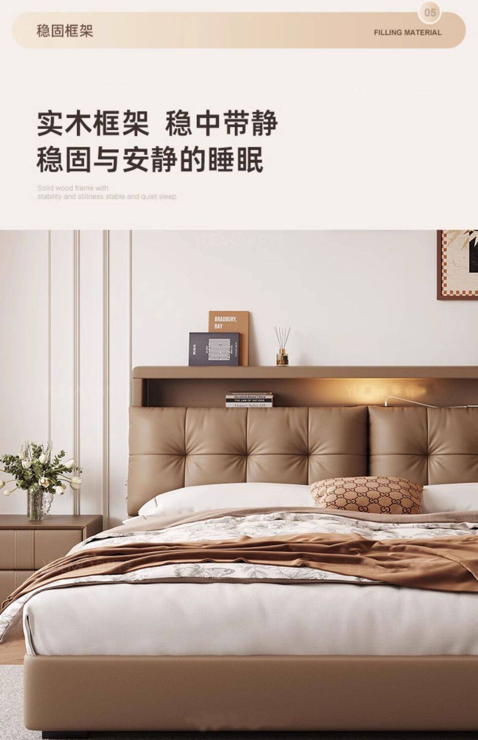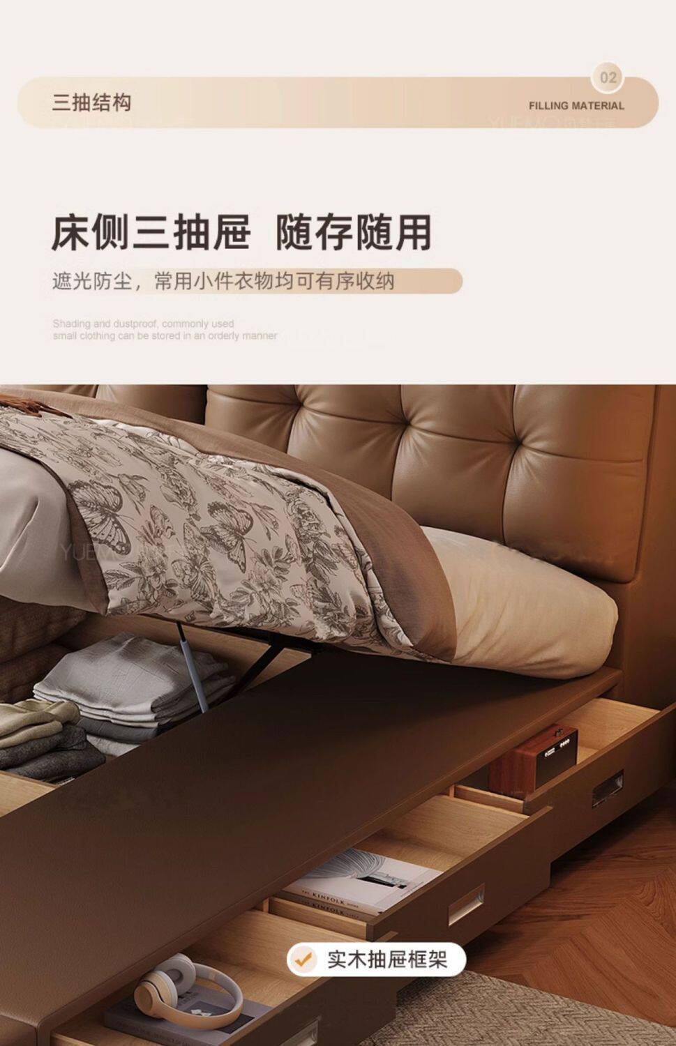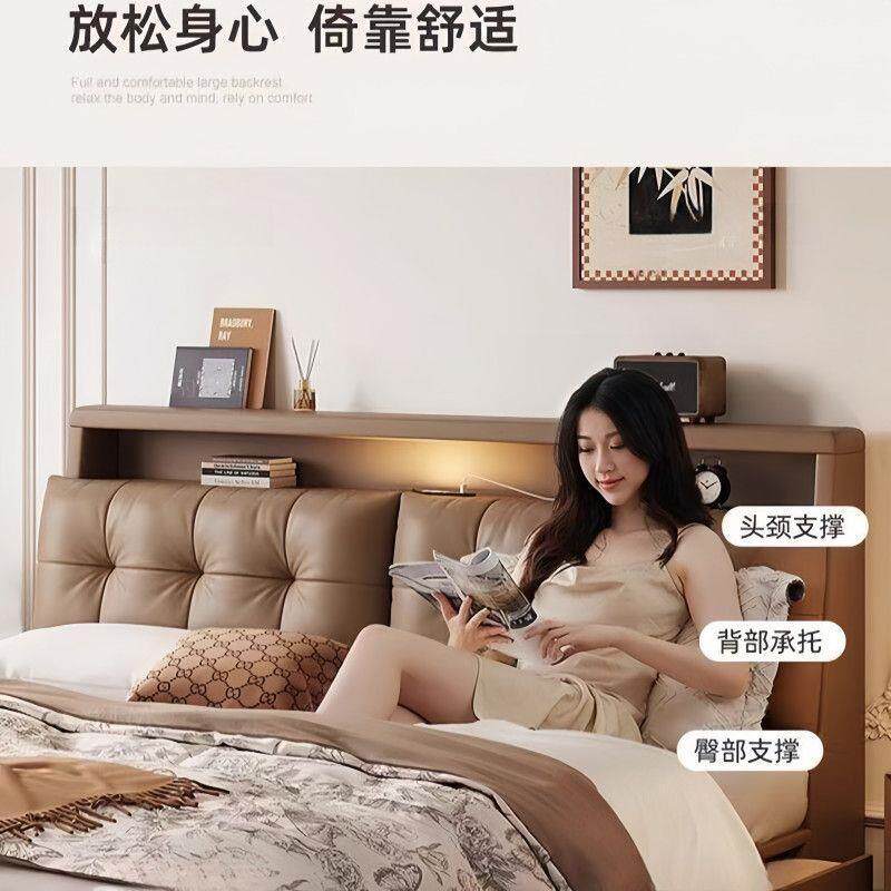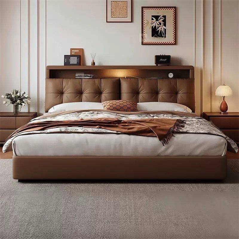 Multifunctional Leather Bed Italian Soft-Packed Double Bed Modern Simple Master Bedroom Large Bed Wedding Bed Rental Room Storage Bed