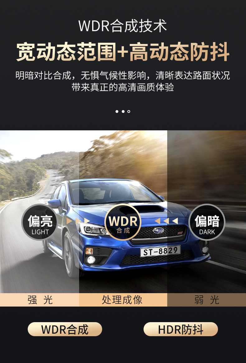 | Function | Positioning,Flow speed measurement,Motion detection,Loop recording,Fixed speed measurement,Parking monitoring,Night vision fill light,Collision sensing,Enhanced night vision,Screen deformation correction,Before and after recording |