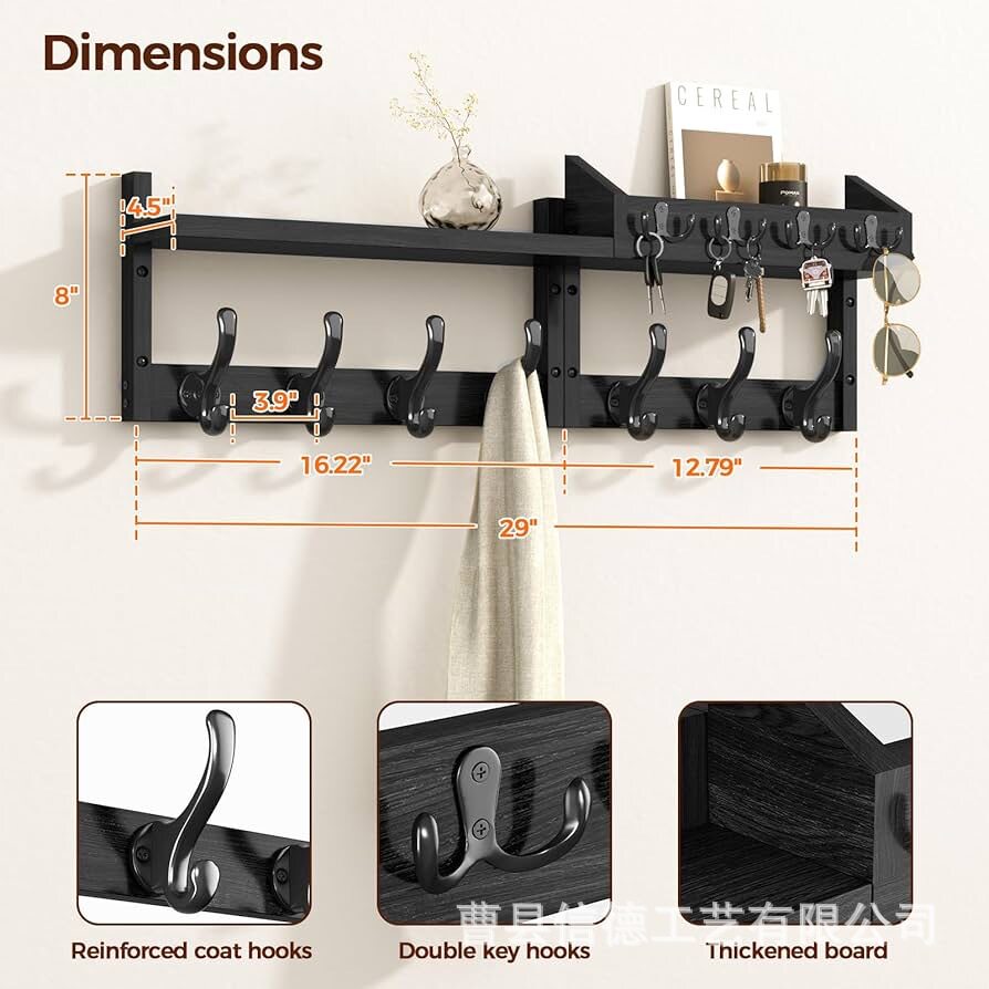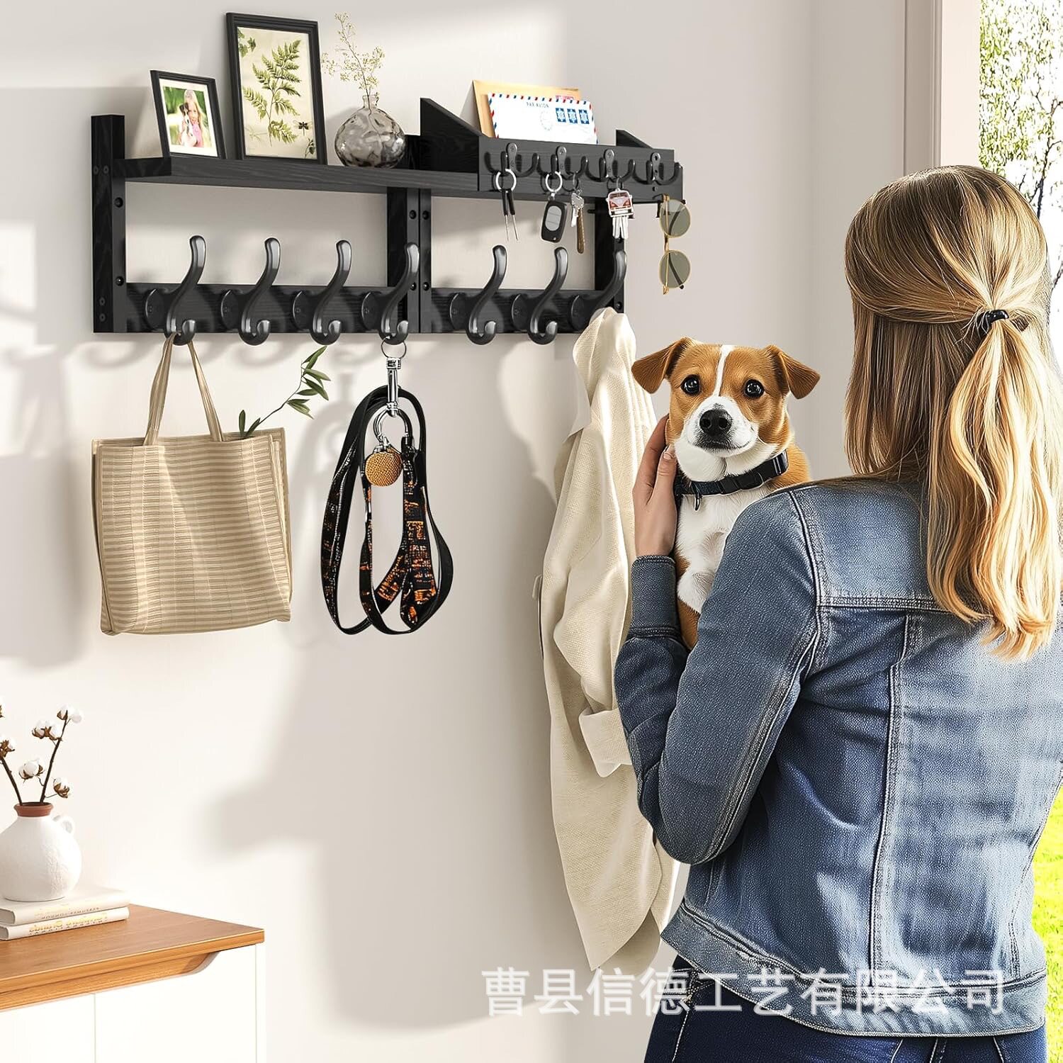Wall Rack Combination Wall-Mounted Entrance Door Key Coat Rack Retro Wall Decoration Solid Wood Suspension Rack