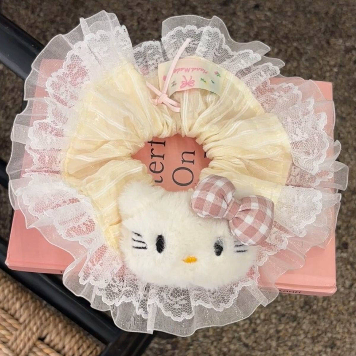 Girly Heart Lace Bow Kitty Hair Tie Cute Ball Hair Rope Cartoon Sweet Ponytail Hair Rope