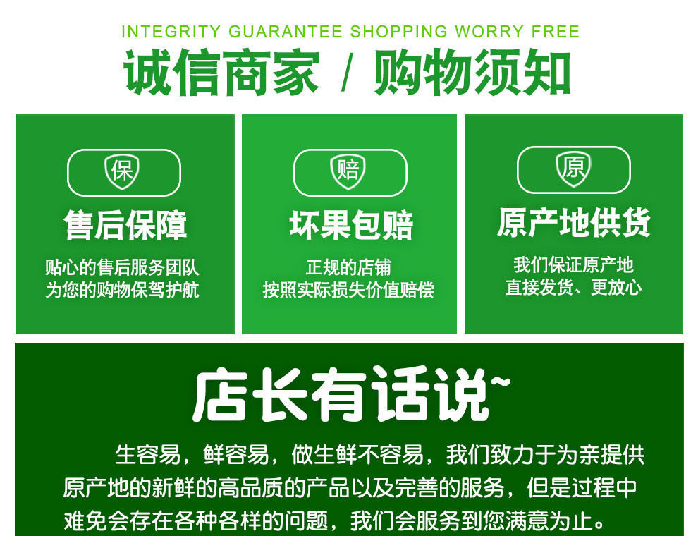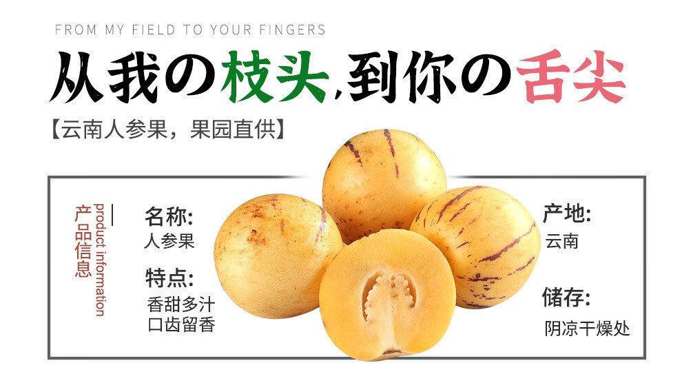| Packaging specifications | 【ginseng fruit】 0.5kg small fruits,【ginseng fruit】 1.5kg small fruits,【ginseng fruit】 1.5kg medium fruits (about 16-25 pieces),【ginseng fruit】 1.5kg large fruits (about 12-16 pieces),【ginseng fruit】 2.5kg small fruits,【ginseng fruit】 2.5kg medium fruits (about 28-45 pieces),【ginseng fruit】 2.5kg large fruits (about 21--28 pieces) |