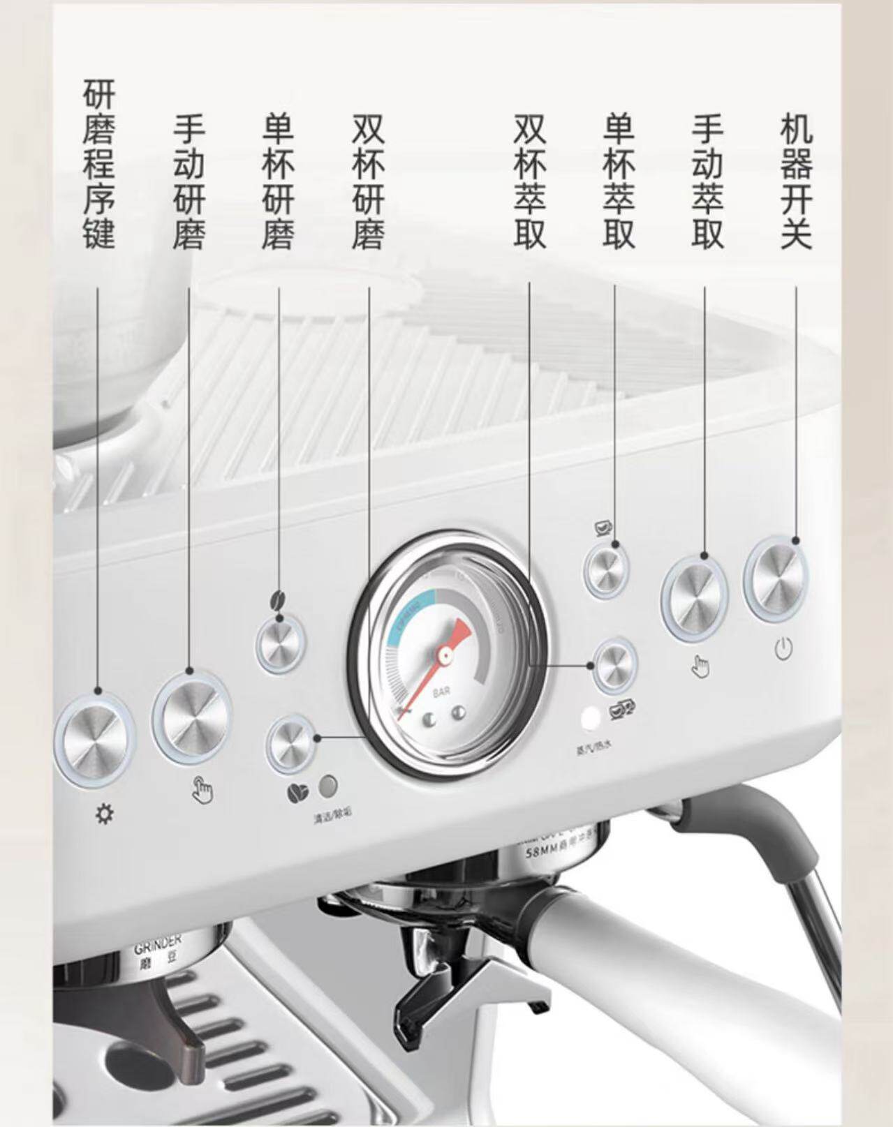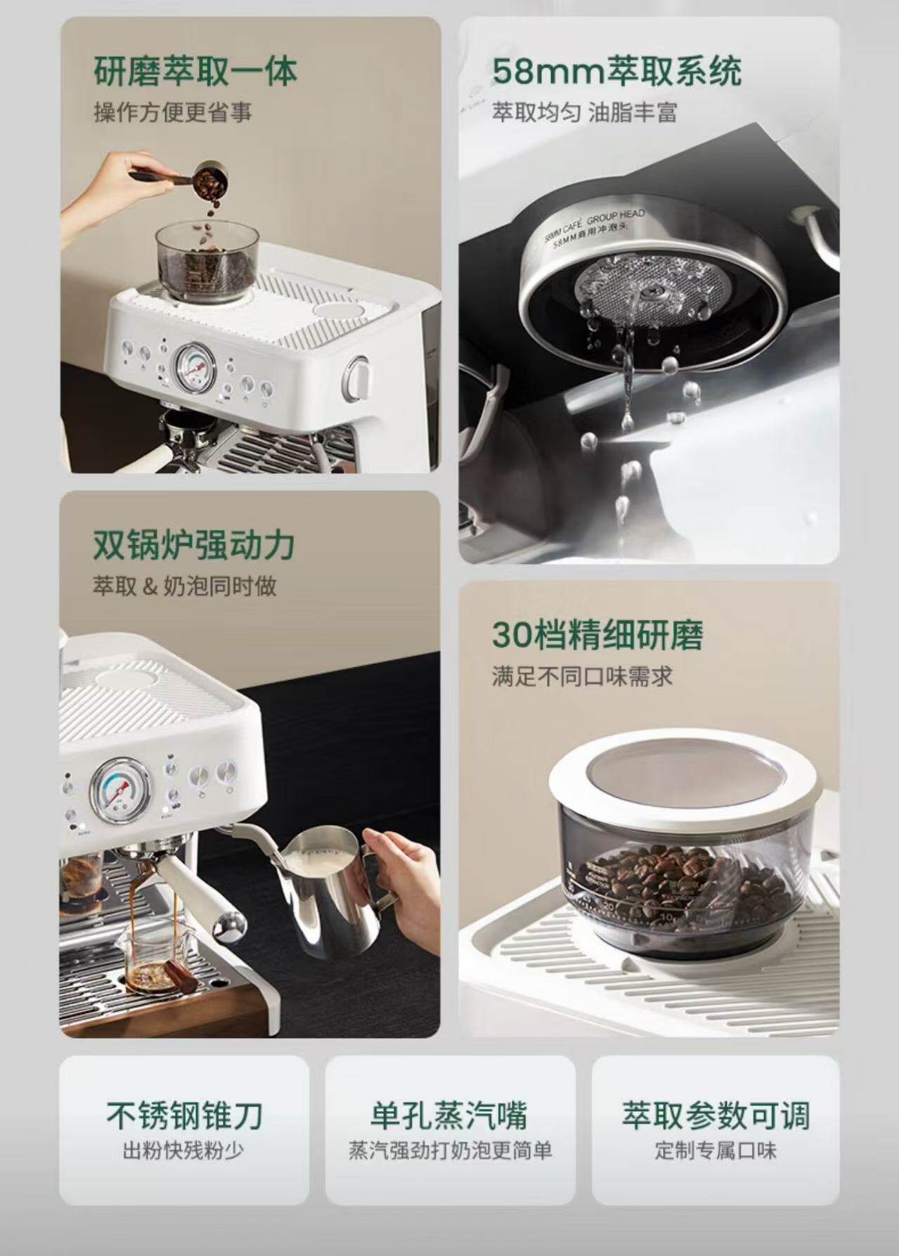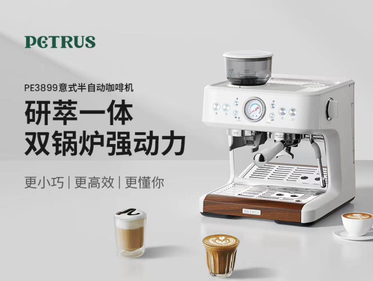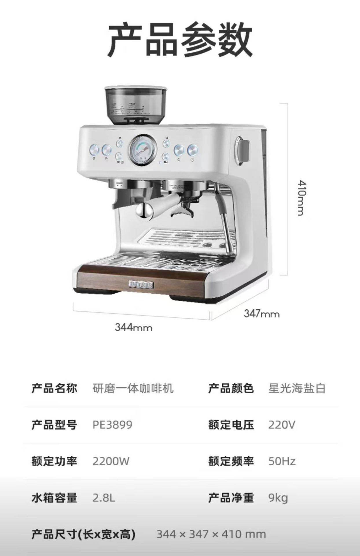 Petri Espresso Coffee Machine Fully Semi-Automatic Household Milk Frother Grinder Integrated Small Double Pump Handle Pe3899