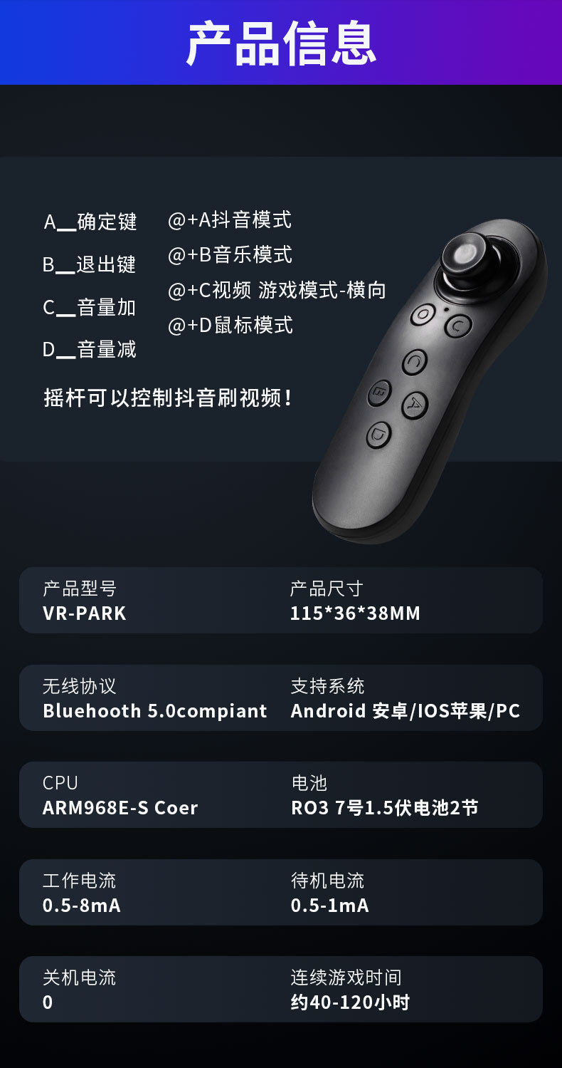 Vrpark Bluetooth Handle Mobile Phone Vr Remote Control Wireless Mouse Android Game Selfie Controller Wholesale Factory