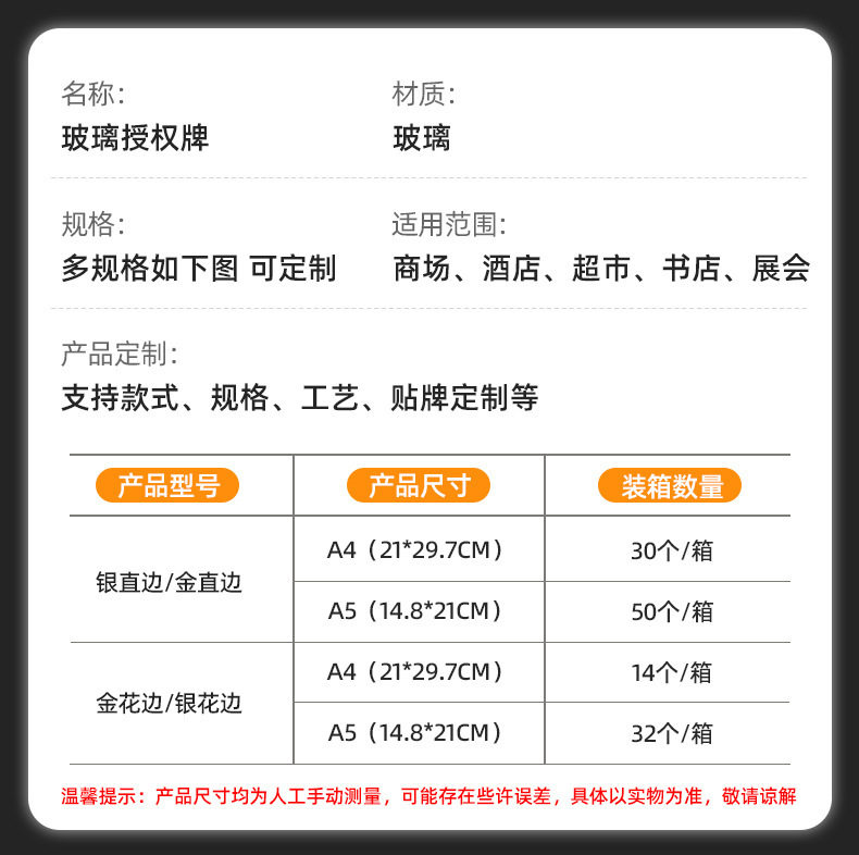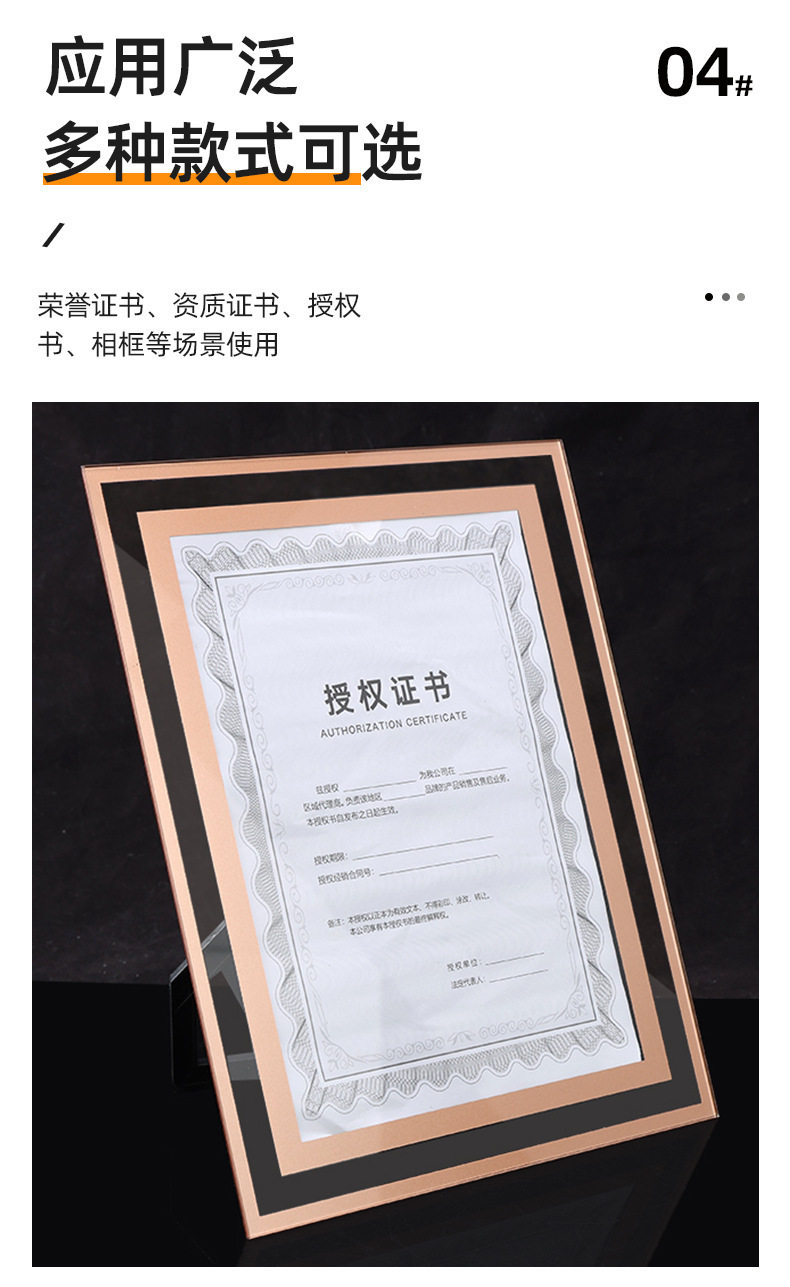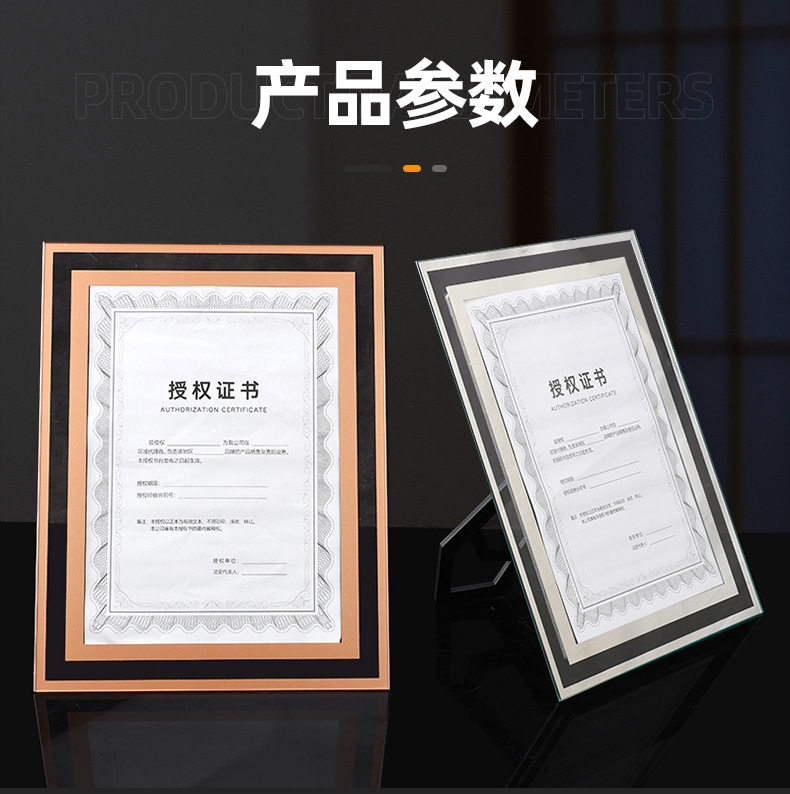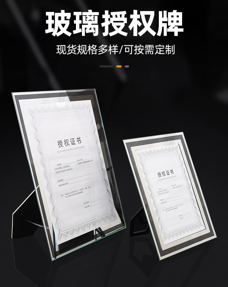 Crystal Glass Photo Frame Modern Simple Honor Certificate Brand Restaurant Living Room Study Certificate Factory Direct Sale