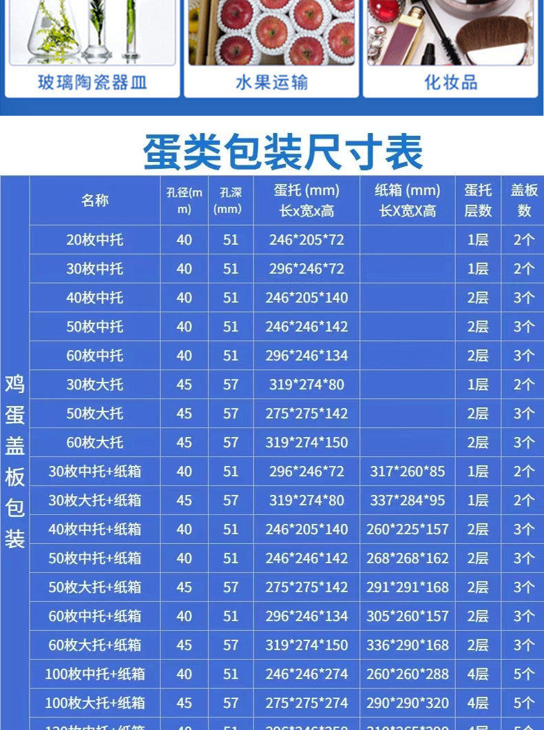 | Scope of application | Express egg packaging |