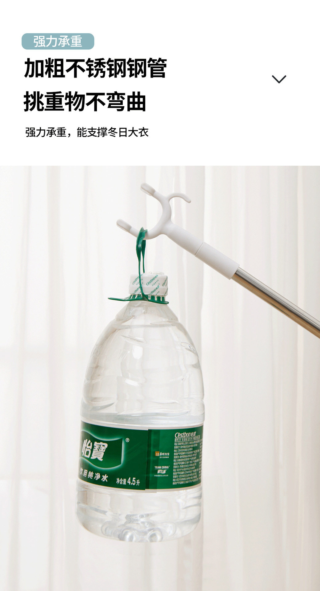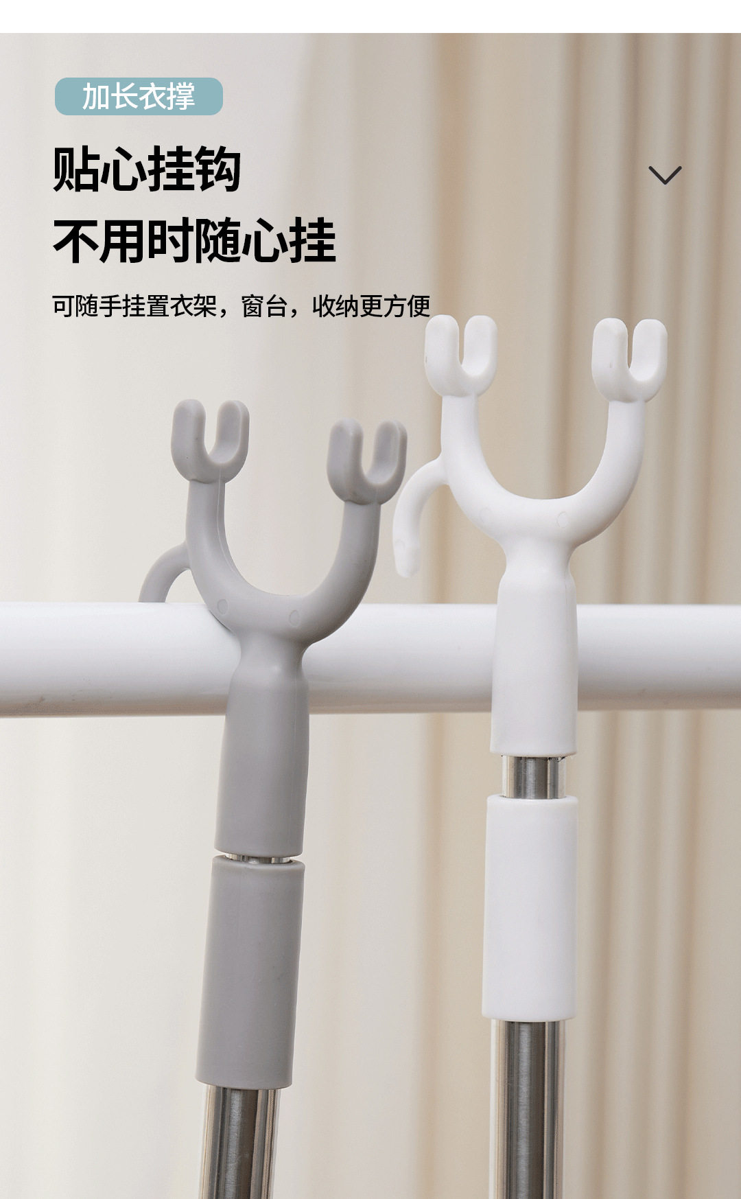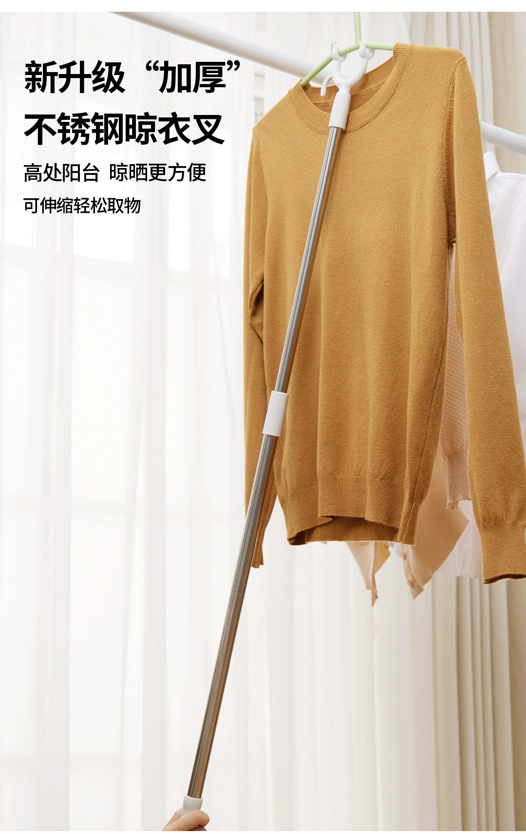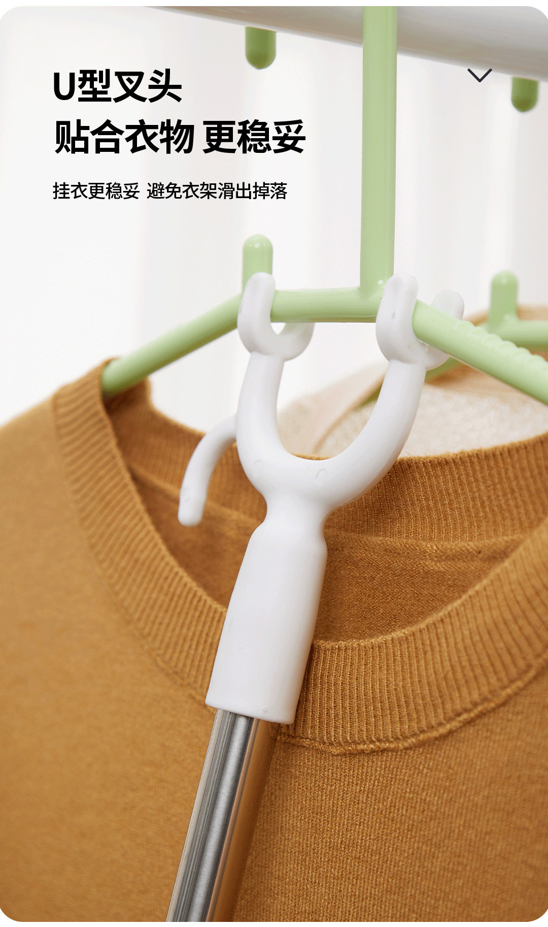 Retractable Clothes Drying Fork Stainless Steel Balcony Clothes Fork Clothes Drying Rod Portable Clothes Rod Clothes Fork Wholesale Solid Color Plastic