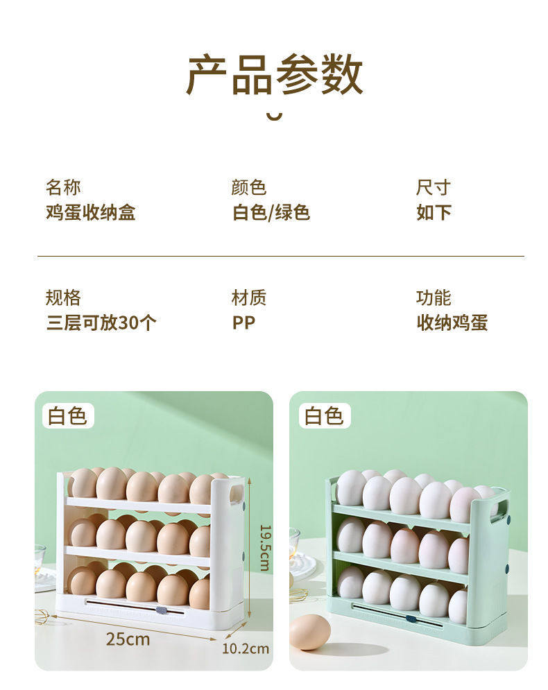 Refrigerator Side Door Special Reversible Egg Tray Kitchen Organizer Egg Rack Three-Layer Storage Rack Egg Storage Box