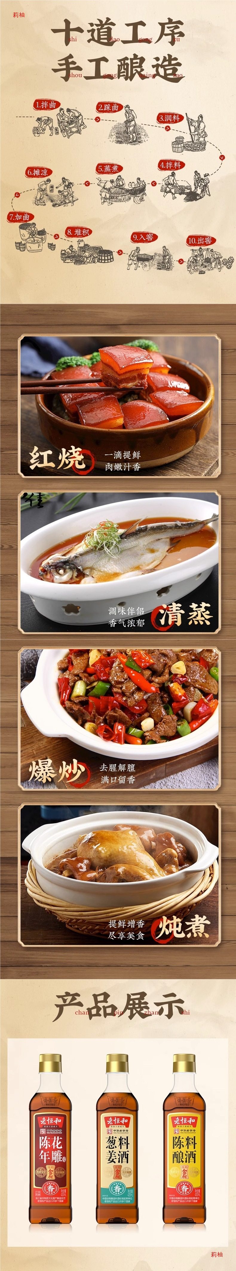 | Packaging specifications | Aged cooking wine 420ml*1 bottle,Onion and ginger cooking wine 420ml*1 bottle,Aged huadiao 420ml*1 bottle,Aged cooking wine 420ml*2 bottles,Onion and ginger cooking wine 420ml*2 bottles,Aged huadiao 420ml*2 bottles,Three bottle combination |