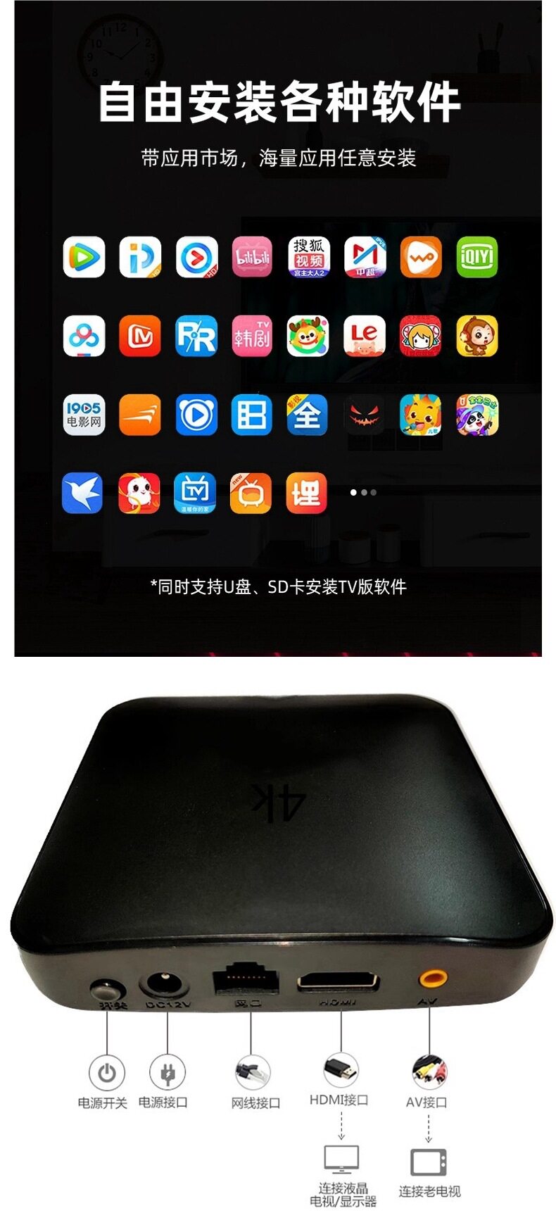 | Color | 1g+8g network cable sd version can only plug in network cable,2g+8g wireless sd version can be plugged into a network cable,2g+16g hd wireless version with pluggable network cable,4g+16g luxury 4k ultra-clear wireless version with pluggable network cable |