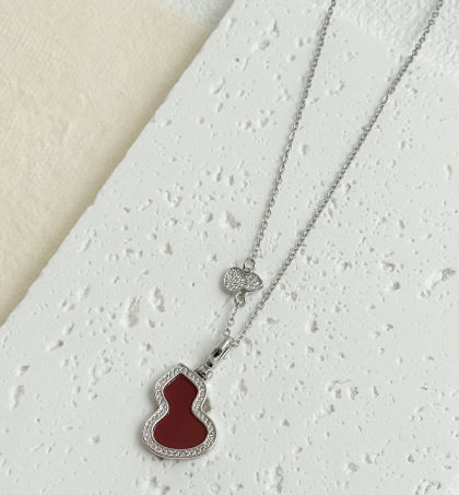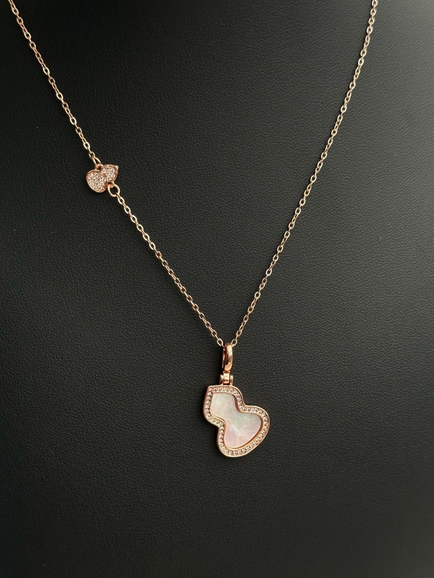 Double-Layer Diamond-Encrusted Shell Gourd Clavicle Necklace Pendant for Women, Versatile Titanium-Plated Steel Rose Gold Color Internet Celebrity Style Necklace
