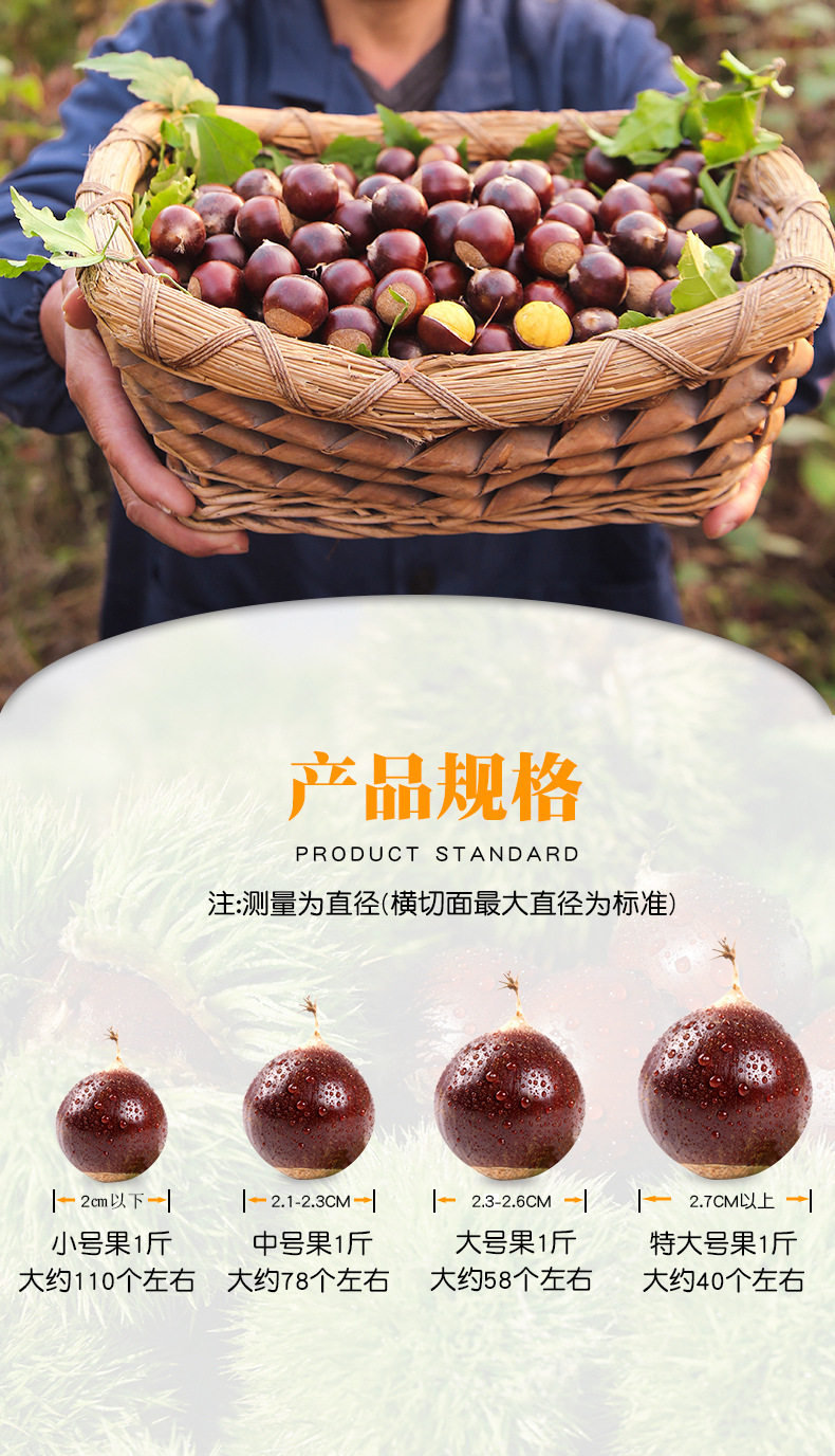 | Packaging specifications | 0.5kg-hardcover small fruit diameter (less than 2.0cm),0.5kg-hardcover medium fruit diameter (2.1-2.3cm),0.5kg-hardcover large fruit diameter (2.3-2.6cm),0.5kg-hardcover extra large fruit diameter (above 2.7cm),0.5kg-small fruit+wooden opener,0.5kg-medium fruit+wooden opener,0.5kg-large fruit + wooden opener,0.5kg-extra large fruit+wooden opener,1kg-hardcover small fruit diameter (less than 2.0cm),1kg-hardcover medium fruit diameter (2.1-2.3cm),1kg-hardcover large fruit diameter (2.3-2.6cm),1kg-hardcover extra large fruit diameter (more than 2.7cm),1kg-small fruit+wooden opener,1kg-medium fruit+wooden opener,1kg-large fruit + wooden opener,1kg-extra large fruit+wooden opener,1.5kg-hardcover small fruit diameter (less than 2.0cm),1.5kg-hardcover medium fruit diameter (2.1-2.3cm),1.5kg-hardcover large fruit diameter (2.3-2.6cm),1.5kg-hardcover extra large fruit diameter (above 2.7cm),1.5kg-small fruit+wooden opener,1.5kg-medium fruit+wooden opener,1.5kg-large fruit + wooden opener,1.5kg-extra large fruit+wooden opener,2.5kg-hardcover small fruit diameter (below 2.0cm),2.5kg-hardcover medium fruit diameter (2.1-2.3cm),2.5kg-hardcover large fruit diameter (2.3-2.6cm),2.5kg-hardcover extra large fruit diameter (above 2.7cm),2.5kg-small fruit+wooden opener,2.5kg-medium fruit+wooden opener,2.5kg-large fruit + wooden opener,2.5kg-extra large fruit+wooden opener |