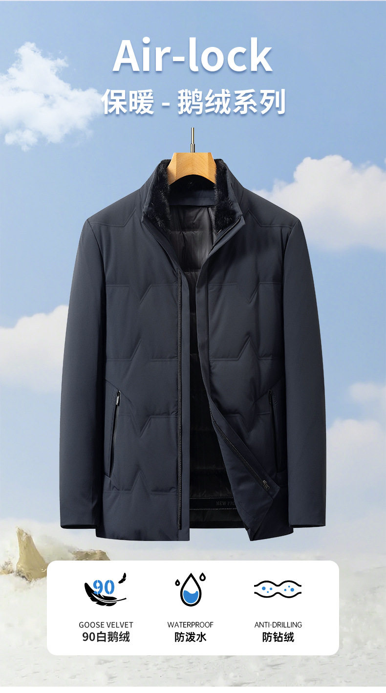 [90% Goose down + Mink Fur Collar] Detachable Liner for Middle-Aged and Elderly Business Casual Thickeneded Goose down Jacket