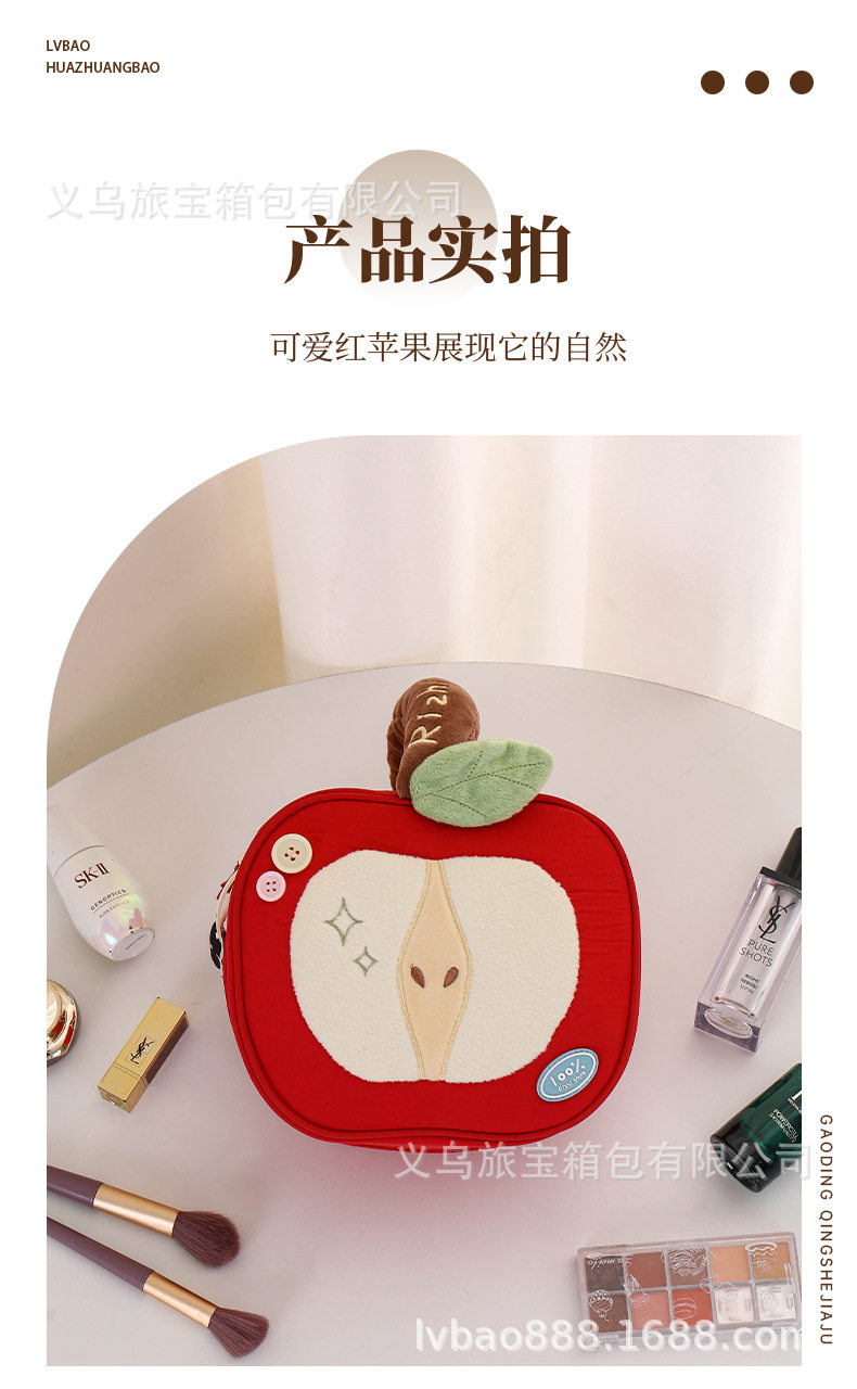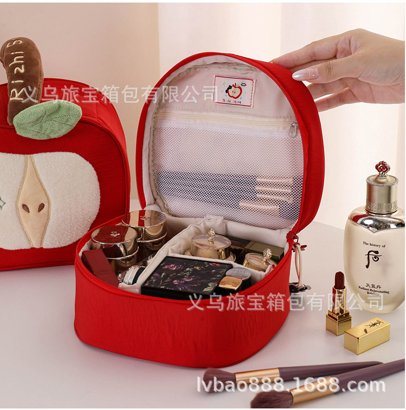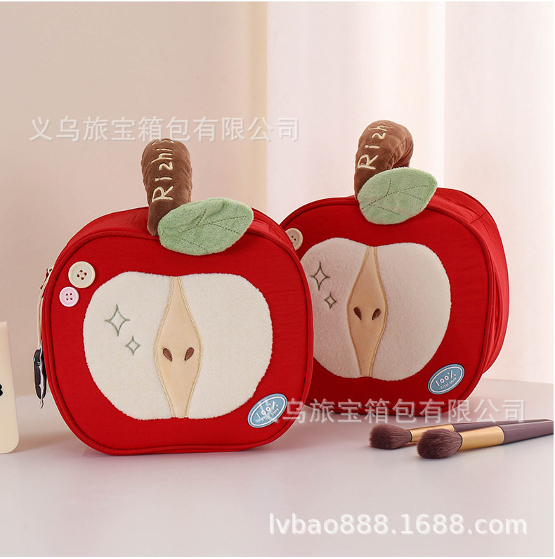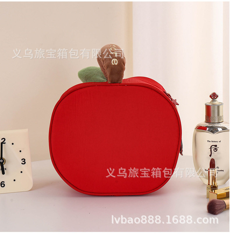 Cross-Border Silk Makeup Bag Japanese Cute Style Red Apple Portable Large Capacity Travel Cosmetic Storage Bag