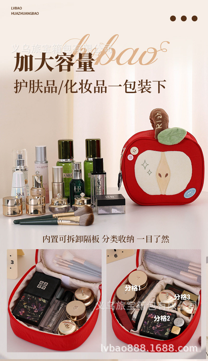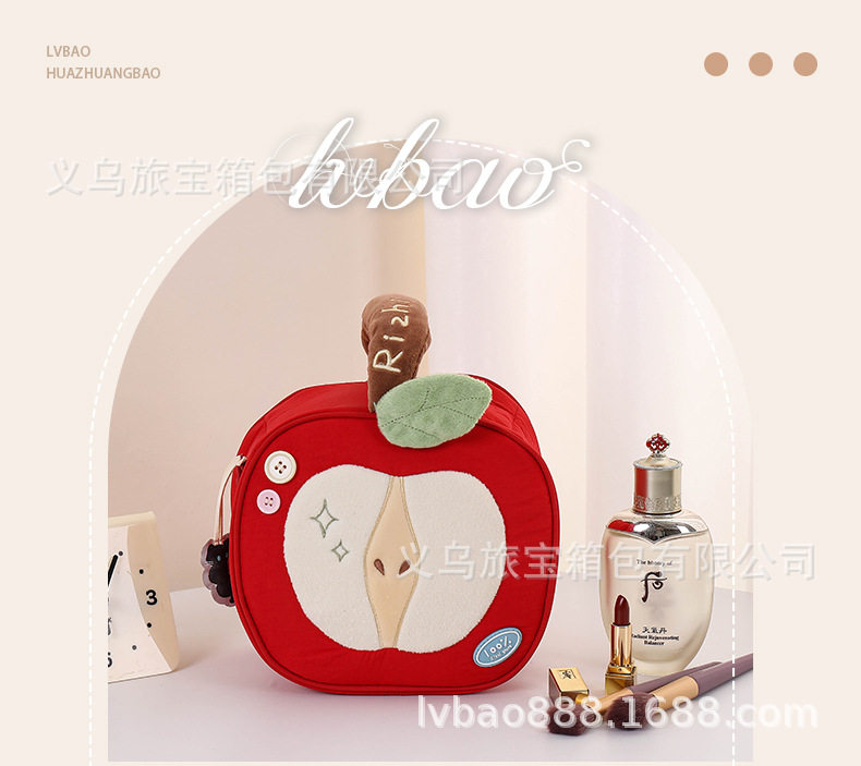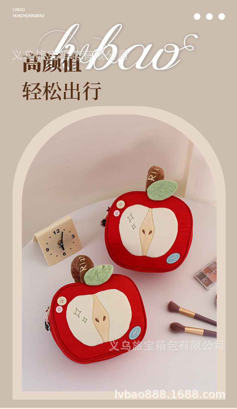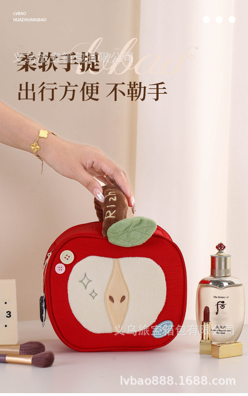 Cross-Border Silk Makeup Bag Japanese Cute Style Red Apple Portable Large Capacity Travel Cosmetic Storage Bag