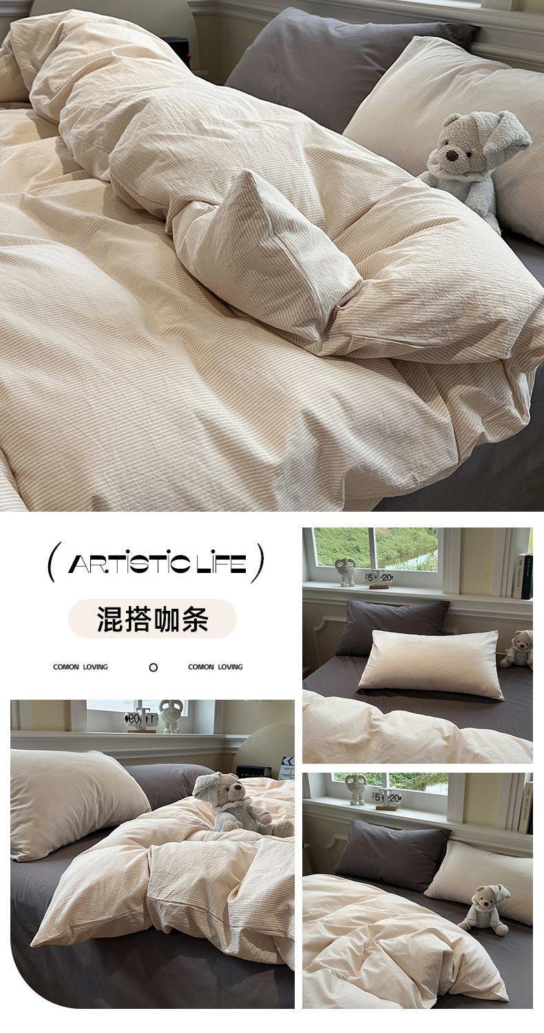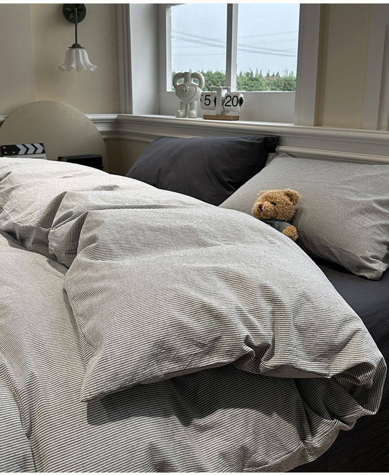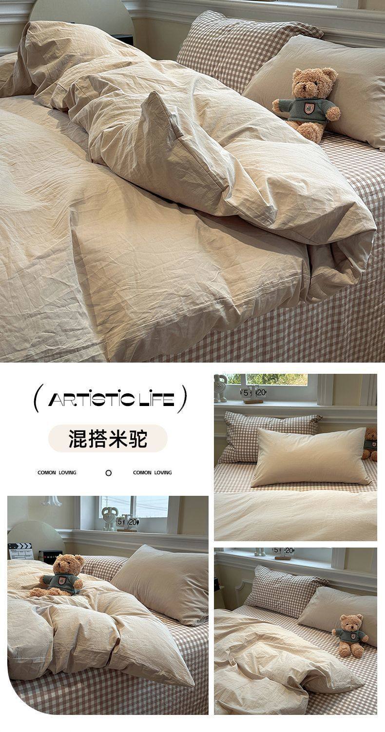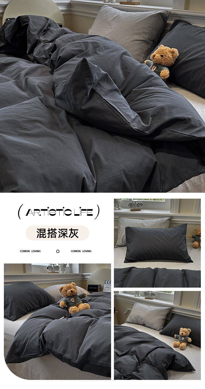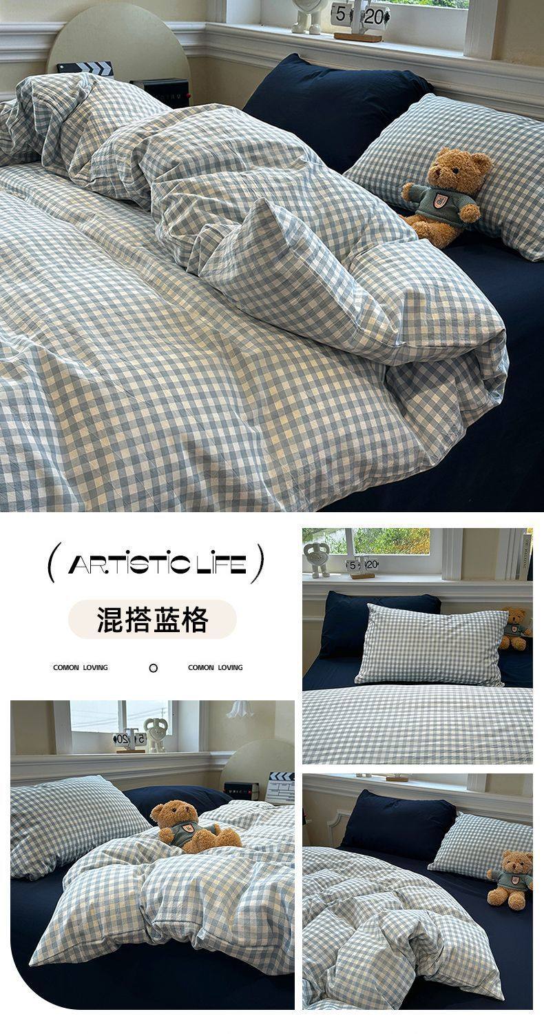 Scandinavian Style Super Soft Waxy Washed Cotton Quilt Cover Bed Bed Sheets Four-Piece Bedding Set Student Dormitory Three-Piece Fitted Bed Sheets Set 4
