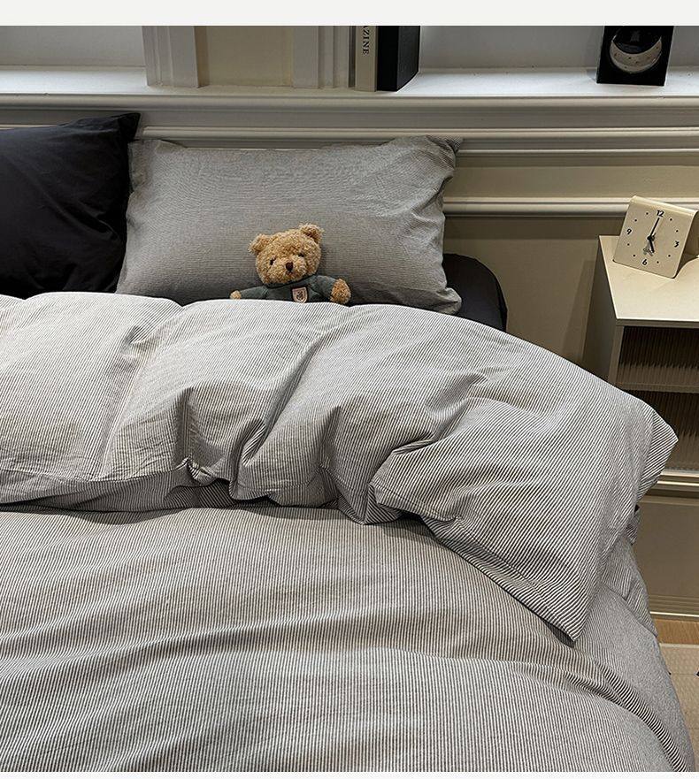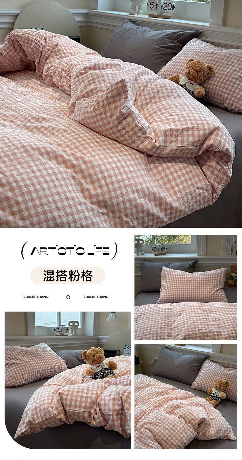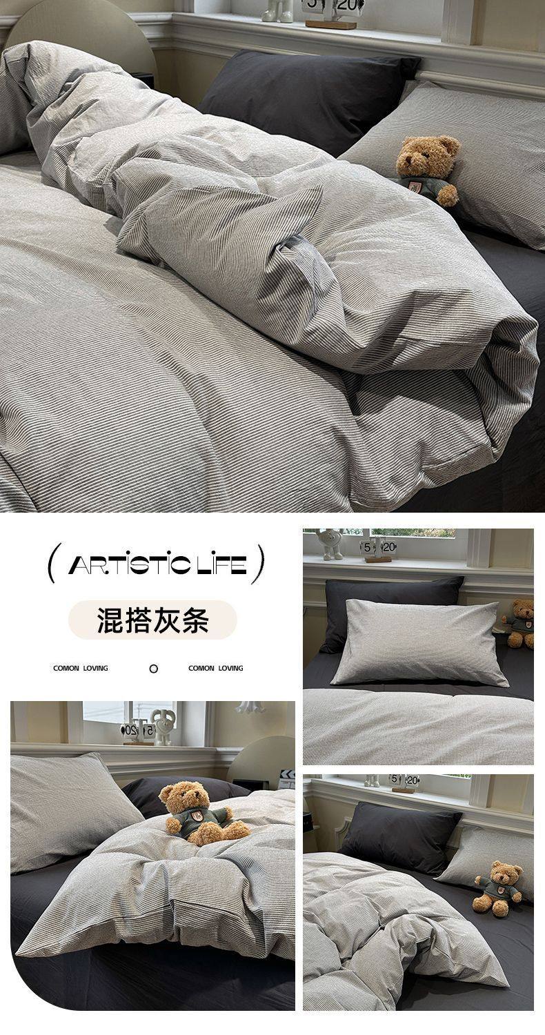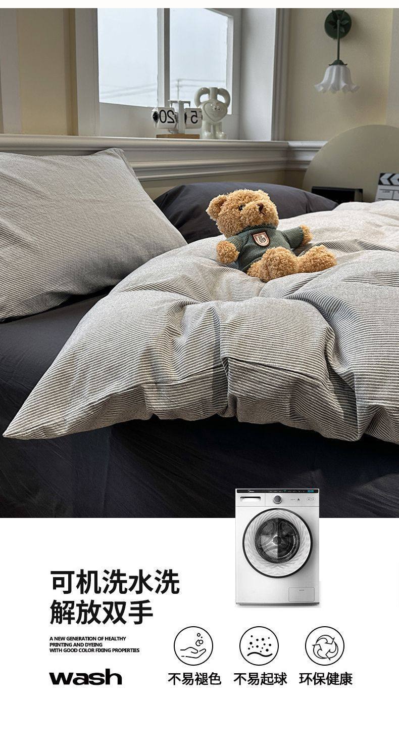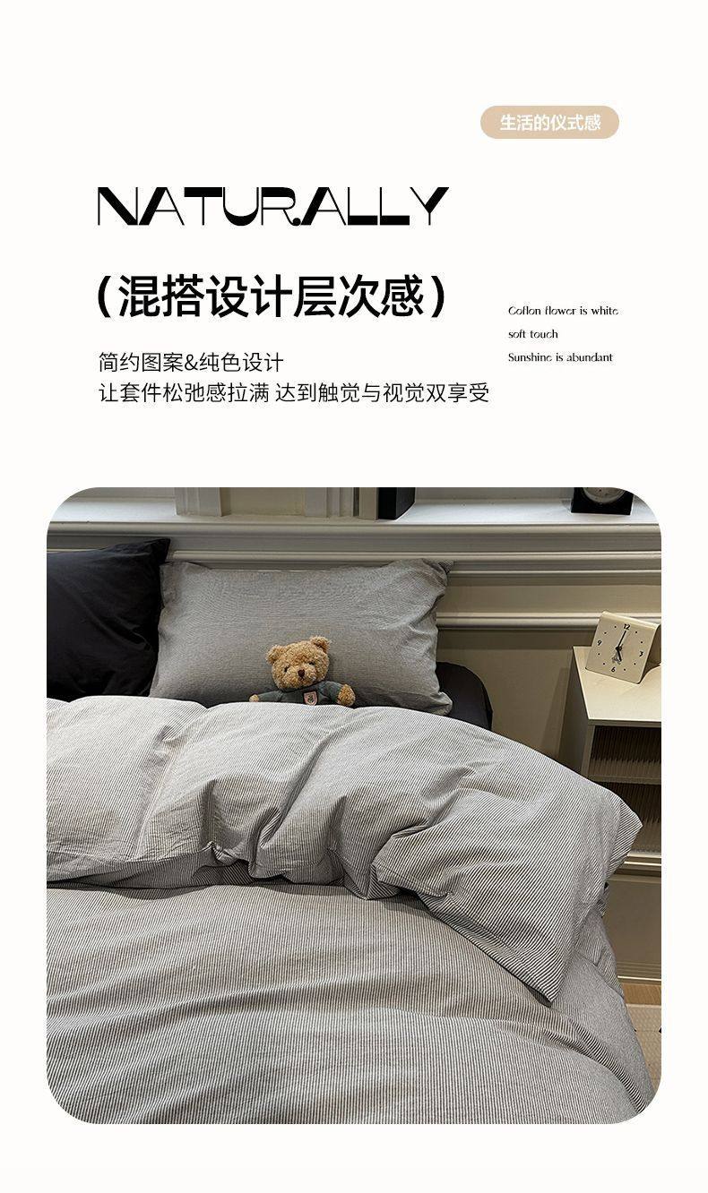Scandinavian Style Super Soft Waxy Washed Cotton Quilt Cover Bed Bed Sheets Four-Piece Bedding Set Student Dormitory Three-Piece Fitted Bed Sheets Set 4