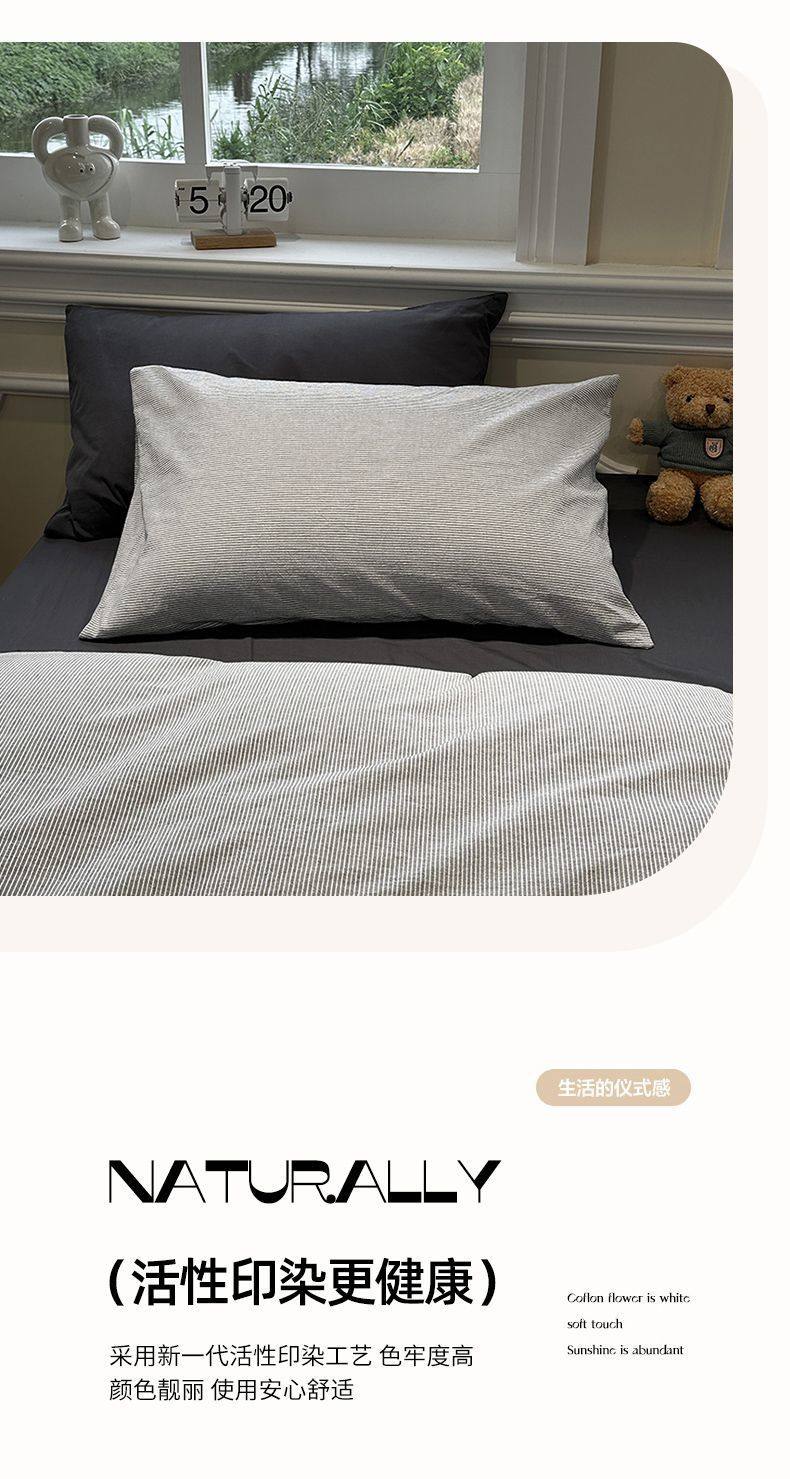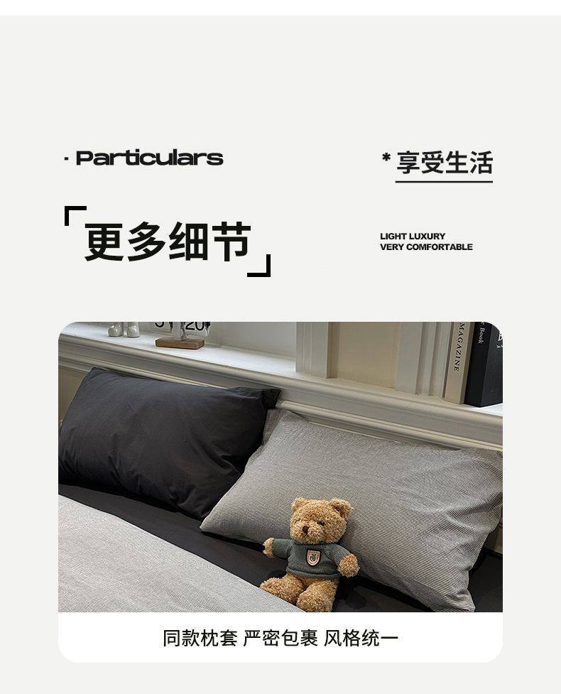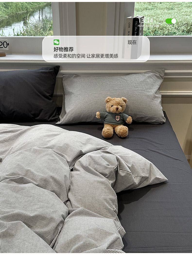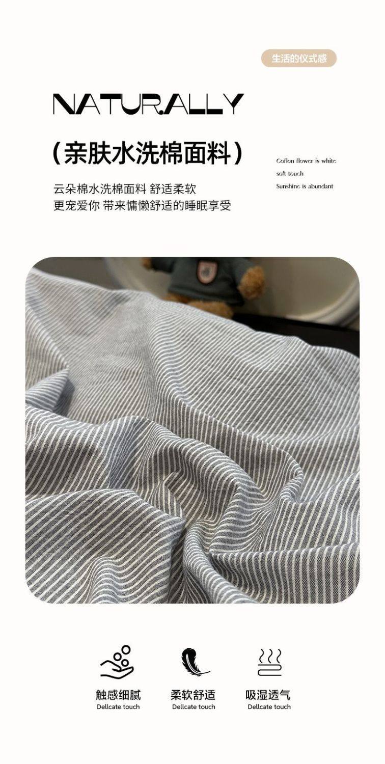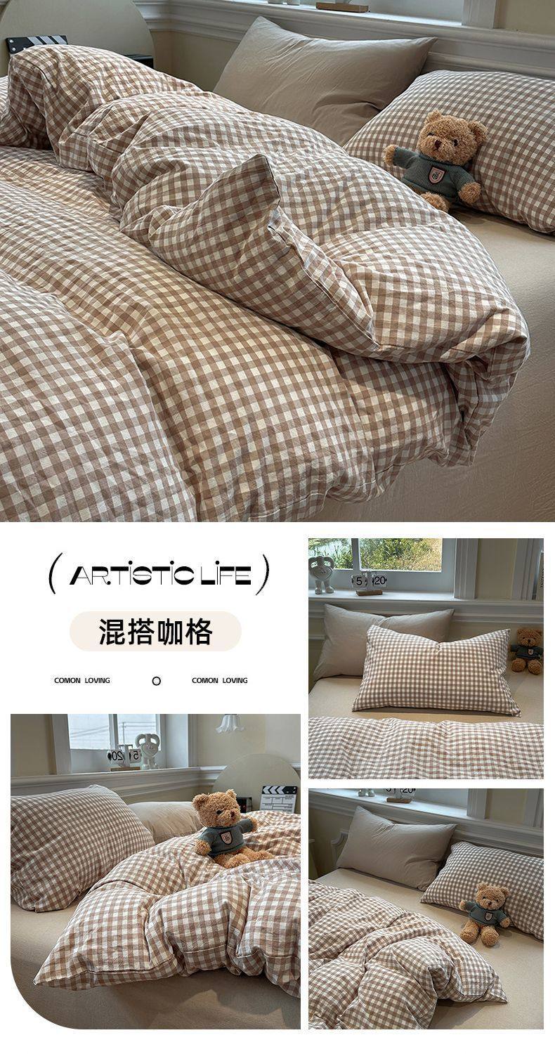 Scandinavian Style Super Soft Waxy Washed Cotton Quilt Cover Bed Bed Sheets Four-Piece Bedding Set Student Dormitory Three-Piece Fitted Bed Sheets Set 4