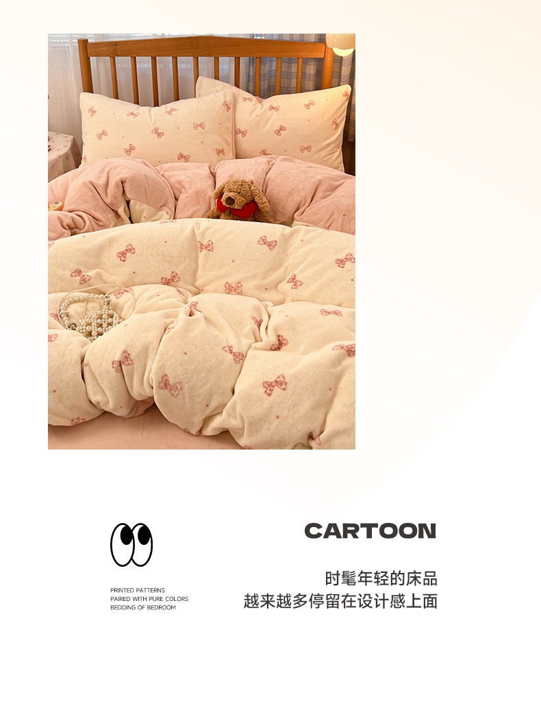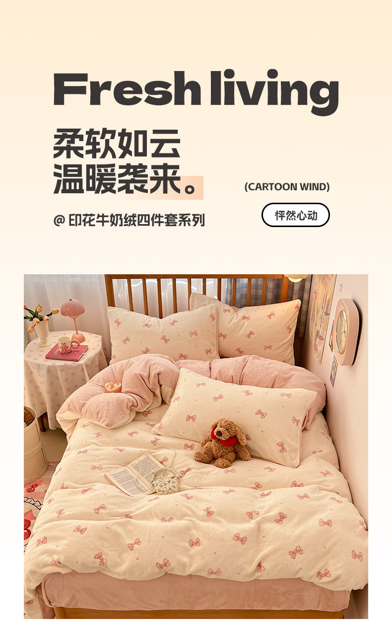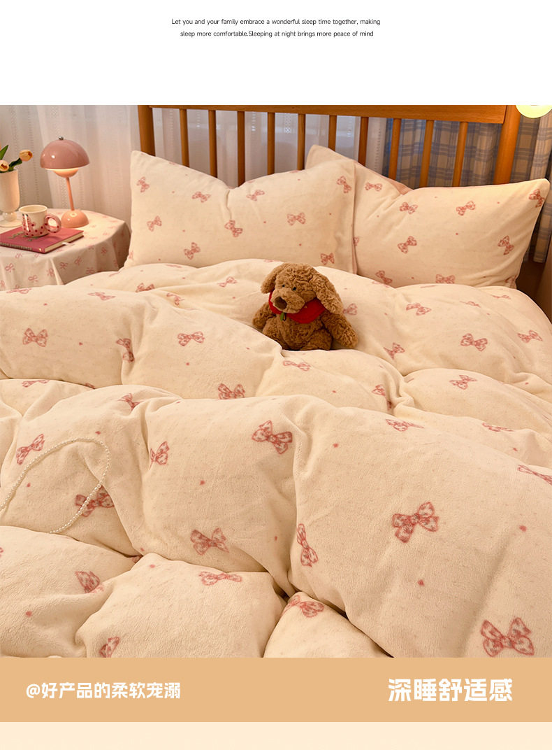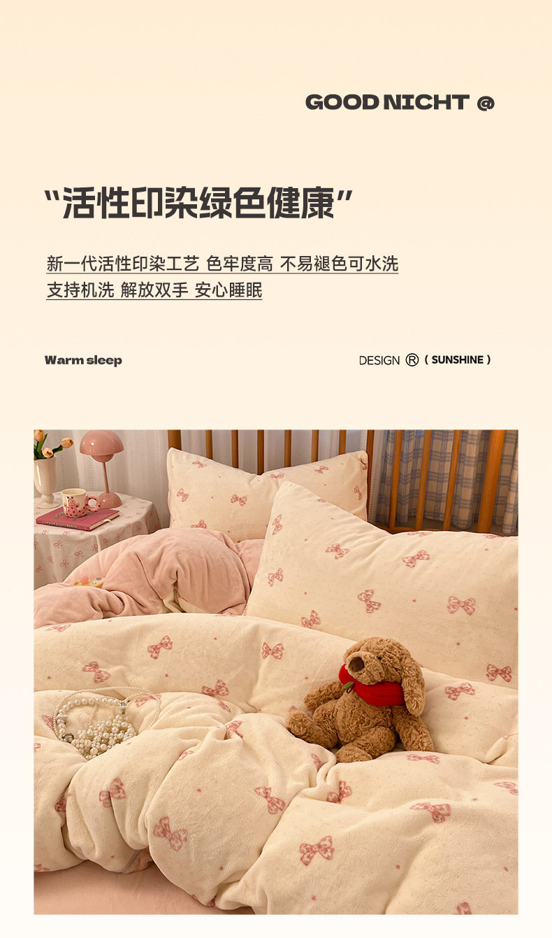 Printed Milk Velvet Four-Piece Set Autumn and Winter Coral Velvet Warm Bed Bed Sheets Quilt Cover Fleece-Lined Student Bed Three-Piece Set