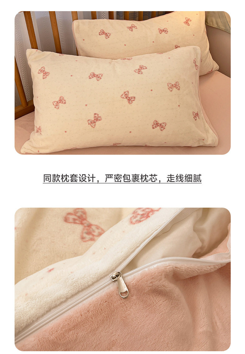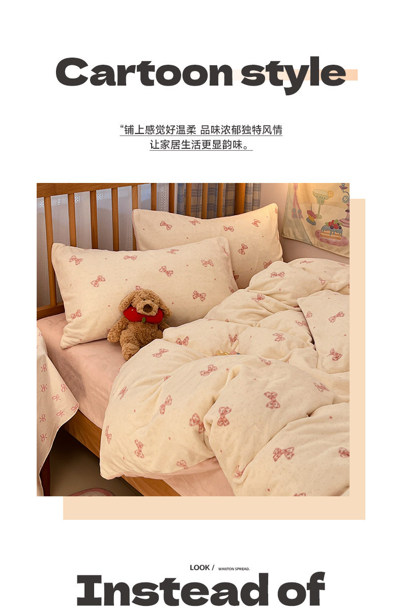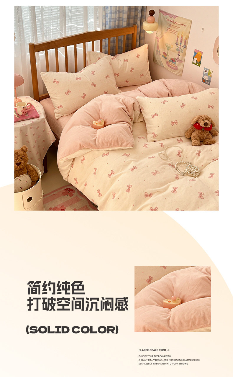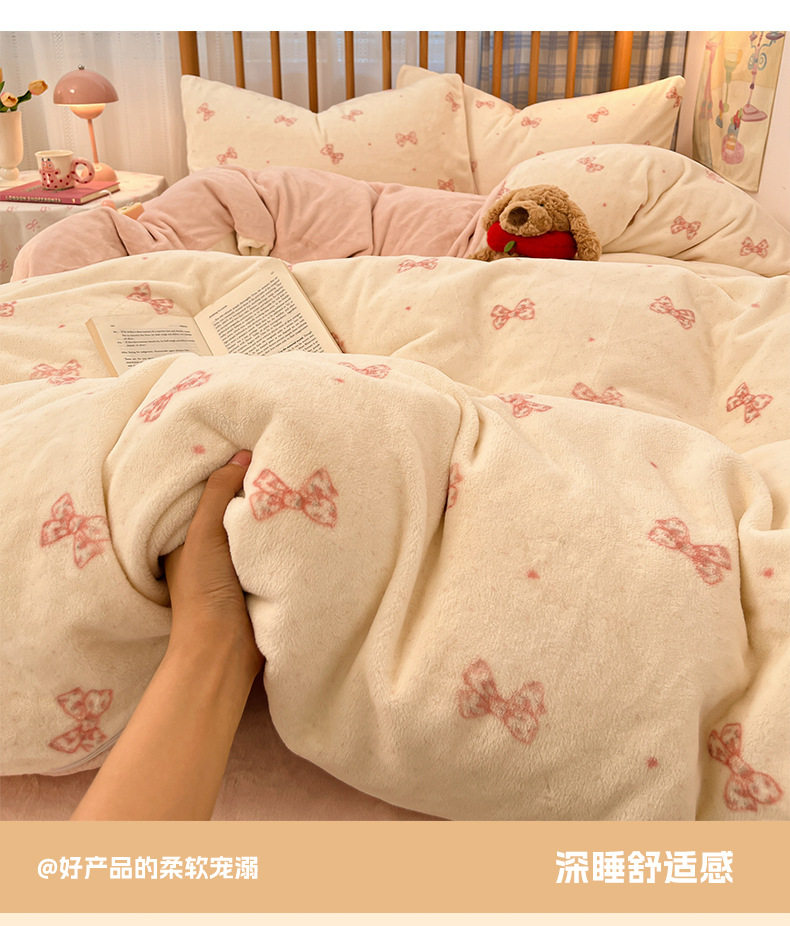 Printed Milk Velvet Four-Piece Set Autumn and Winter Coral Velvet Warm Bed Bed Sheets Quilt Cover Fleece-Lined Student Bed Three-Piece Set