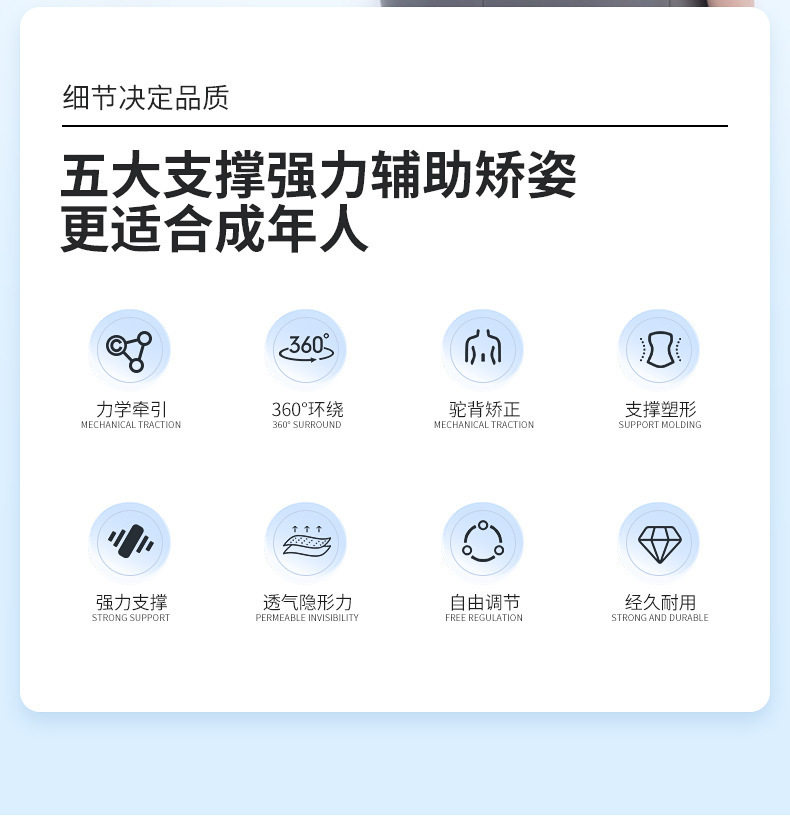 | Color | New upgrade [teenage student model] five supports + anti-strangle design s size (20-25kg),New upgrade [teenage student model] five supports + anti-strangle design m code (30-42.5kg),Newly upgraded [youth and adult model] five supports + anti-strangle design l size (40-60kg),New upgrade [youth and adult model] five supports + anti-strangle design xl code (60-77.5kg),New upgrade [adult plus size] five supports + anti-strangle design xxl size (70-95kg ),Intelligent correction model [teenage students] ai intelligent reminder + armpit strangulation prevention + five support s codes,Intelligent correction model [teenage students] ai intelligent reminder + armpit strangulation prevention + five support m codes,Intelligent correction model [young adults] ai intelligent reminder + armpit strangulation prevention + five support l code,Intelligent correction model [young adults] ai intelligent reminder + armpit strangulation prevention + five supports xl code,Intelligent correction model [adult enlargement] ai intelligent reminder + armpit strangulation prevention + five supports xxl size |